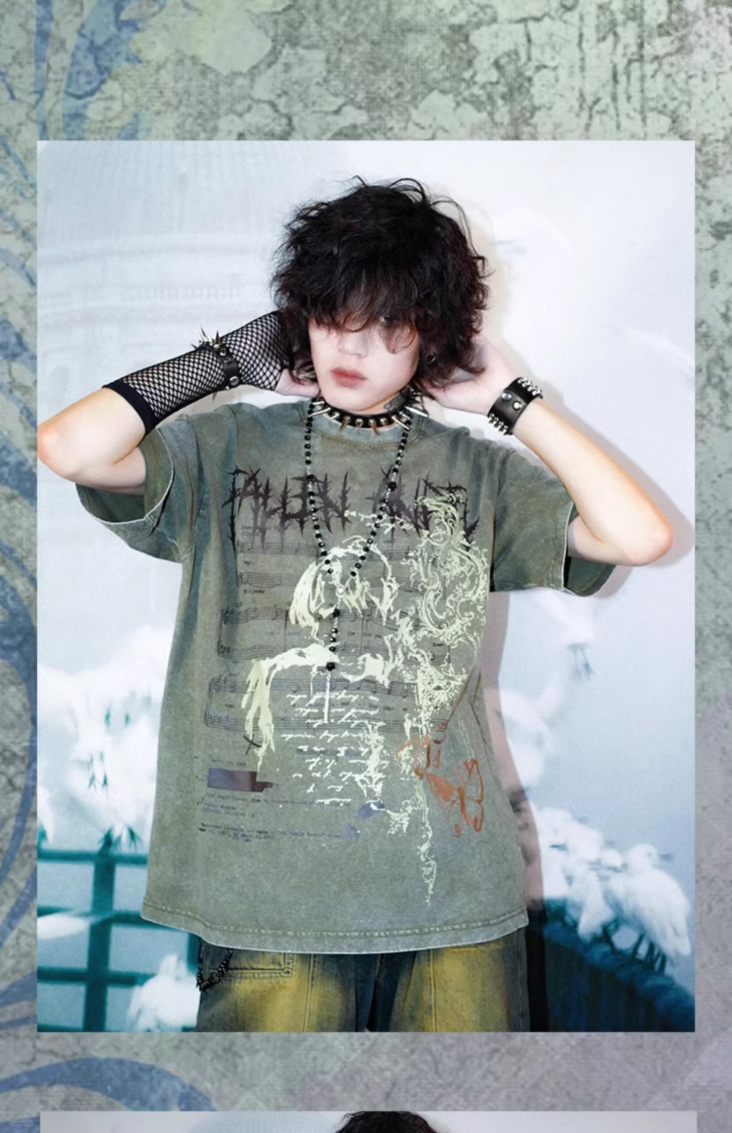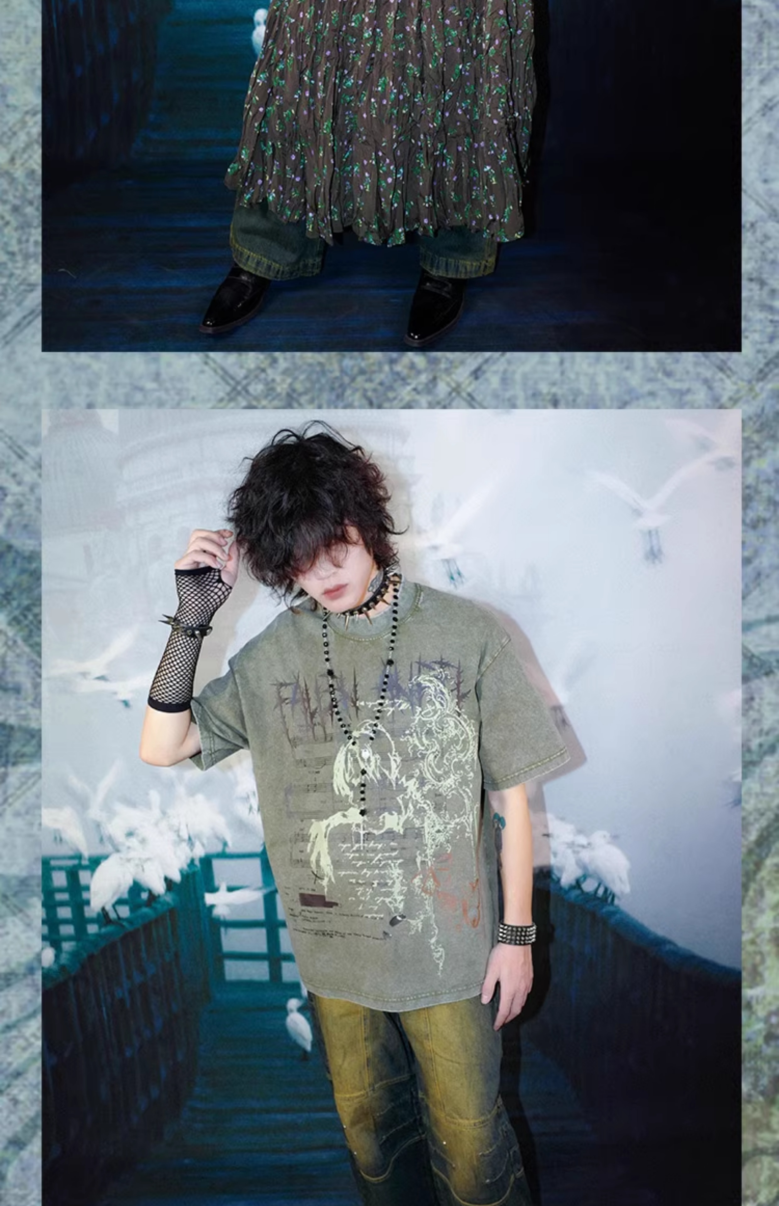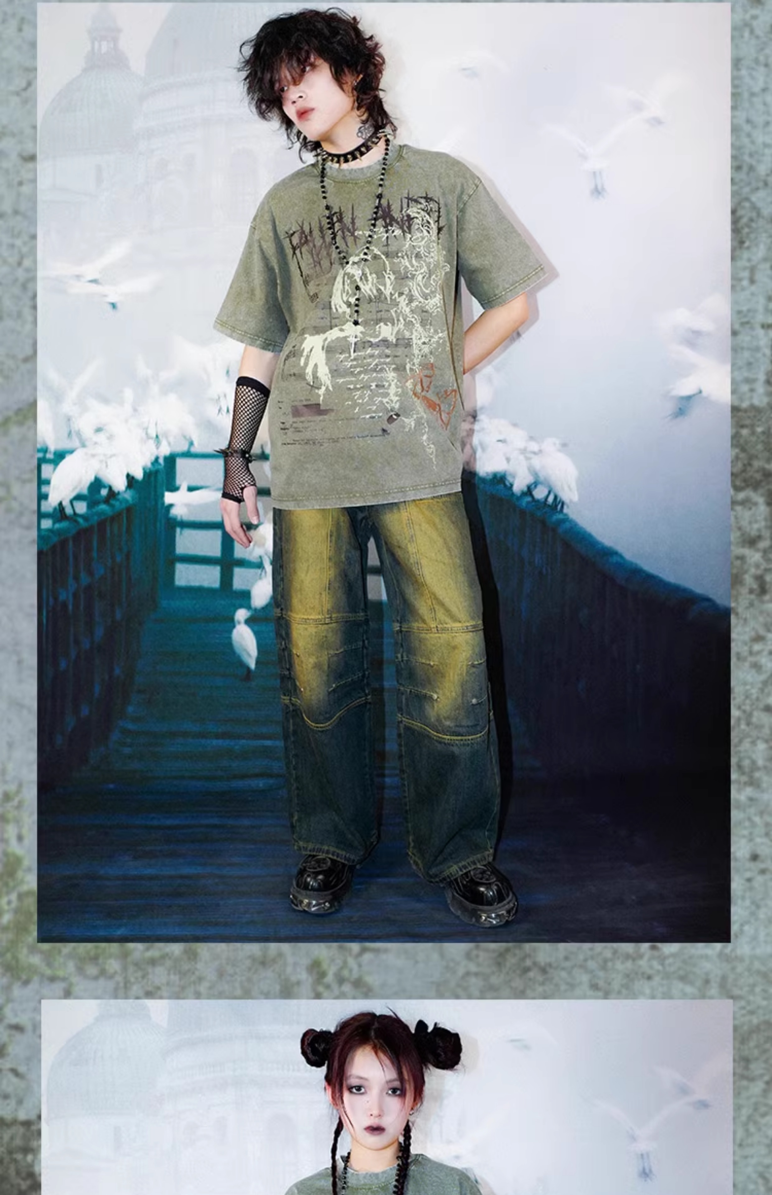 Grunge Washed Oversize Short Sleeve T-Shirt WN15933