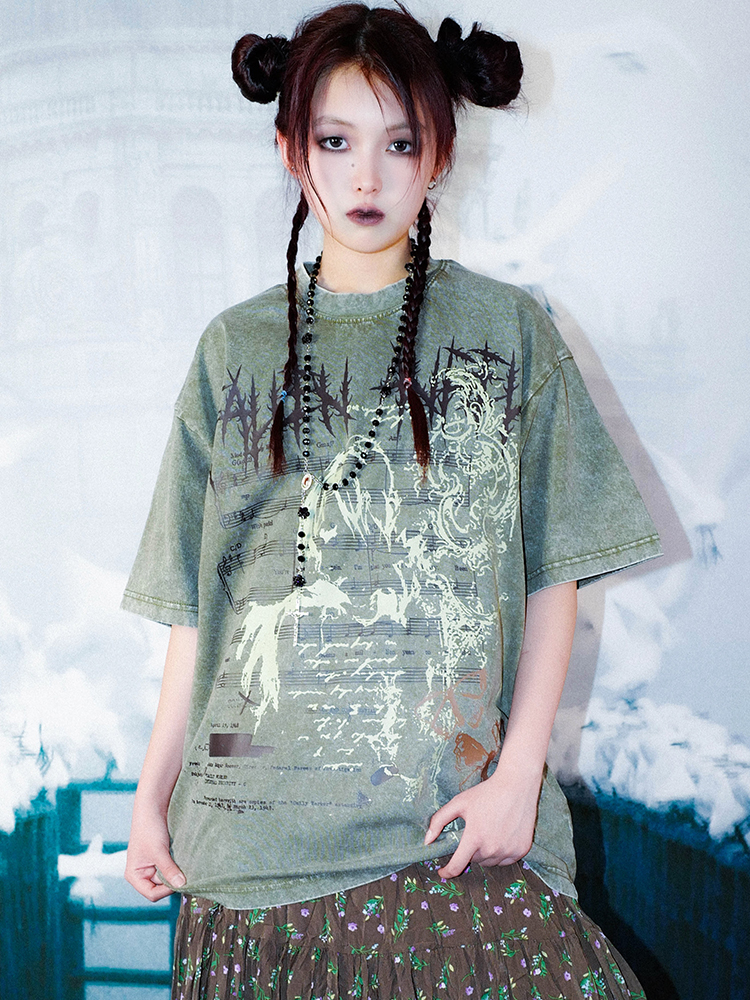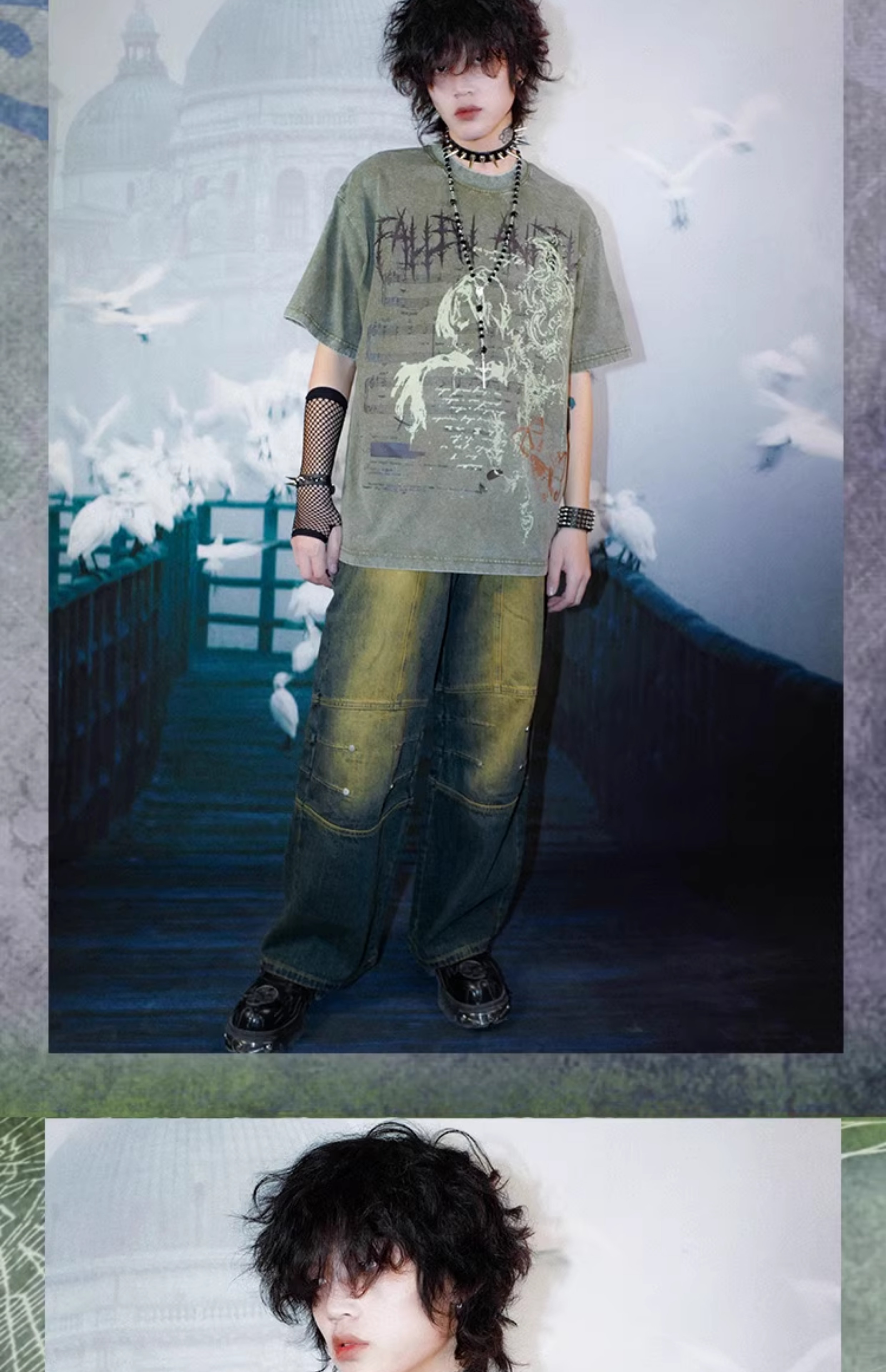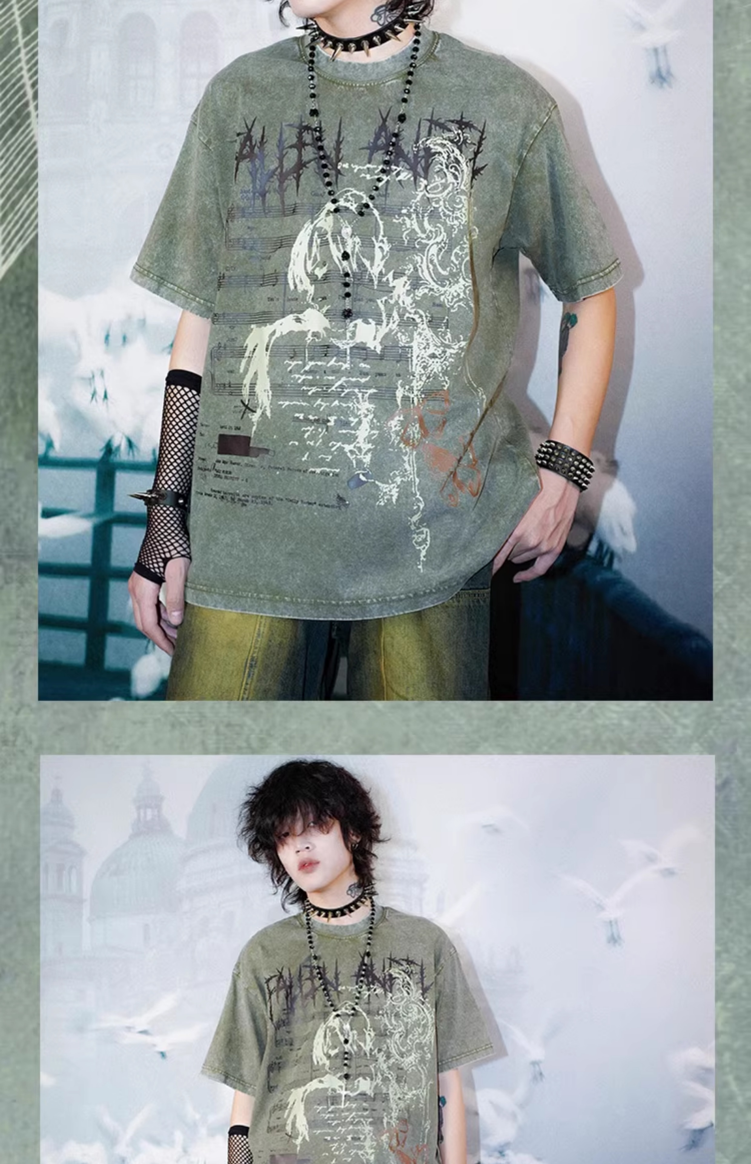 Grunge Washed Oversize Short Sleeve T-Shirt WN15933