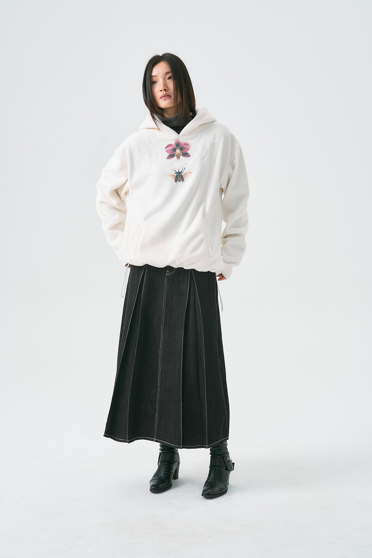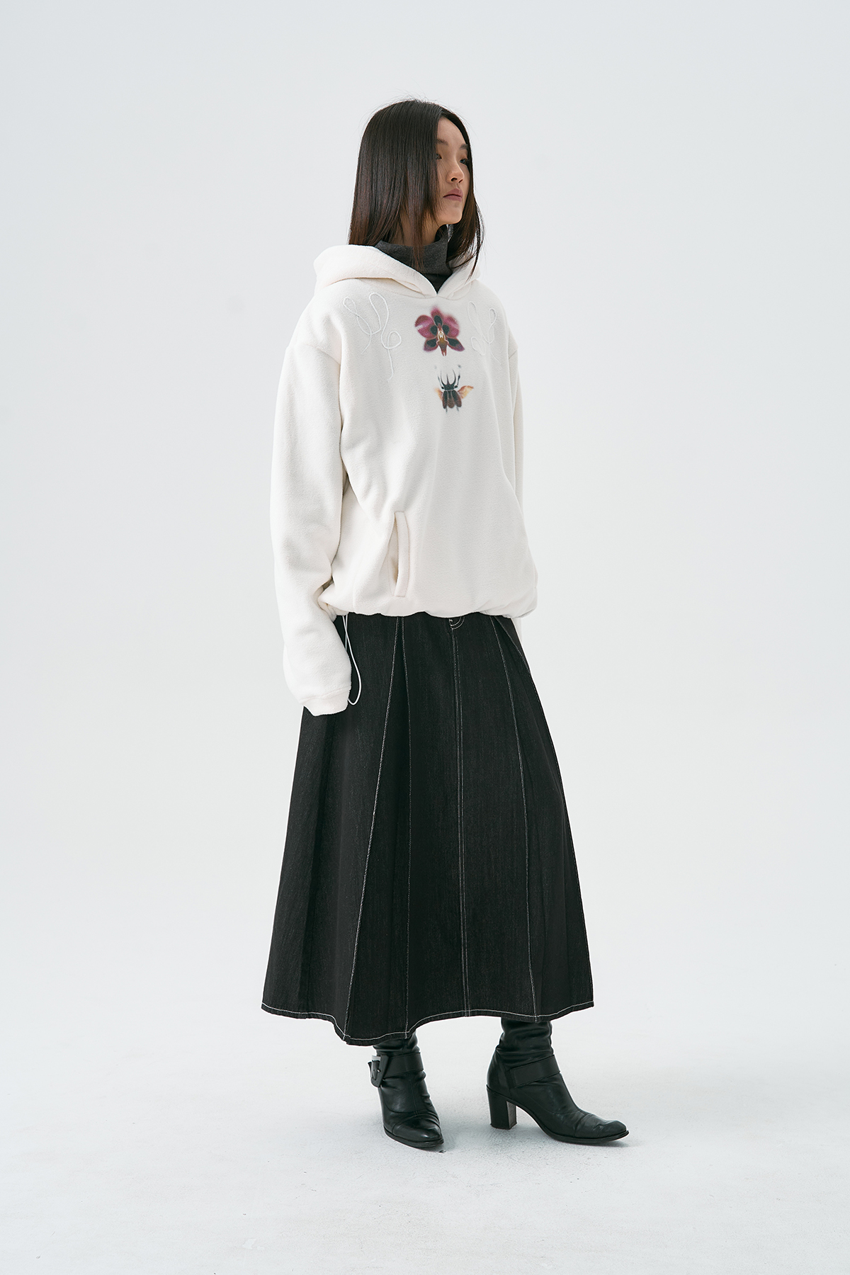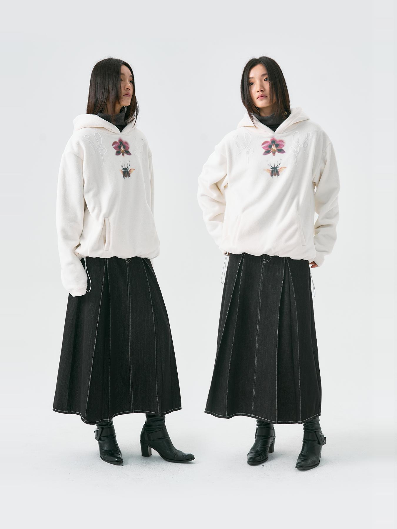 Beetle and Orchid Embroidery Double-Sided Fleece Hoodie WN18872