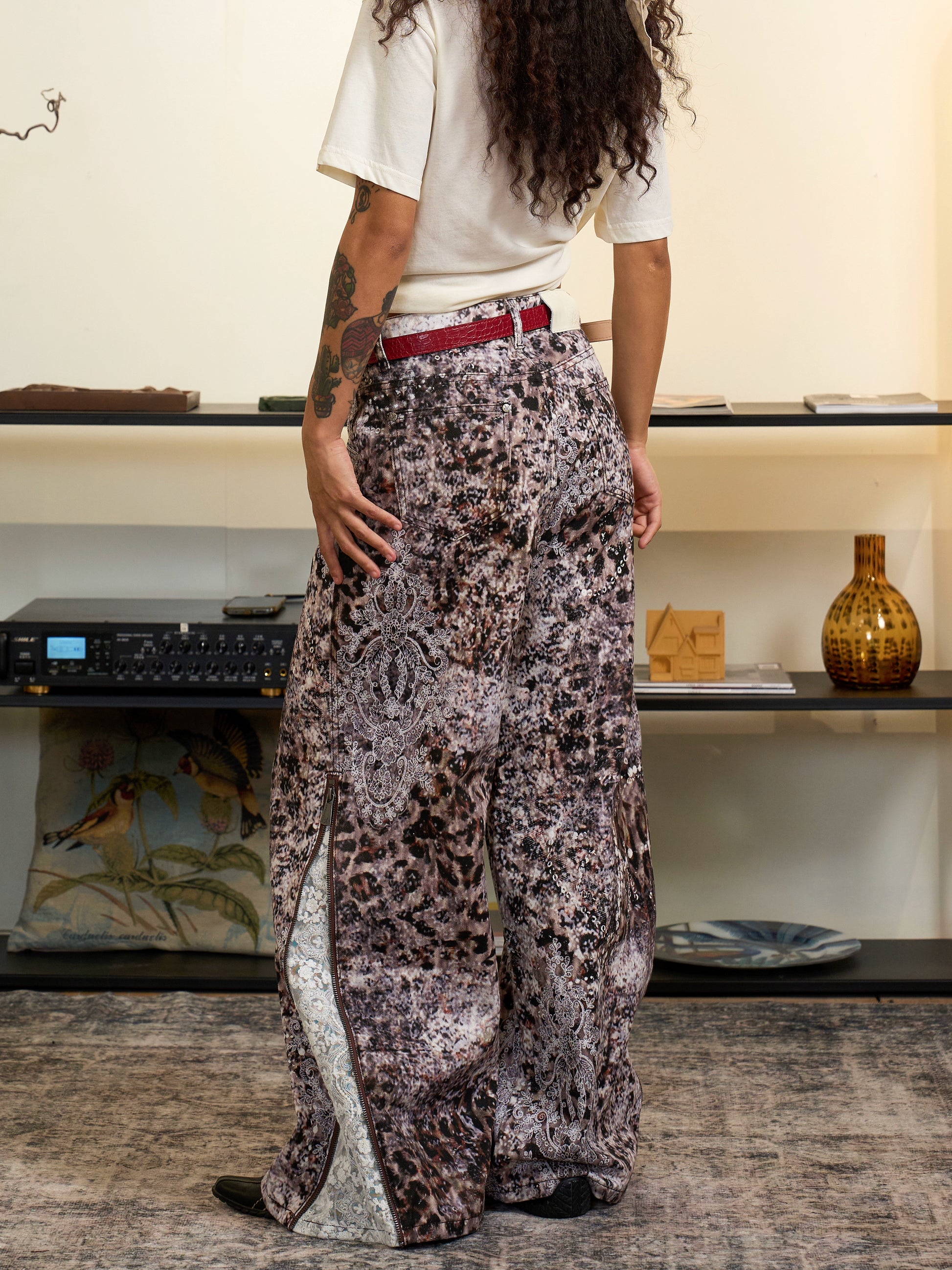 Digital Print Leopard Pattern Denim Jeans WN18992