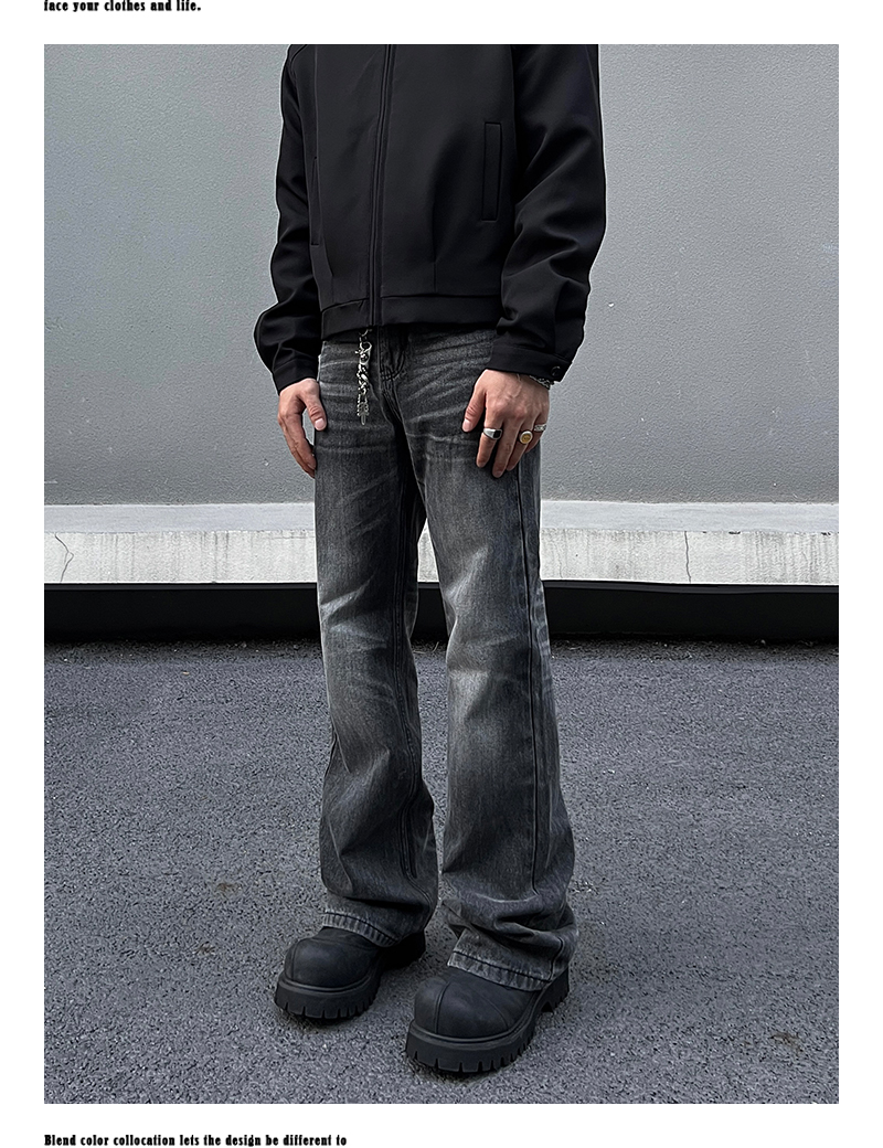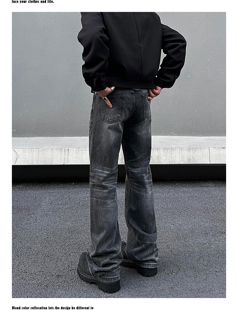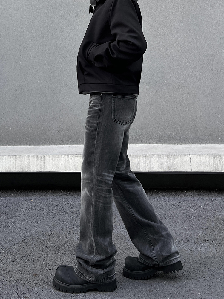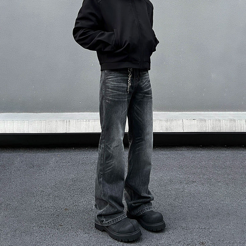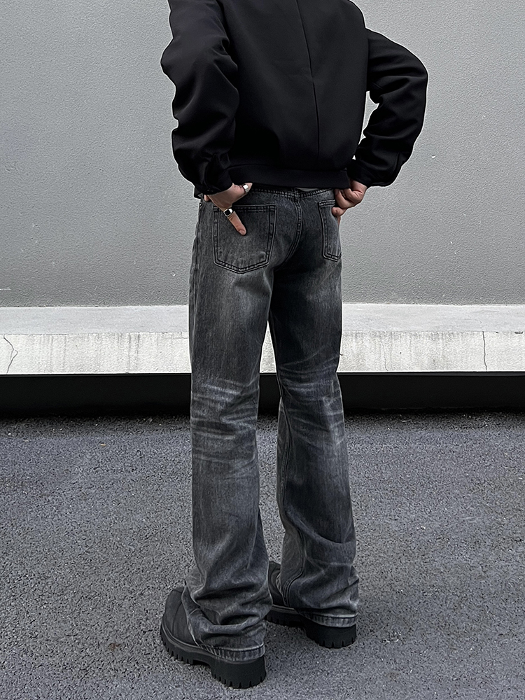 Lightning Pattern Washed Flare Denim Jeans WN19552