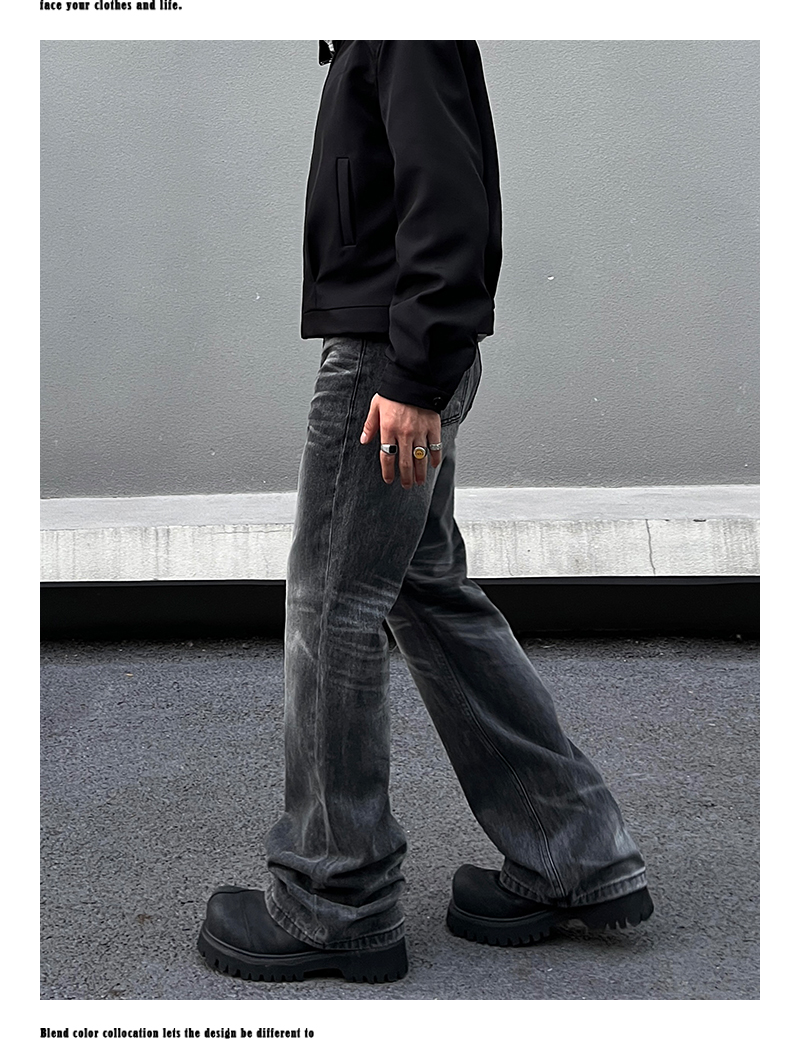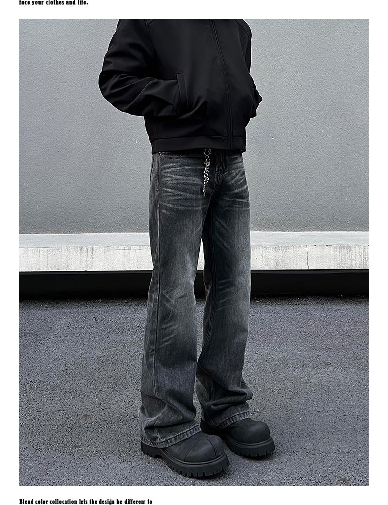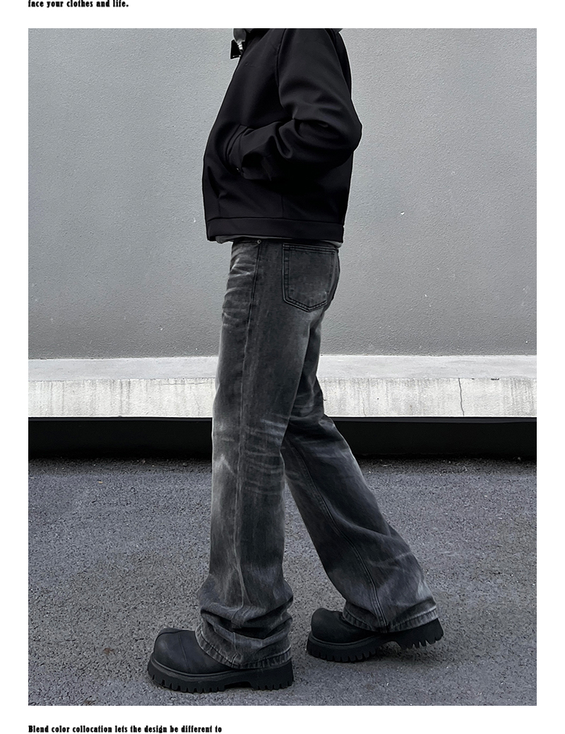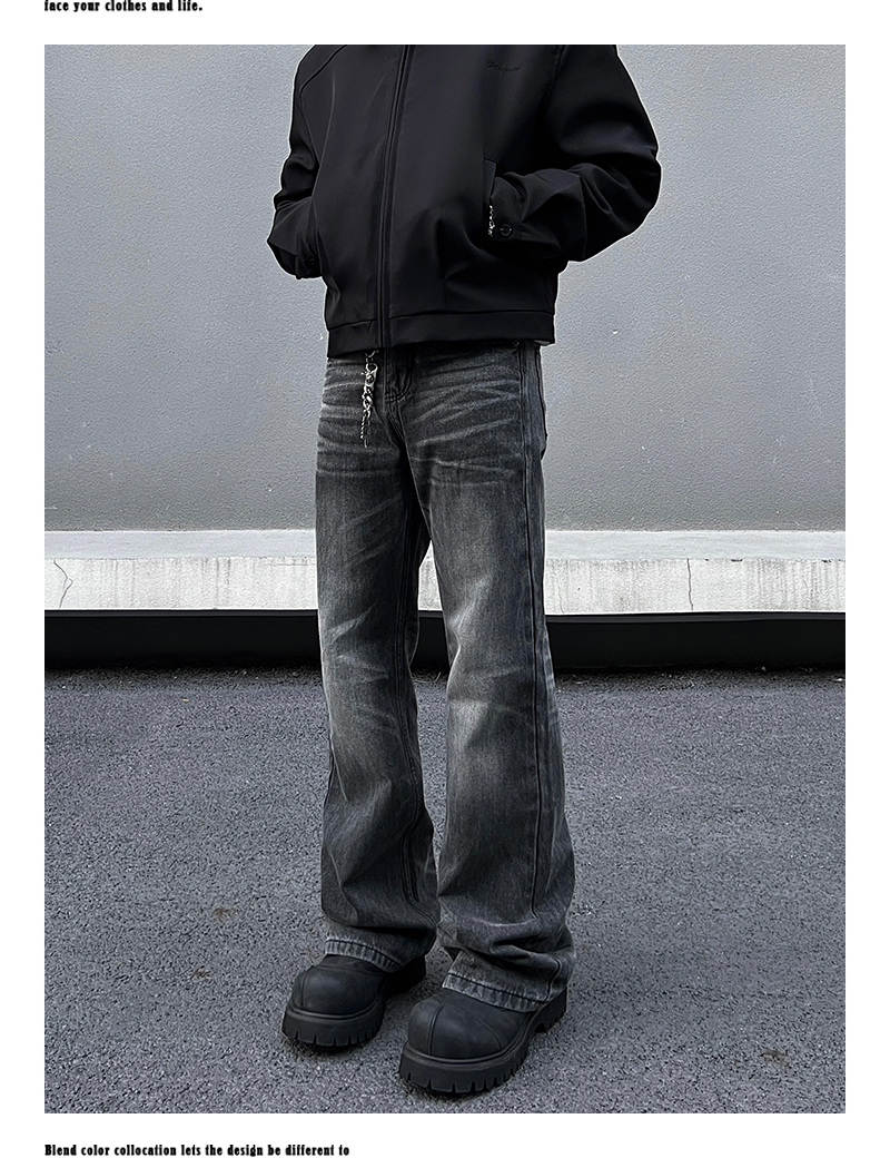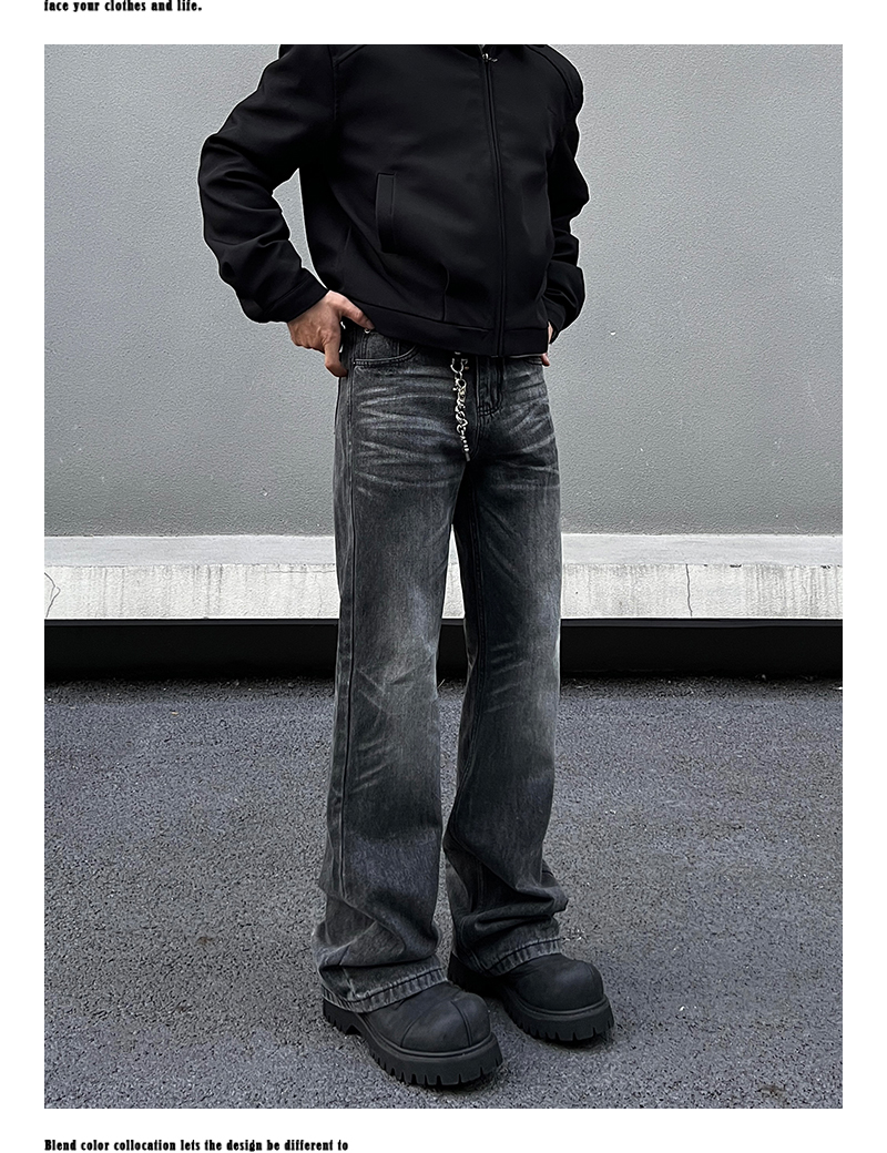 Lightning Pattern Washed Flare Denim Jeans WN19552
