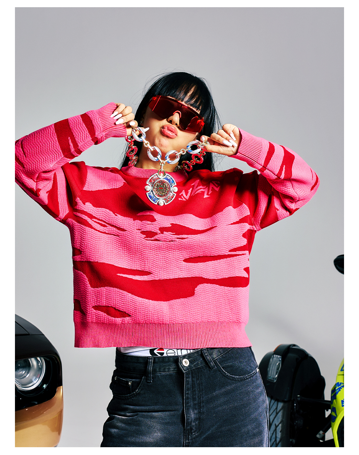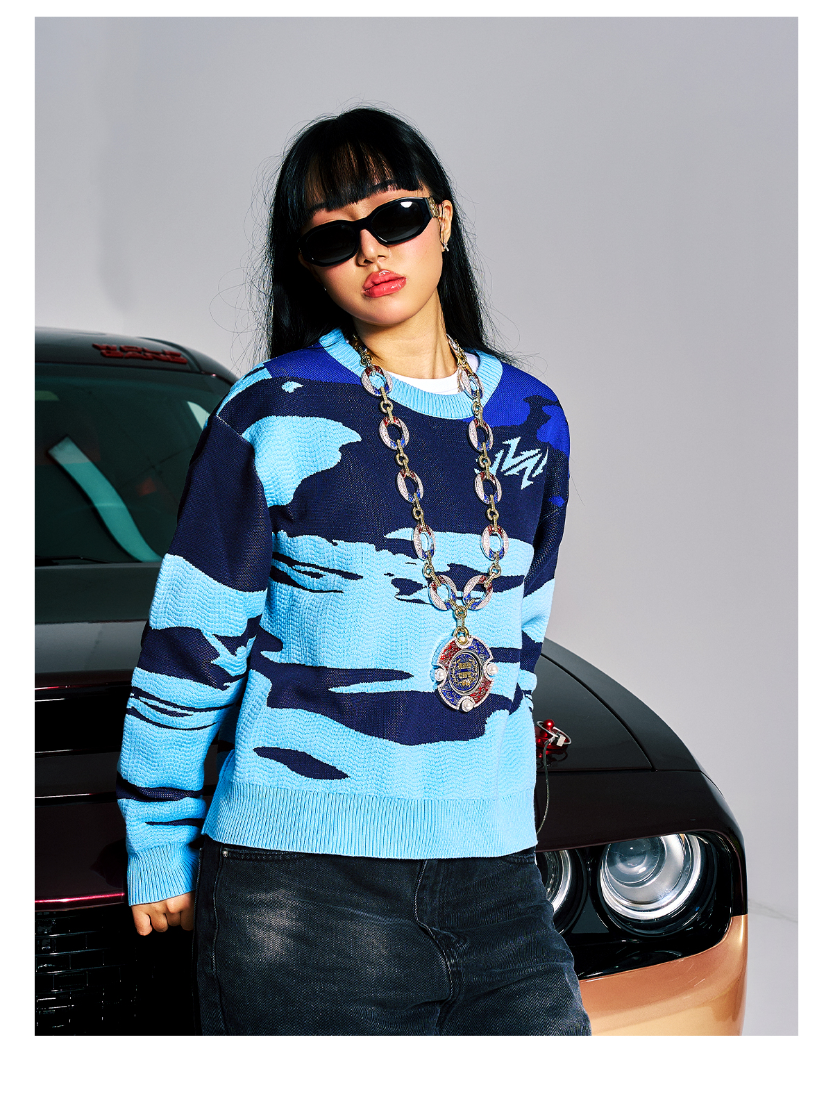 Contrast Color Jacquard Knit Sweater WN21009