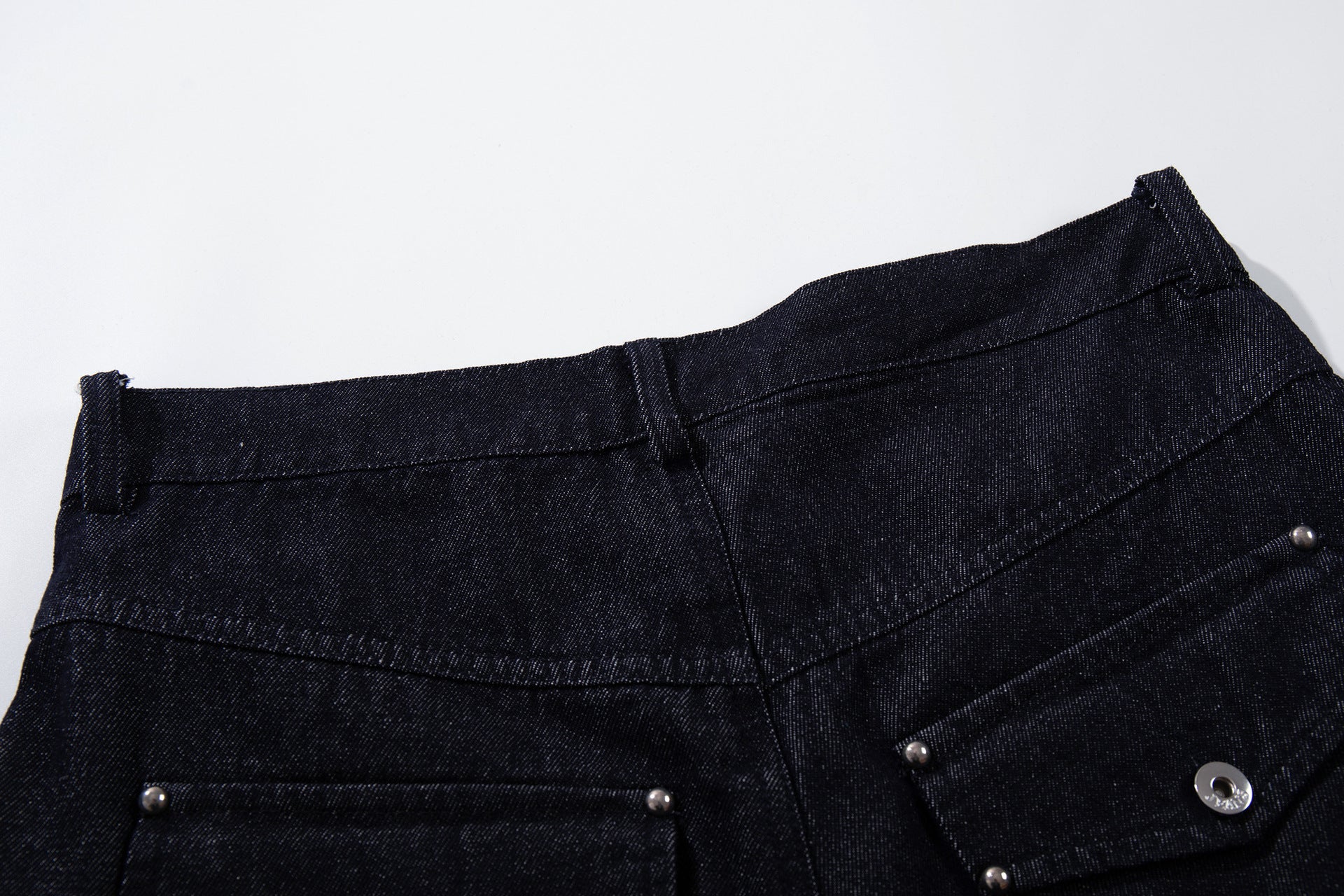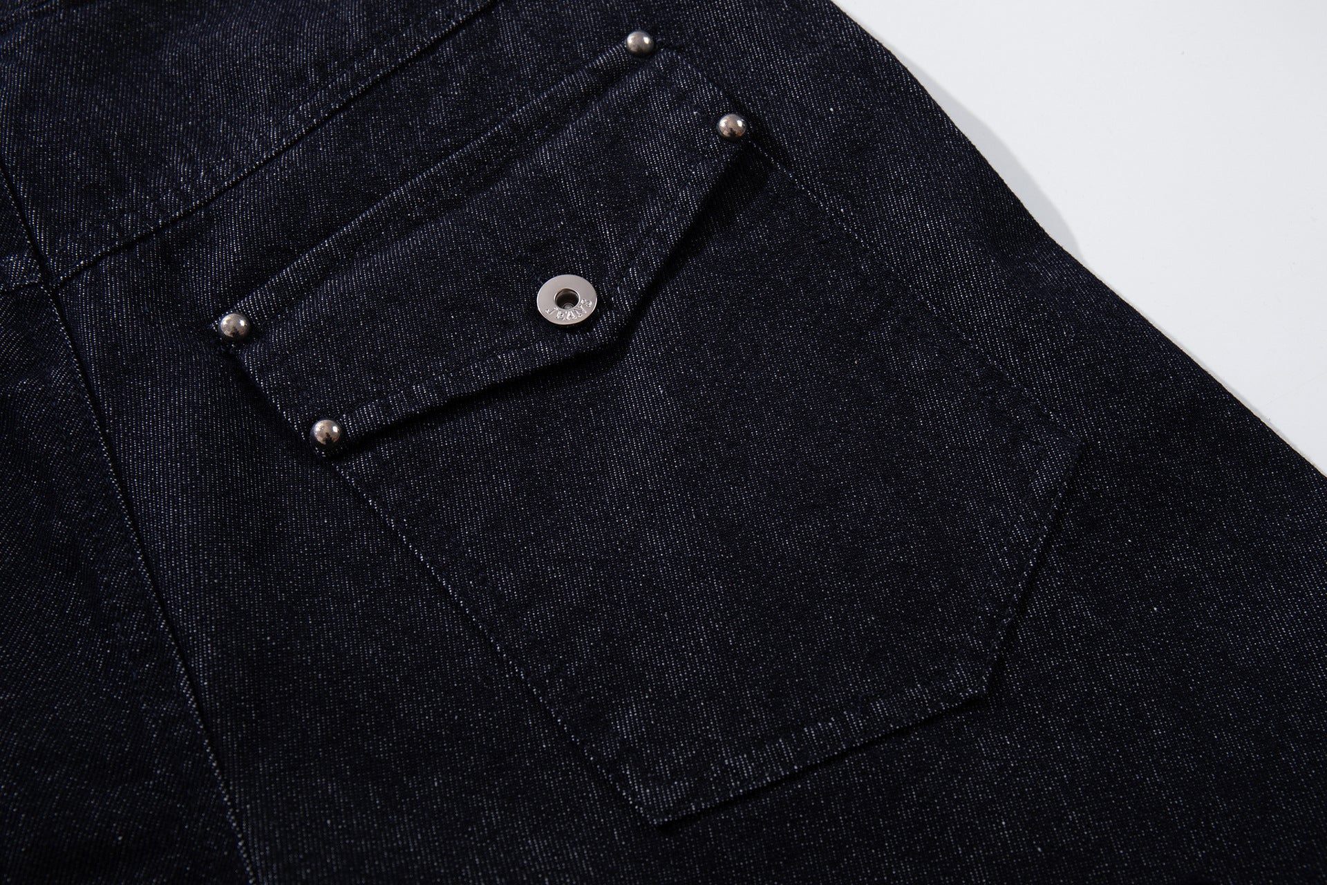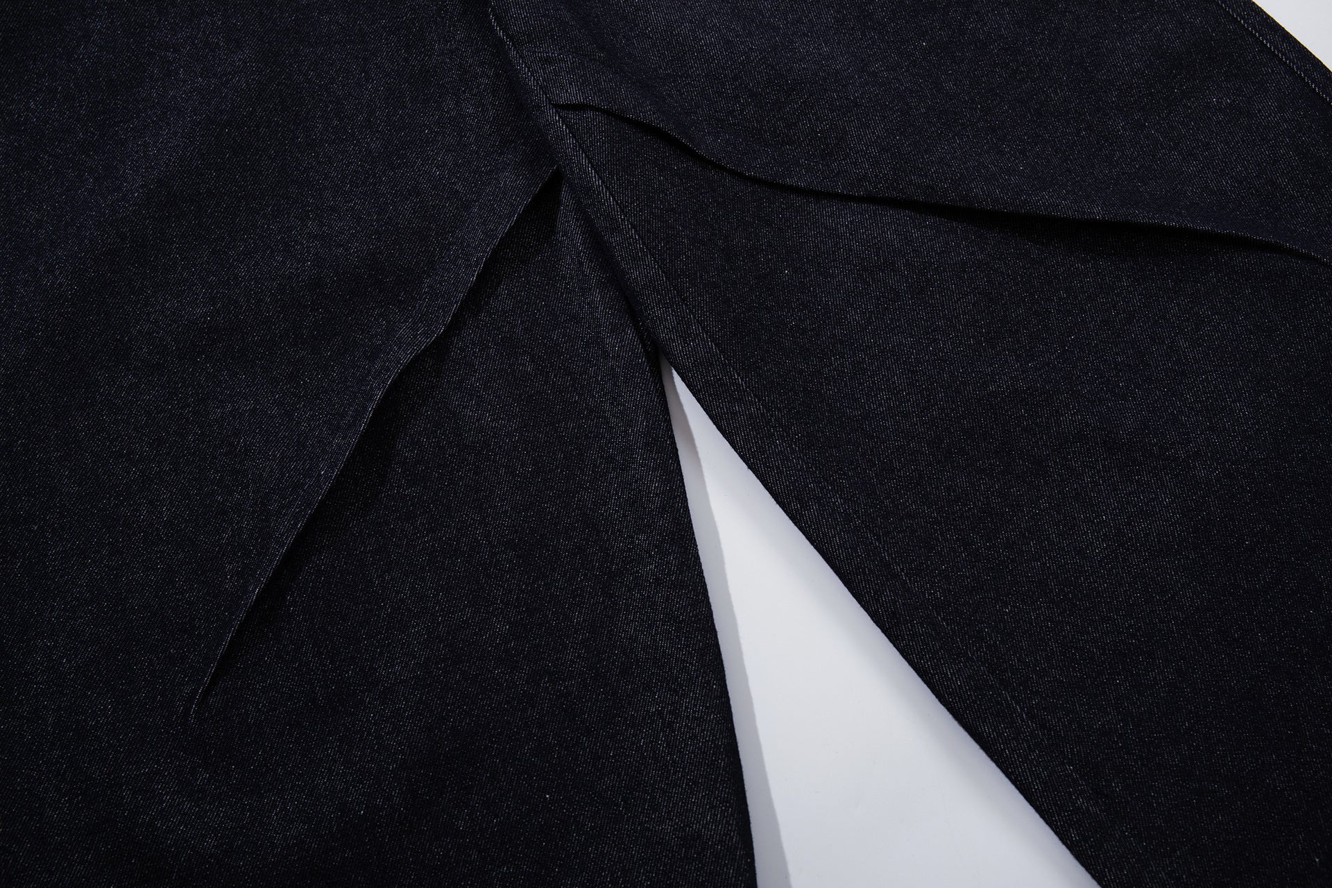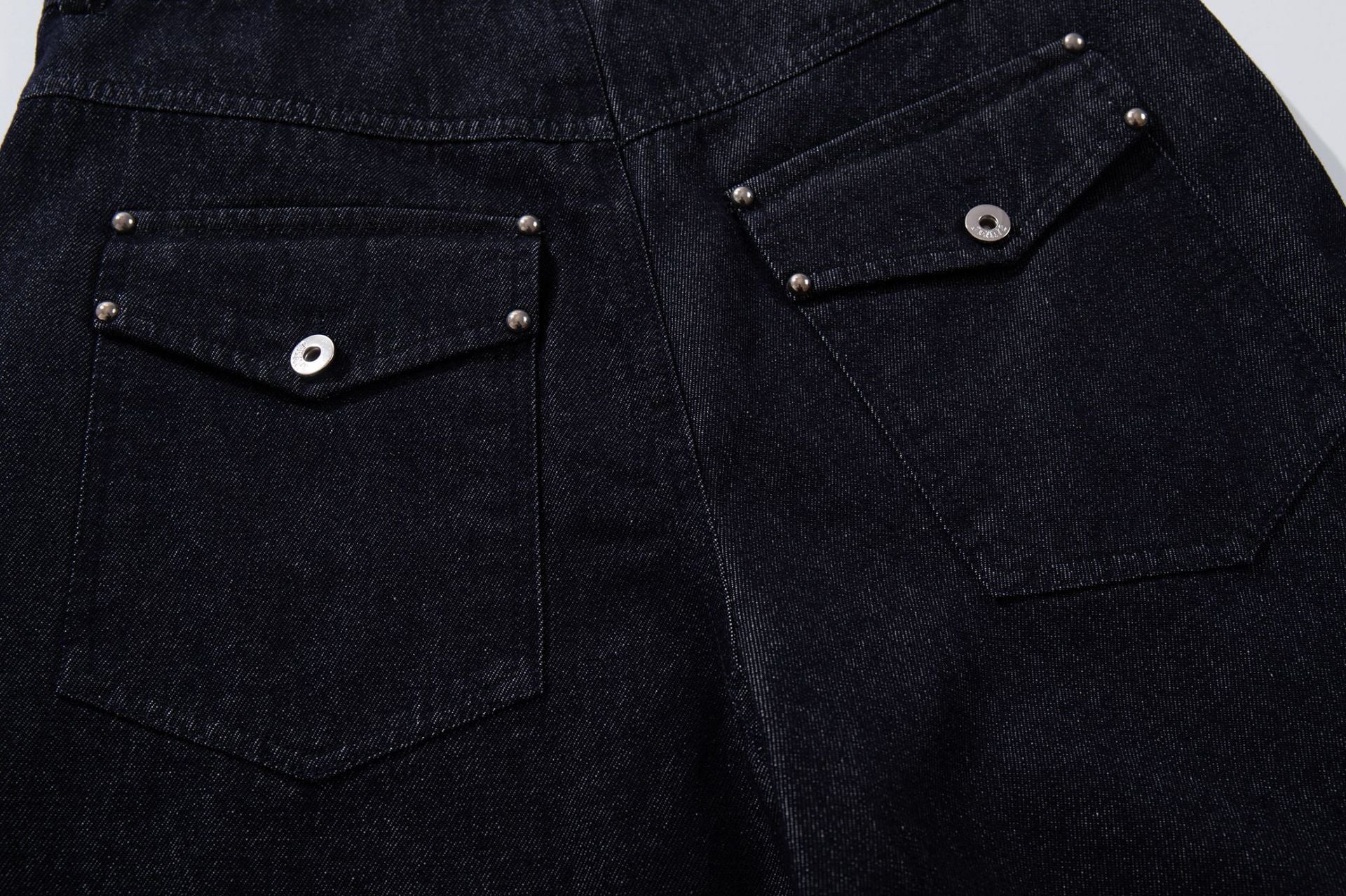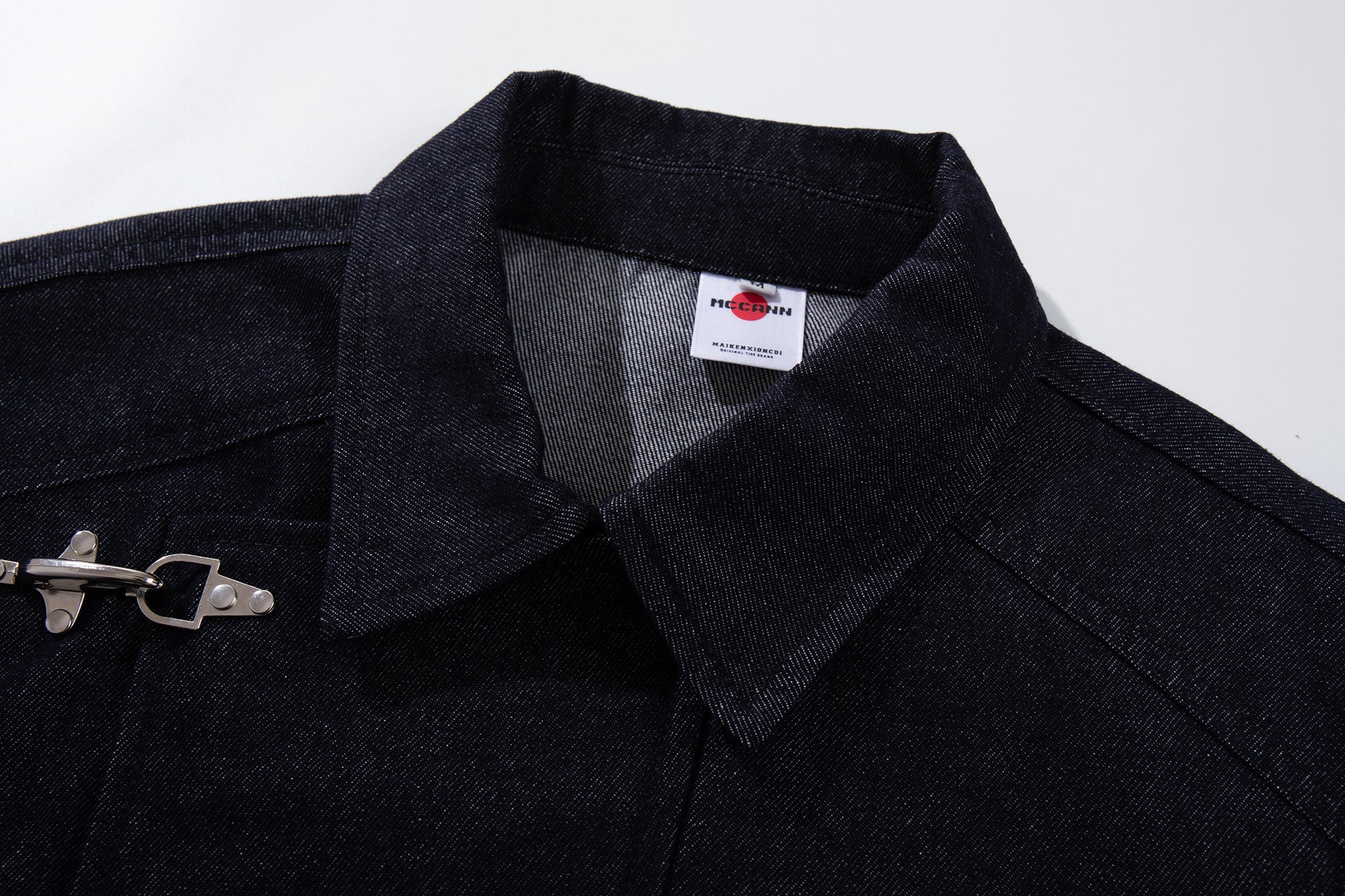 Washed Raw Denim Metal Buckle Jacket & Wide Leg Denim Jeans Setup WN23048