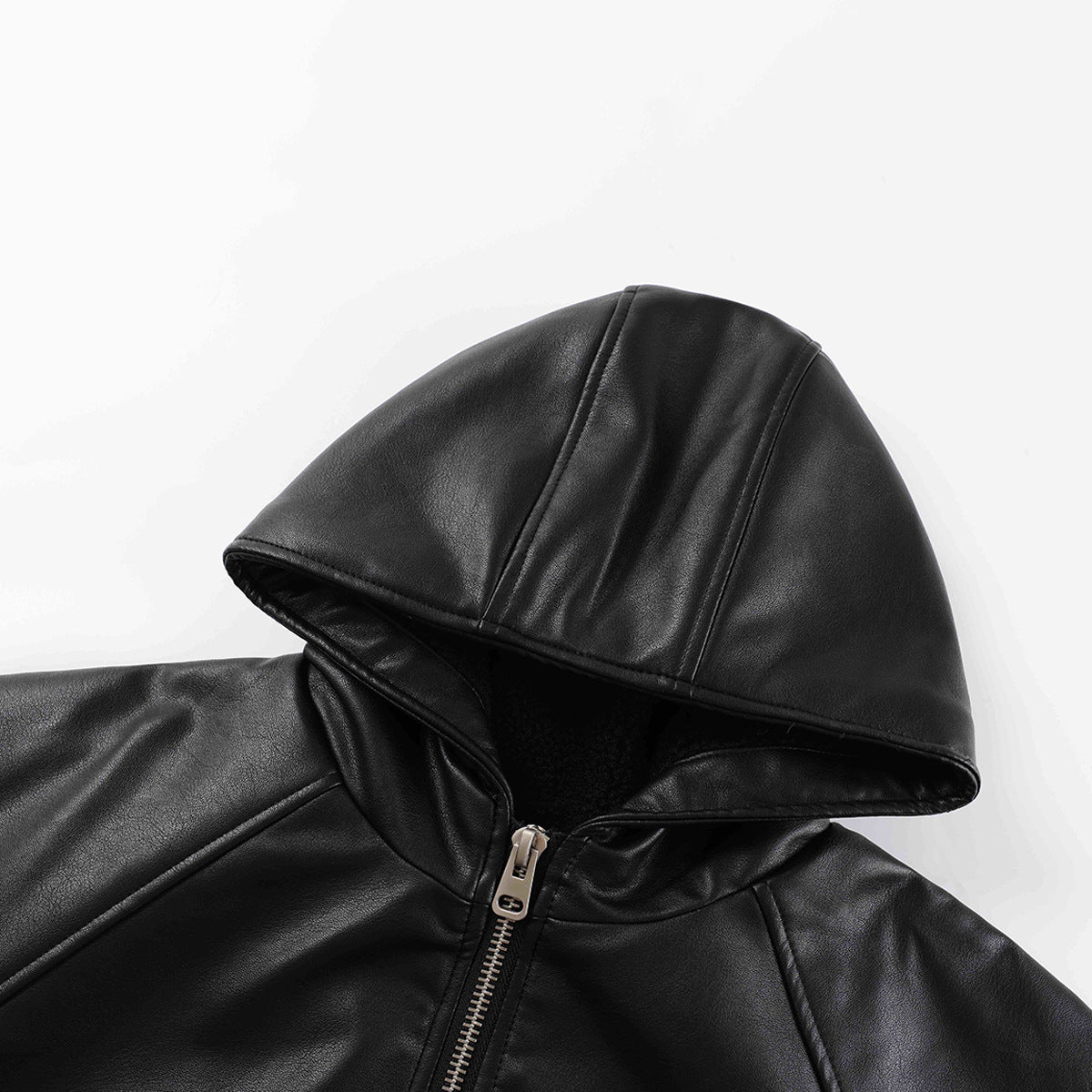 Hooded Zip-Up PU Leather Jacket WN23084