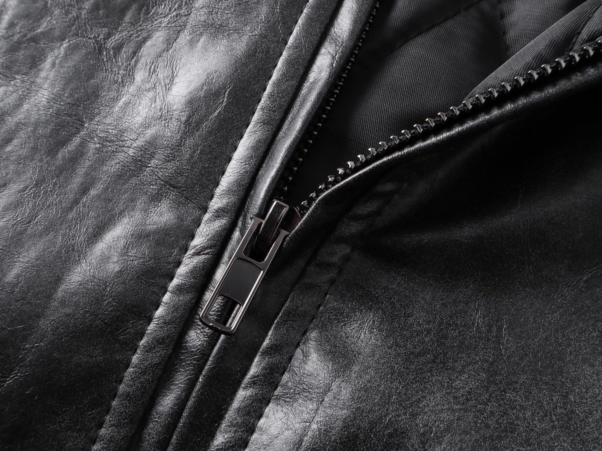 Standing-Collar Zip-Up Pocket PU Leather Jacket WN23085