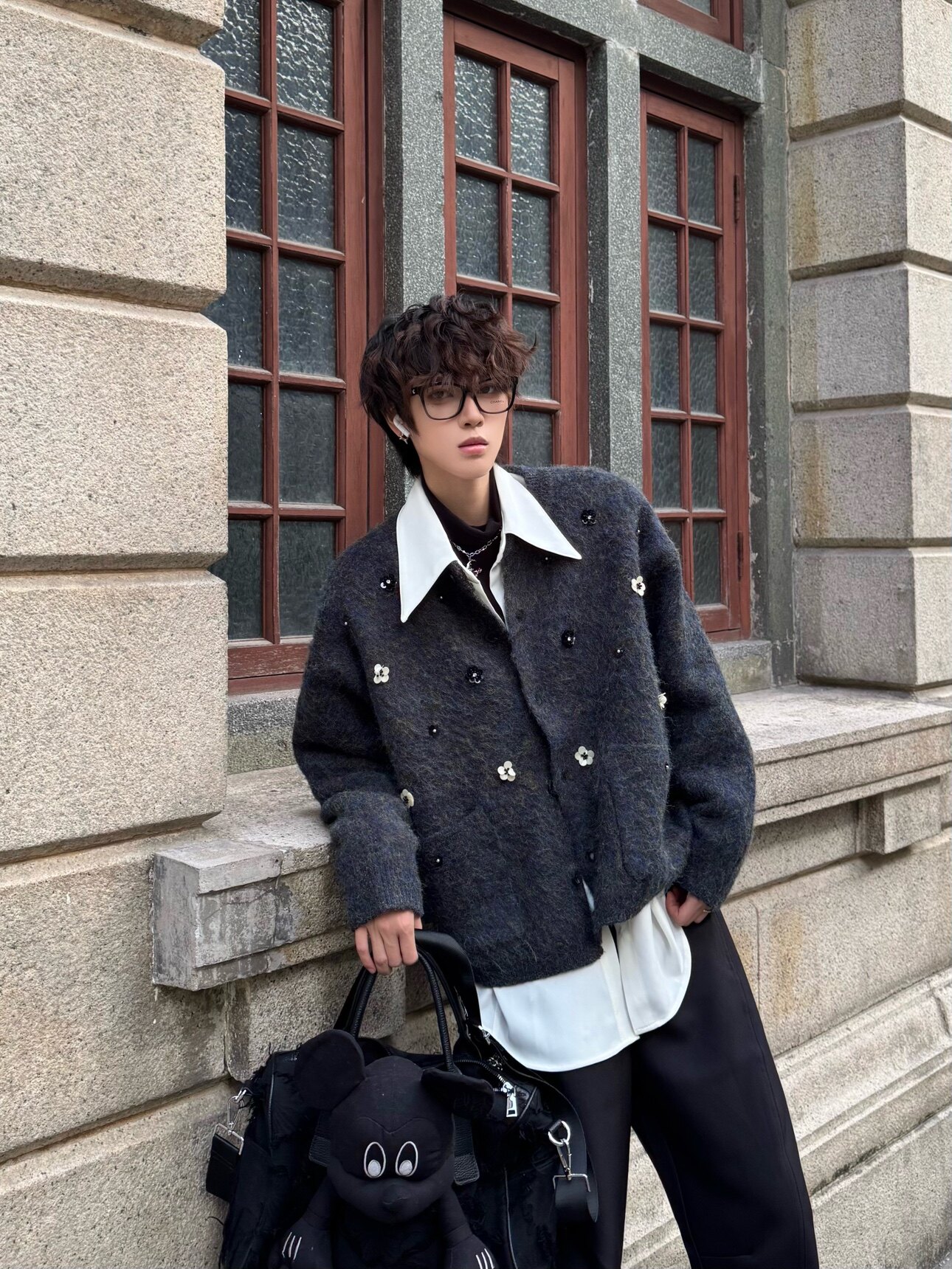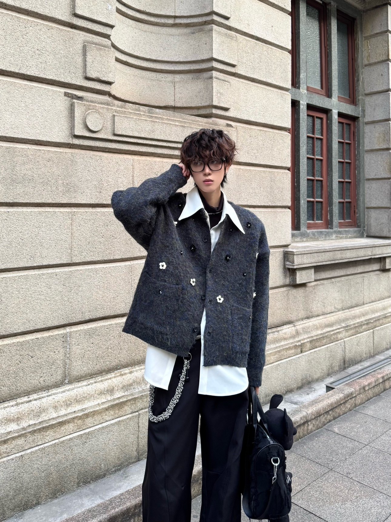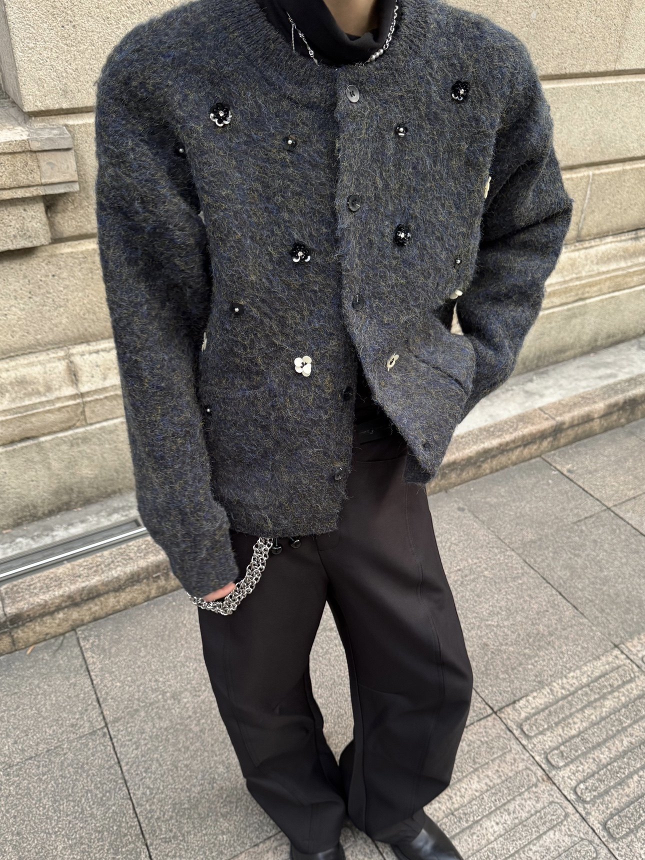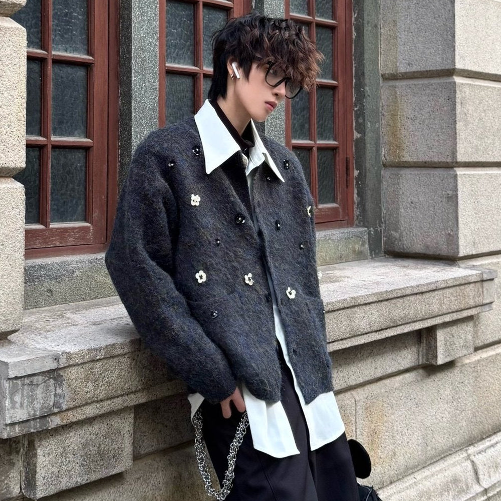 Hand-Beaded Flower Oversize Knit Cardigan WN23183