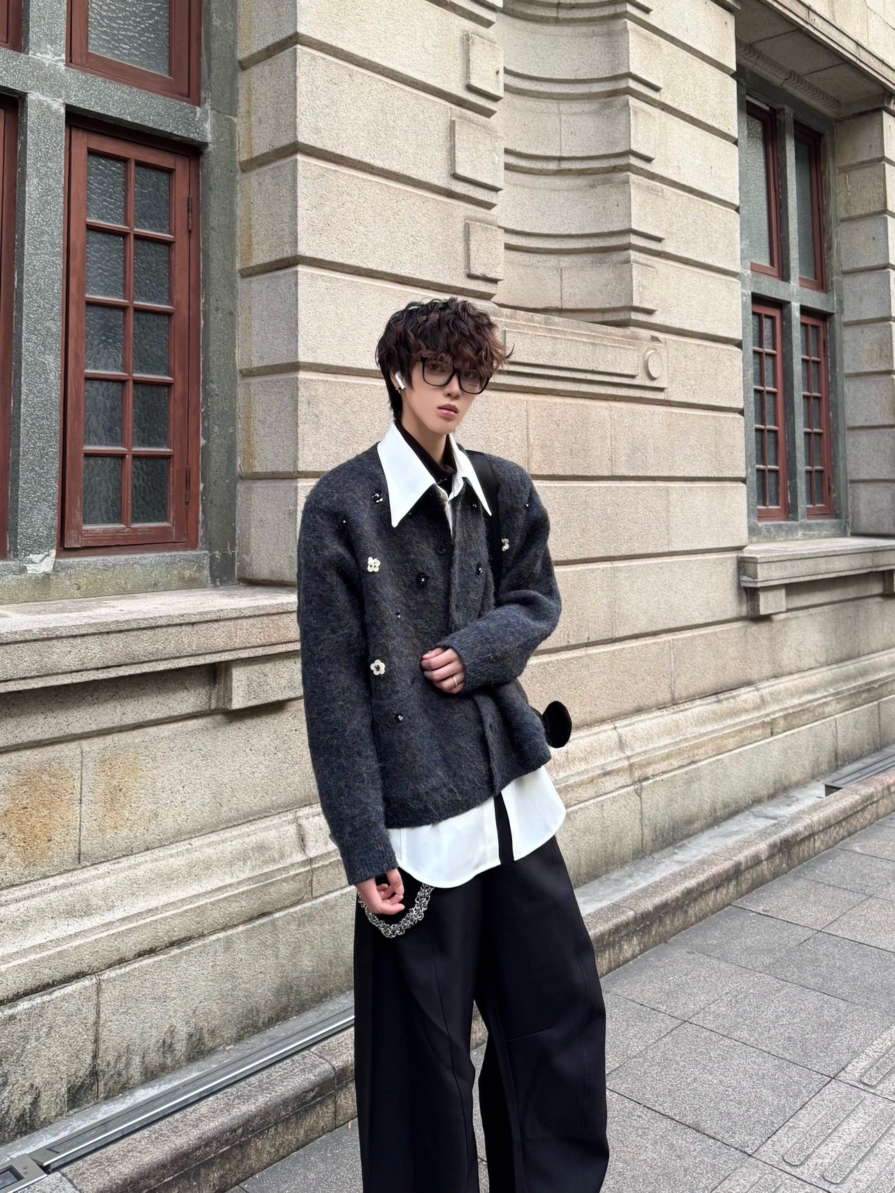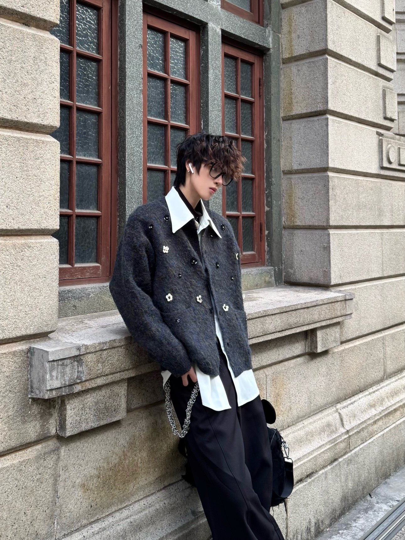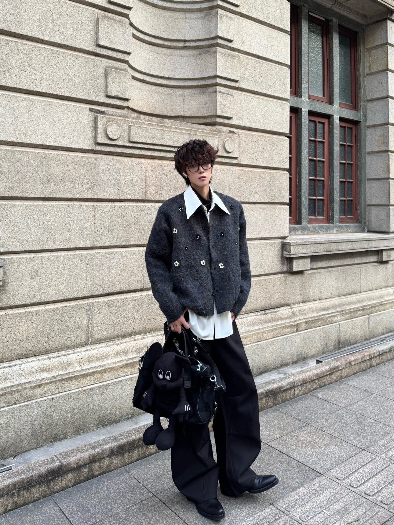 Hand-Beaded Flower Oversize Knit Cardigan WN23183