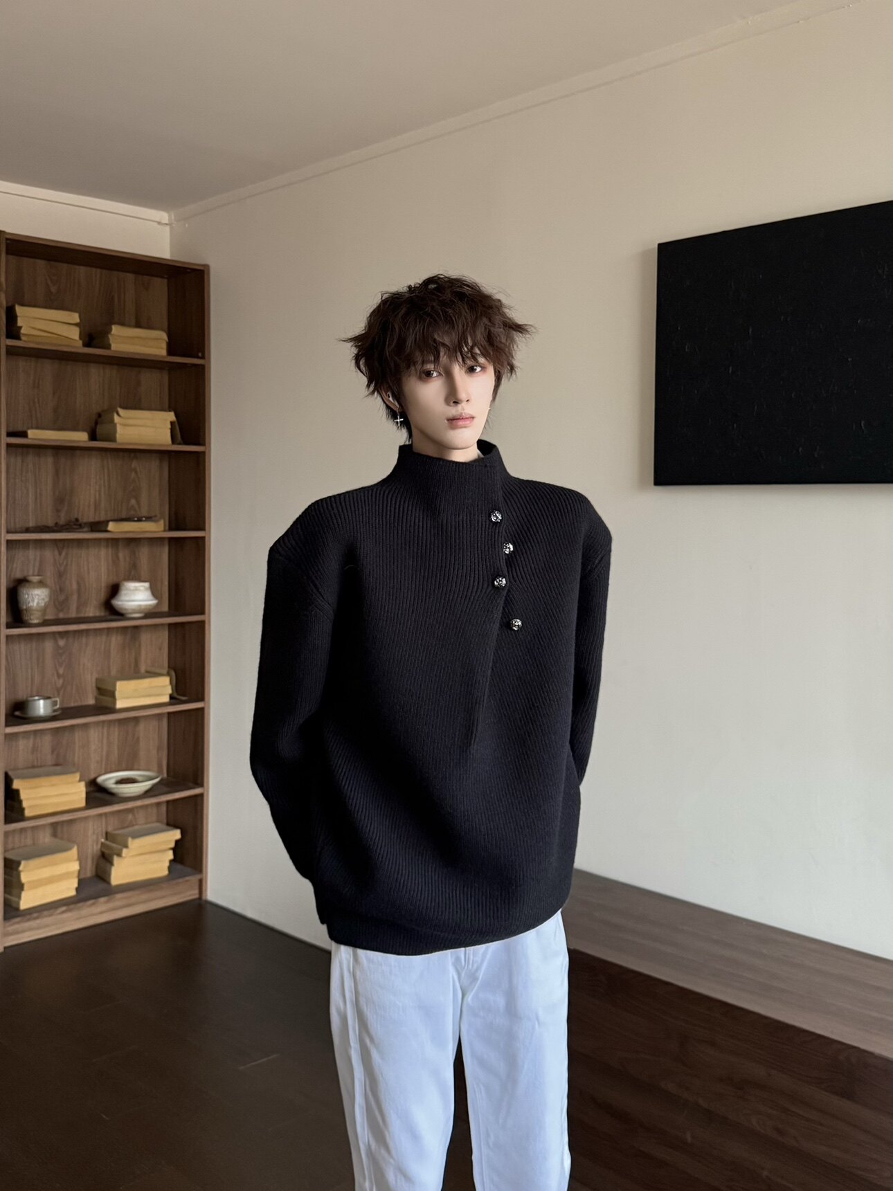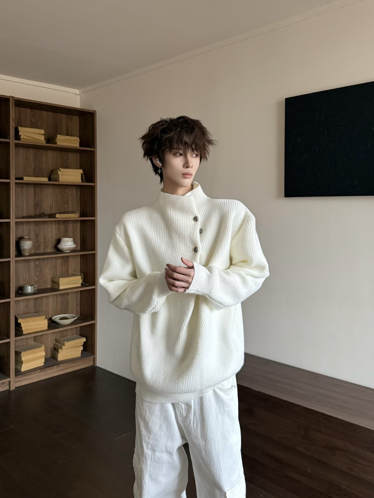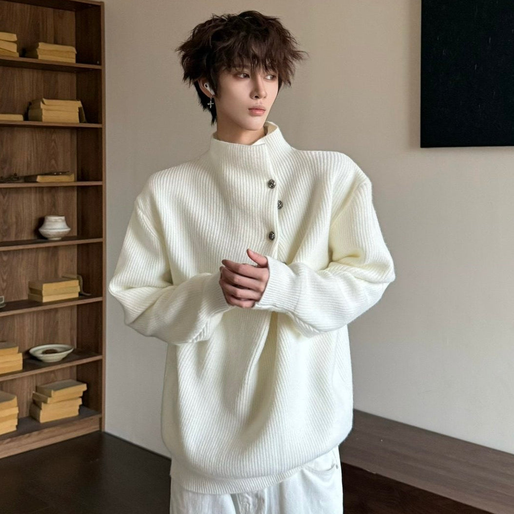 Korean Style High-Neck Button Oversize Knit Sweater WN23184