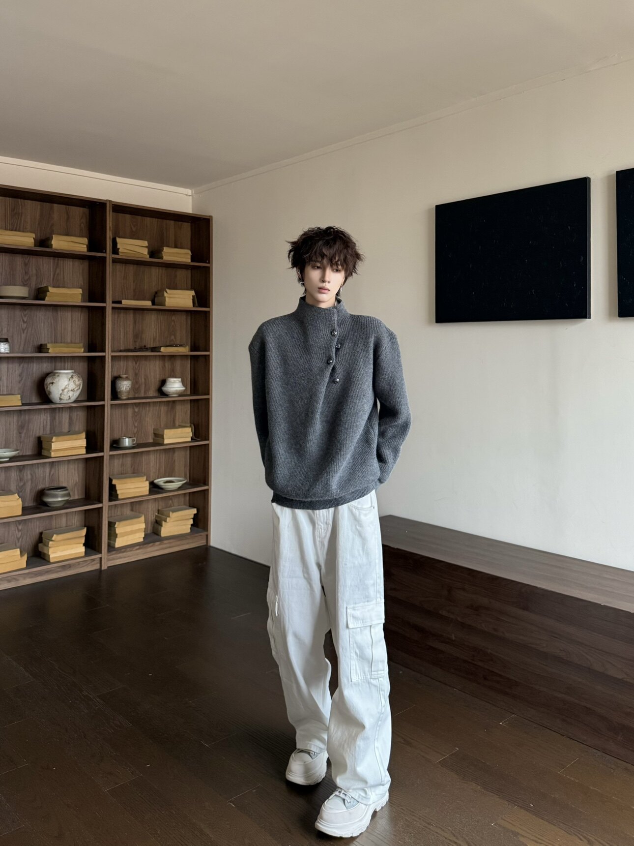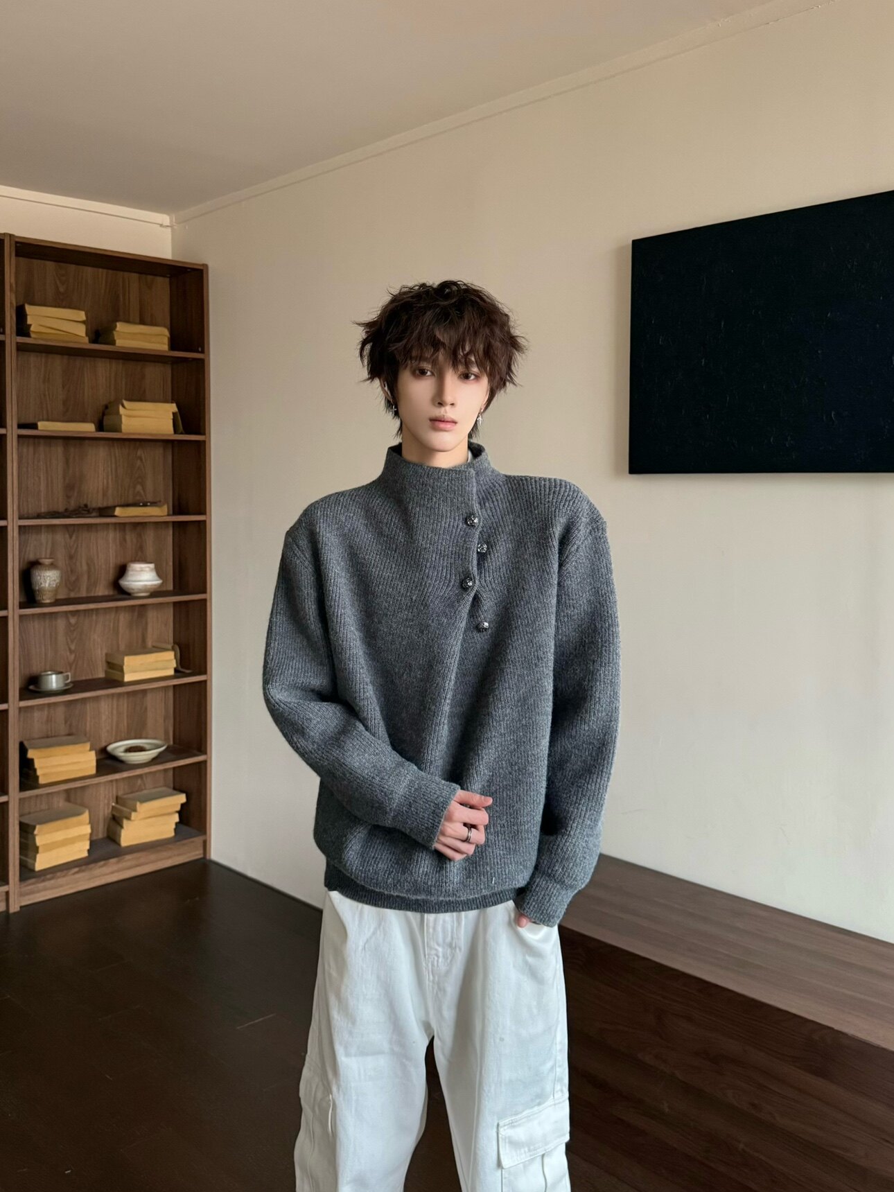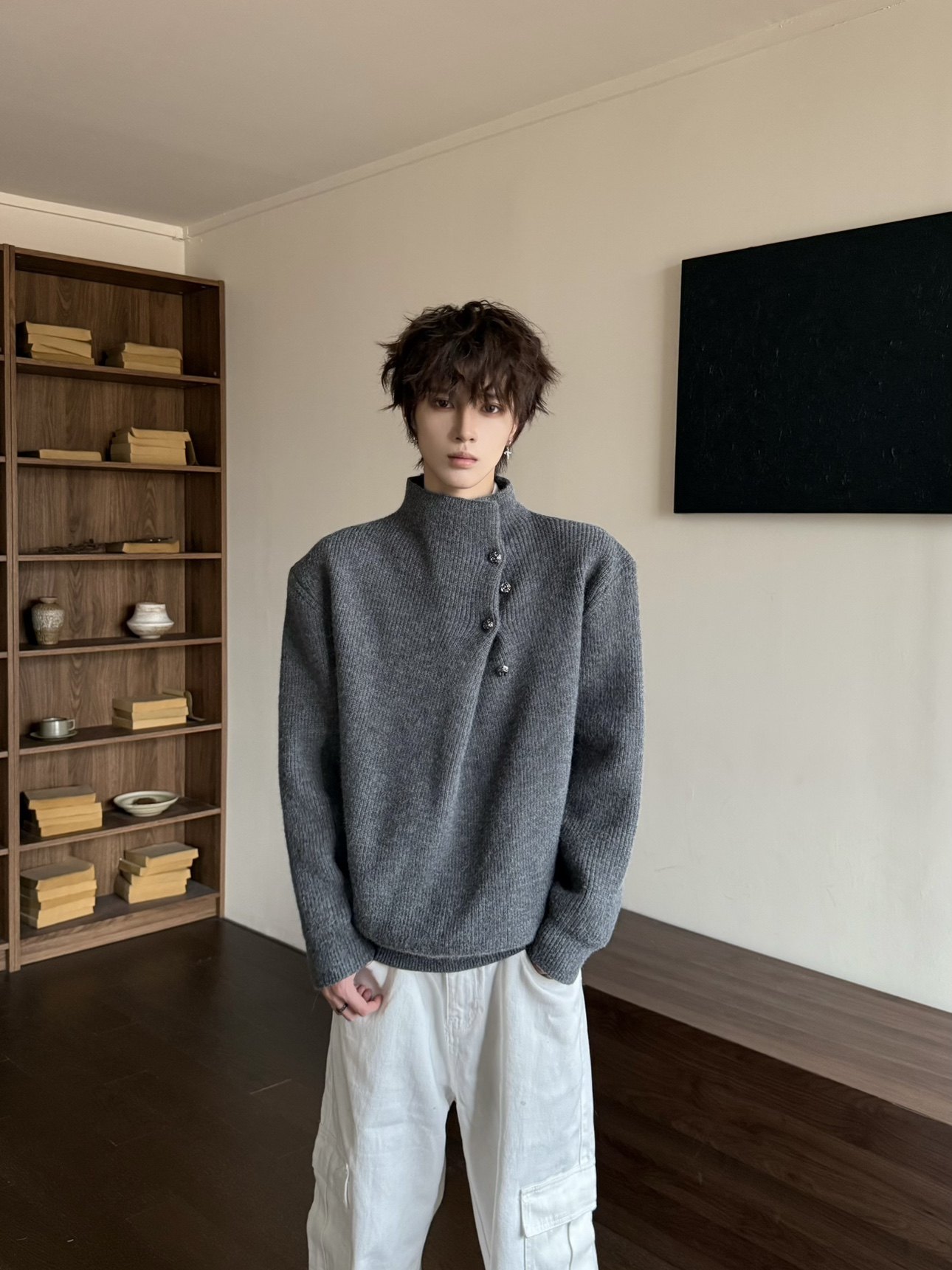 Korean Style High-Neck Button Oversize Knit Sweater WN23184