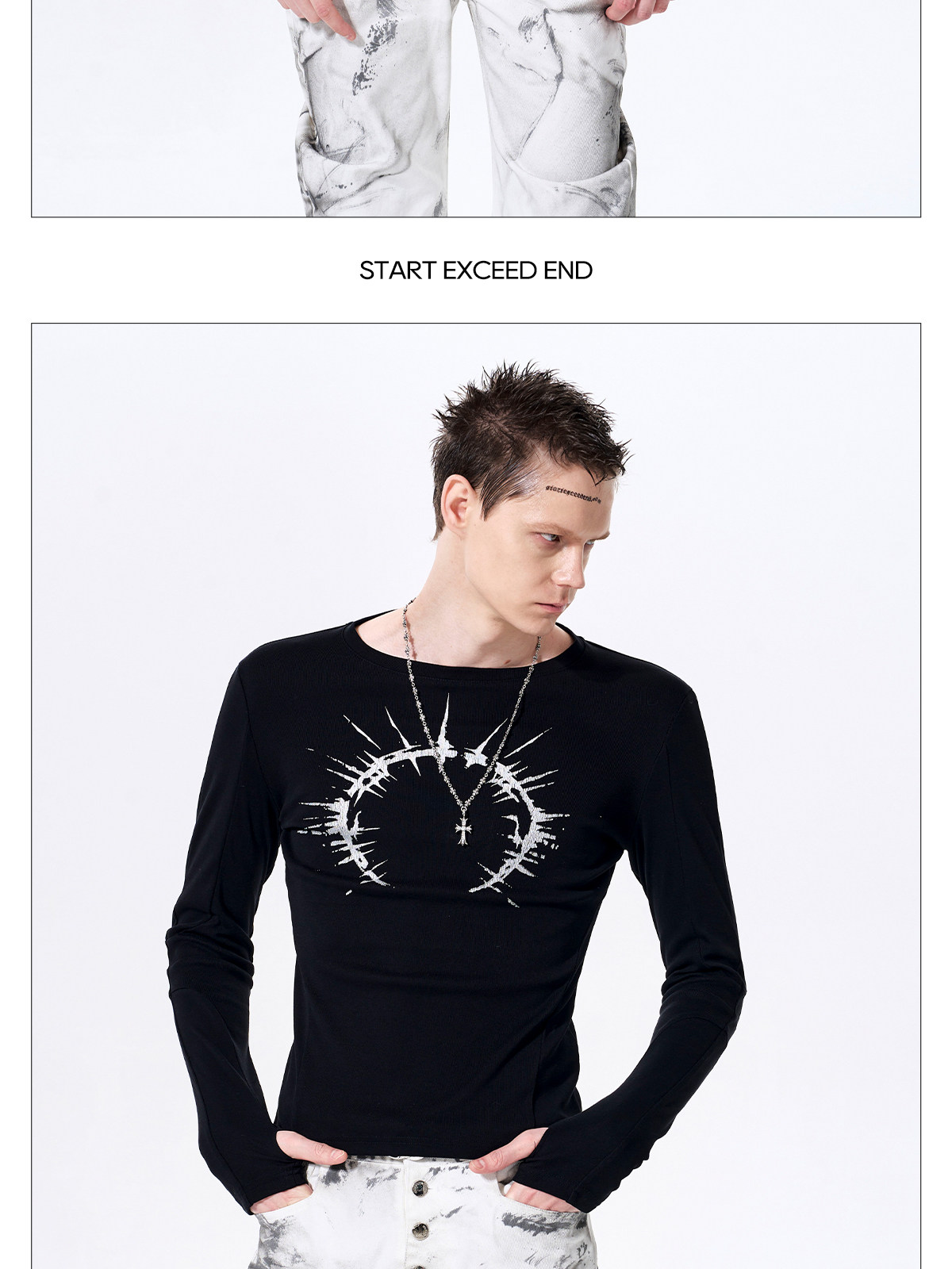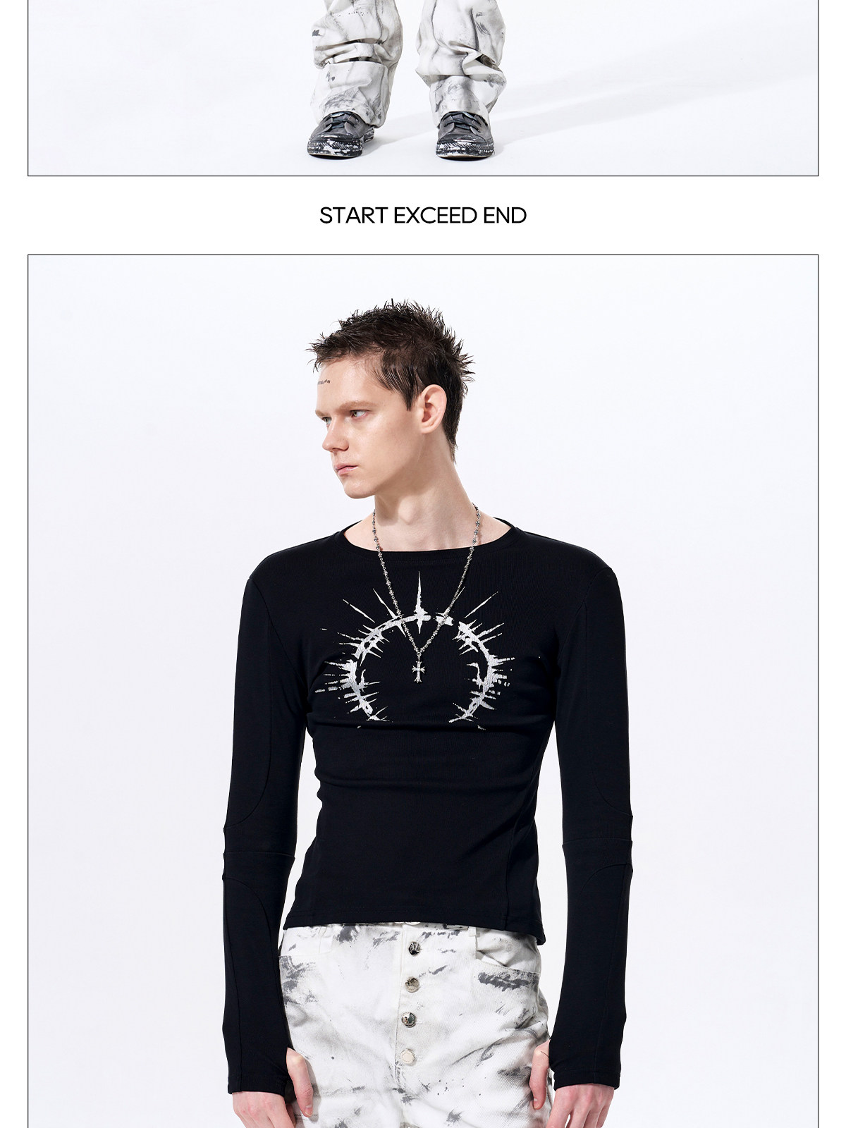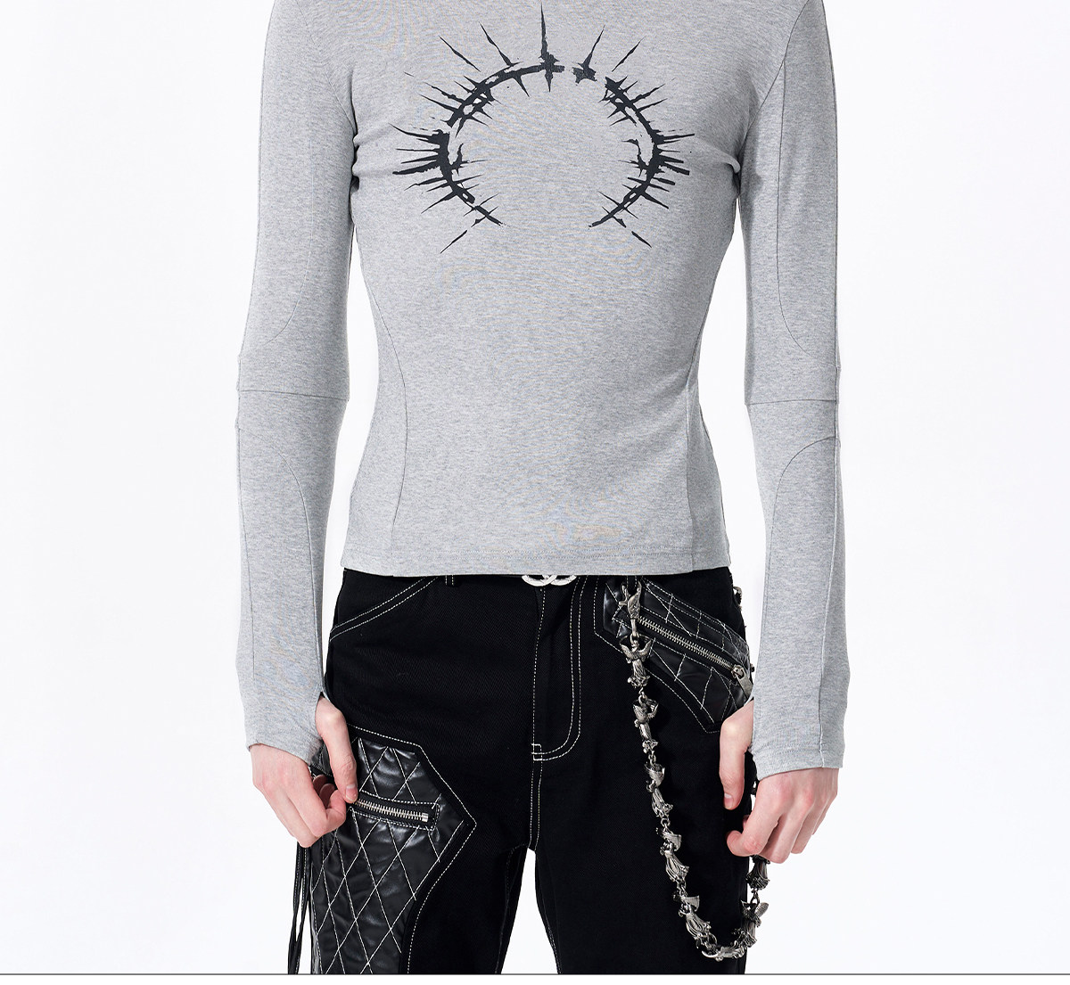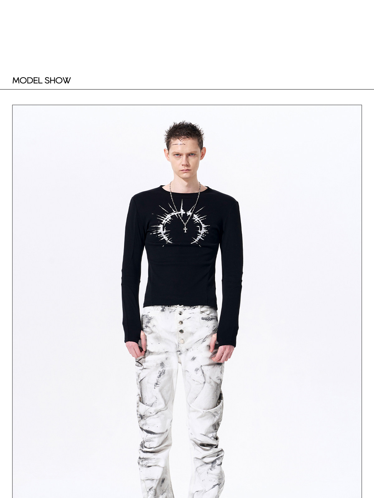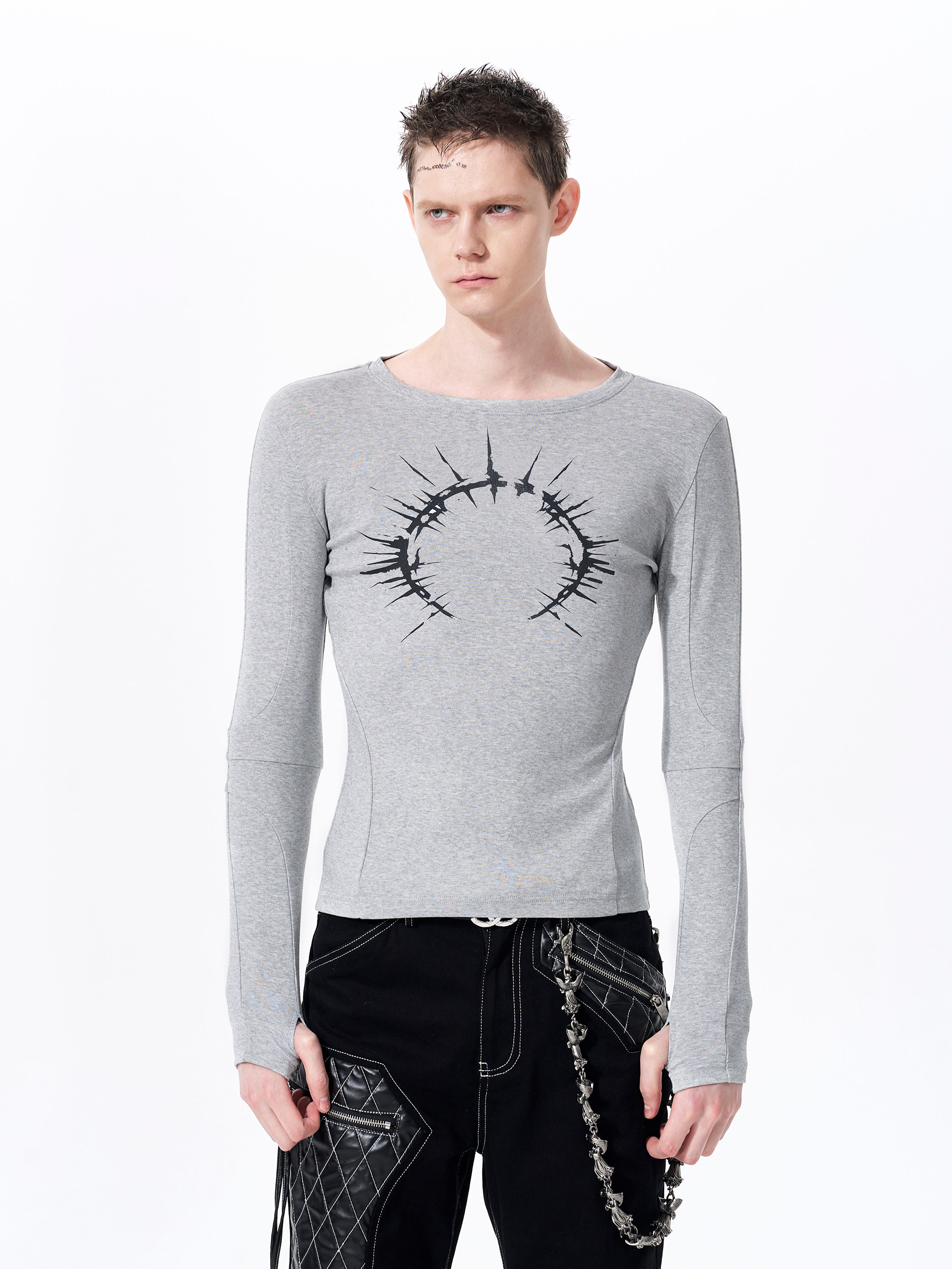 Silver Foil Print Long Sleeve T-Shirt WN23289