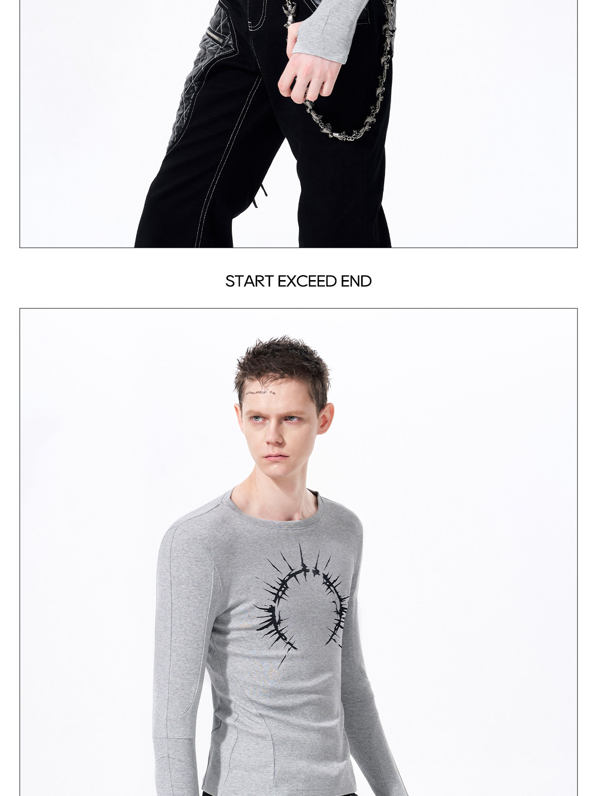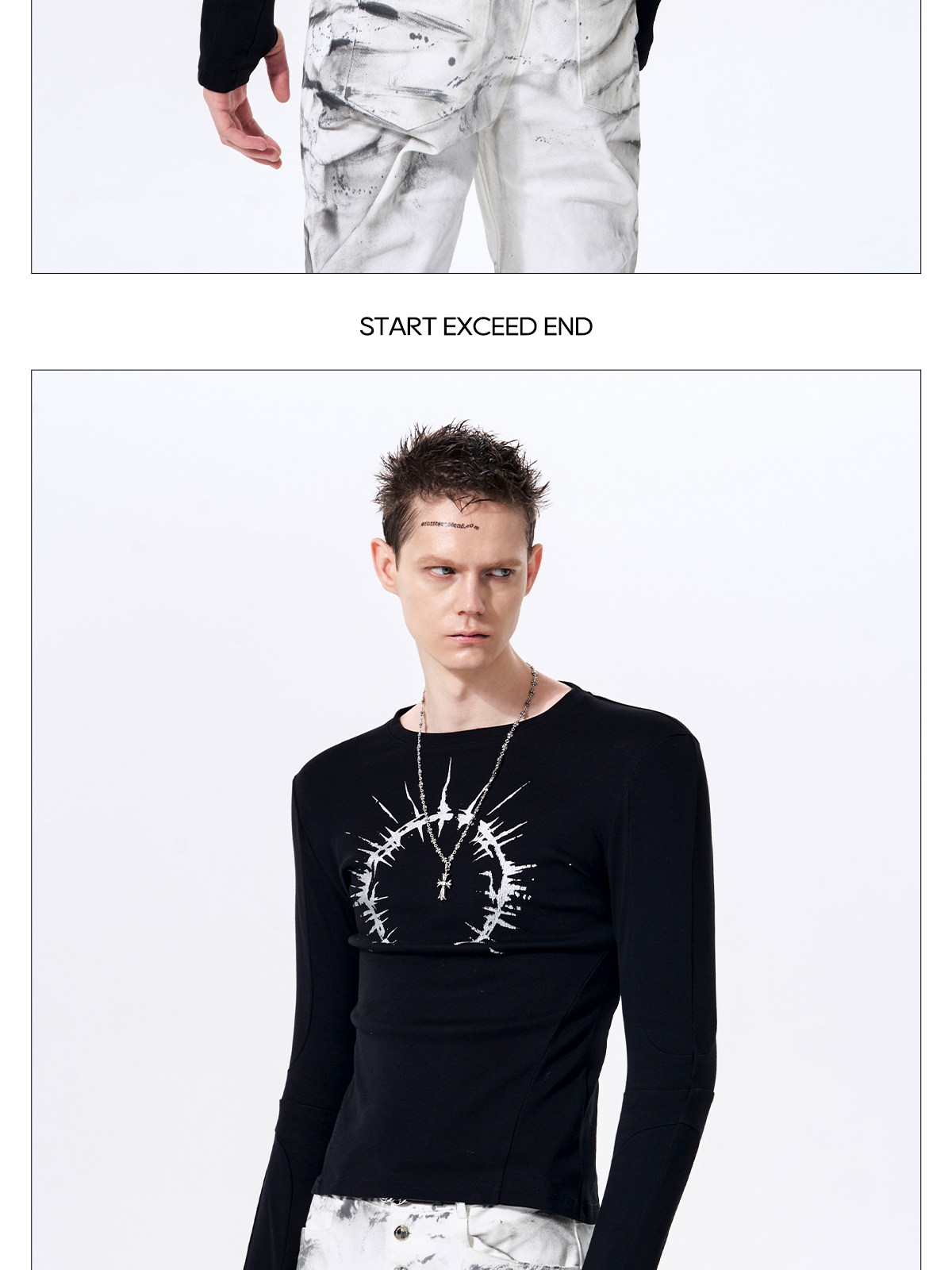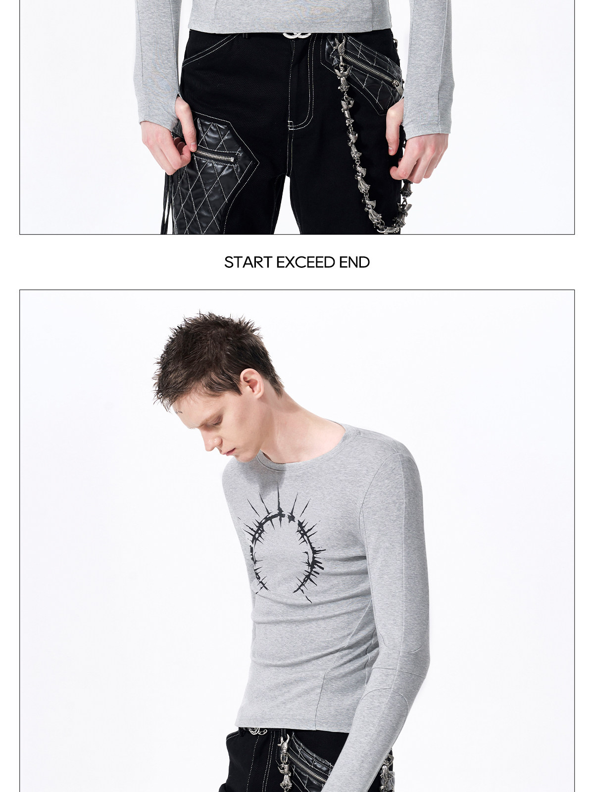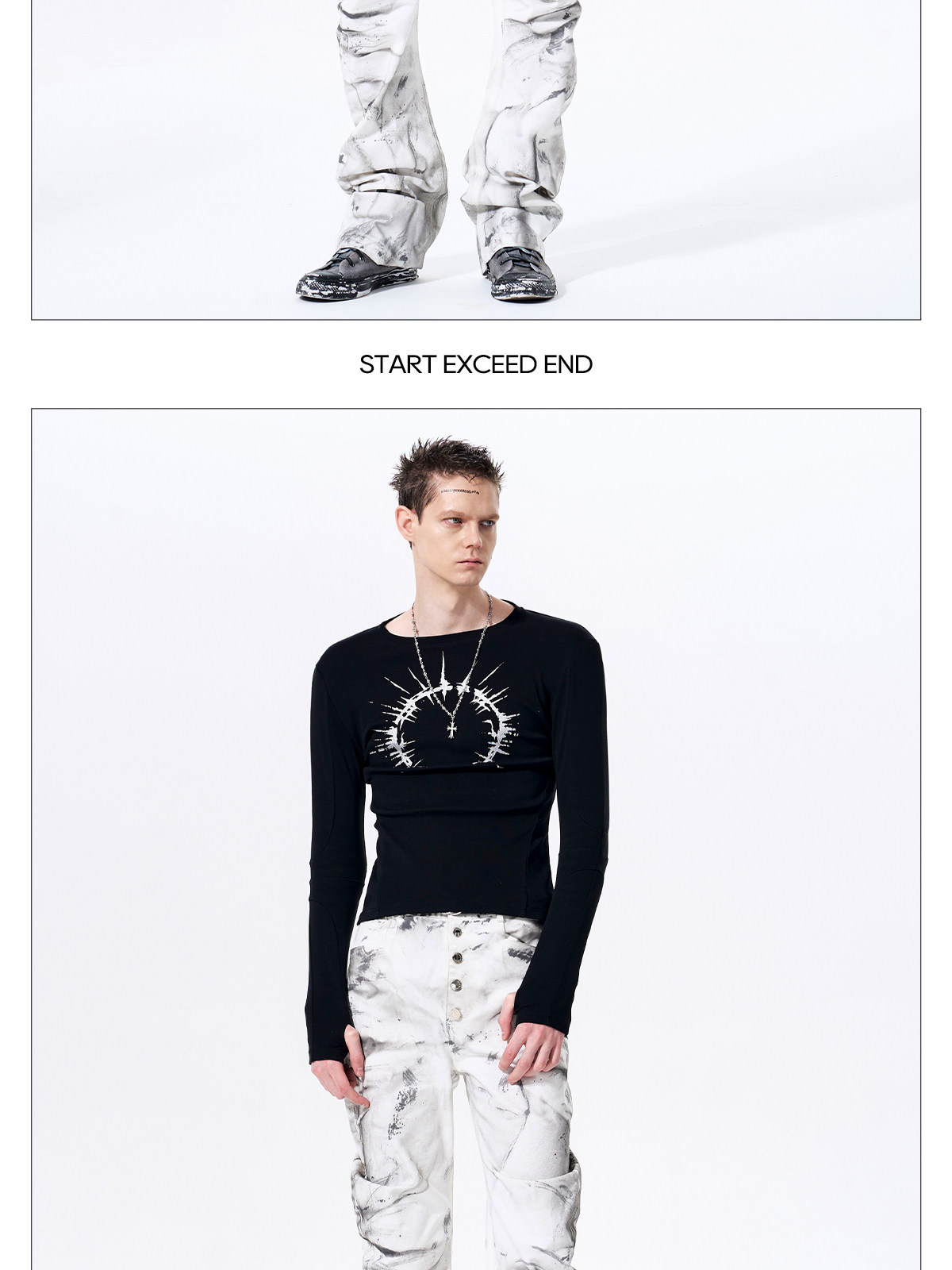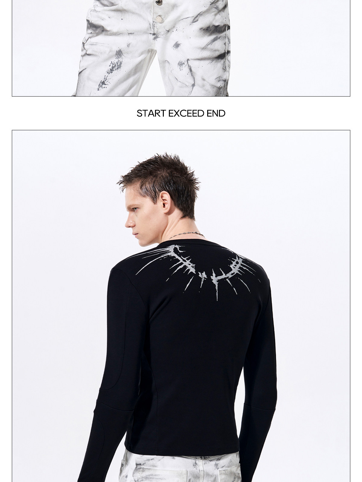 Silver Foil Print Long Sleeve T-Shirt WN23289