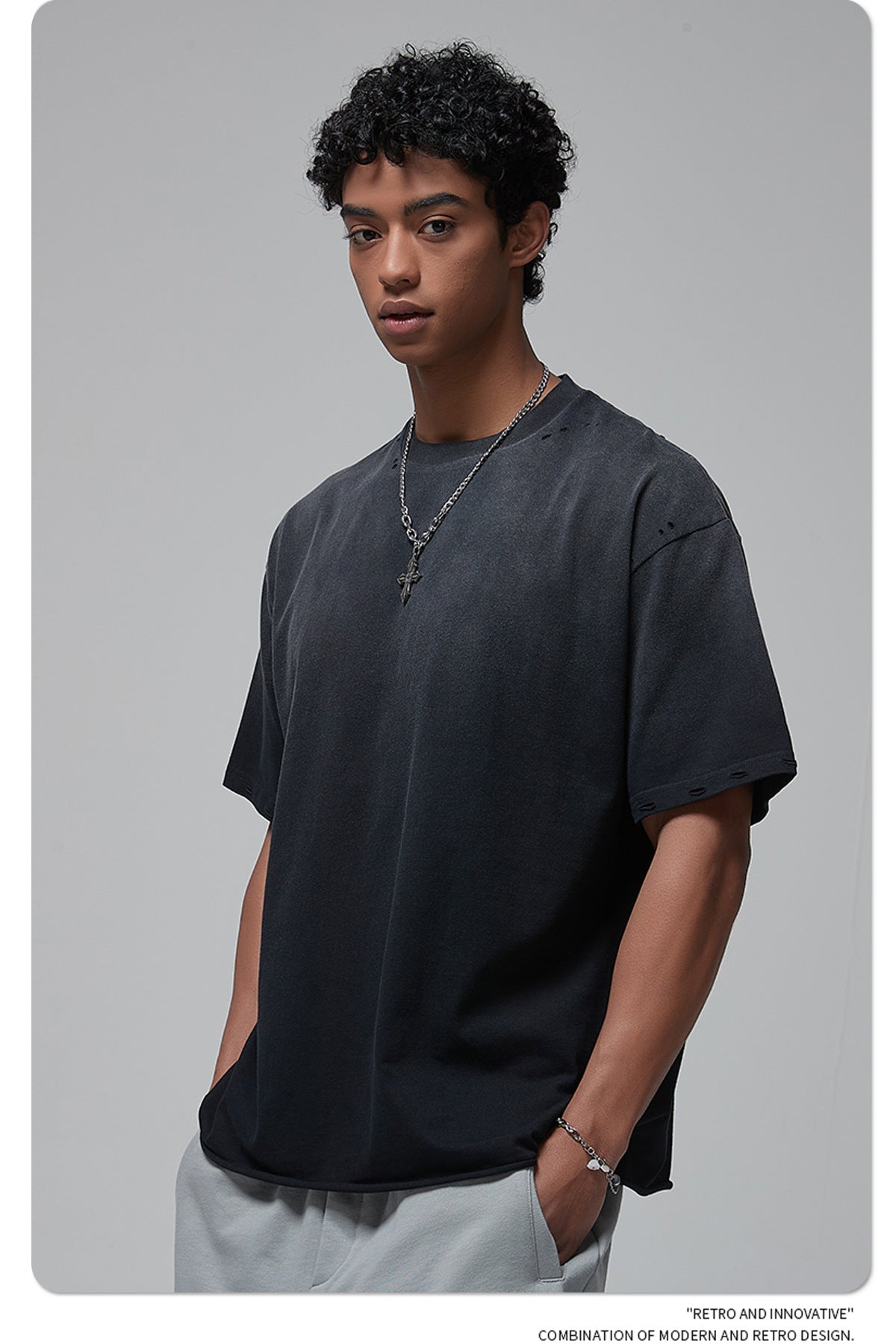 Spray Dyeing Round Neck Short Sleeve T-Shirt WN7806
