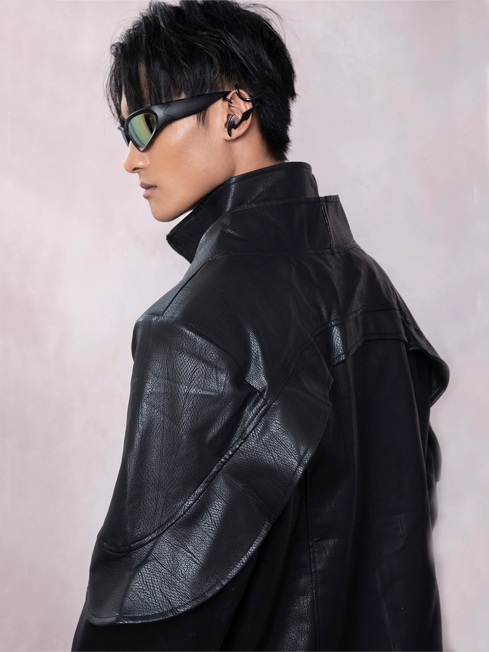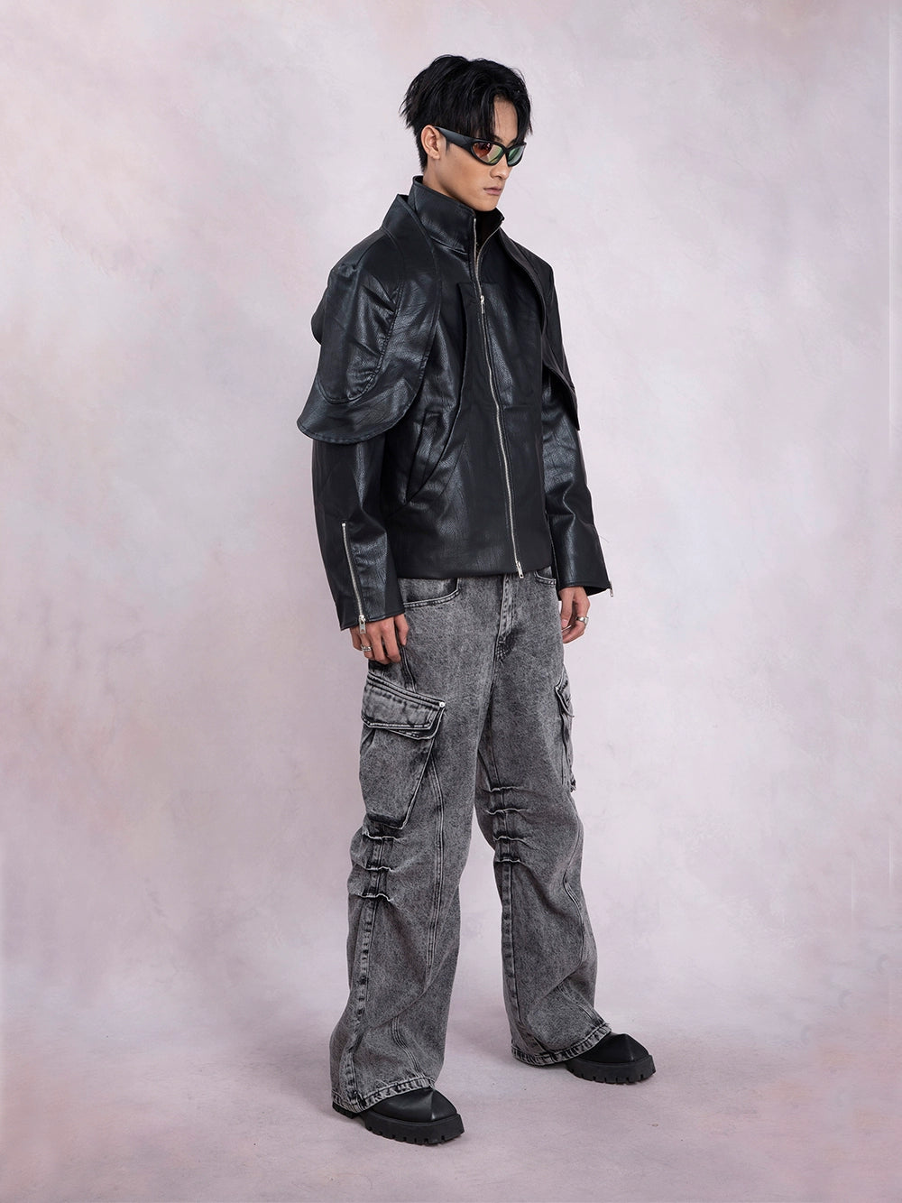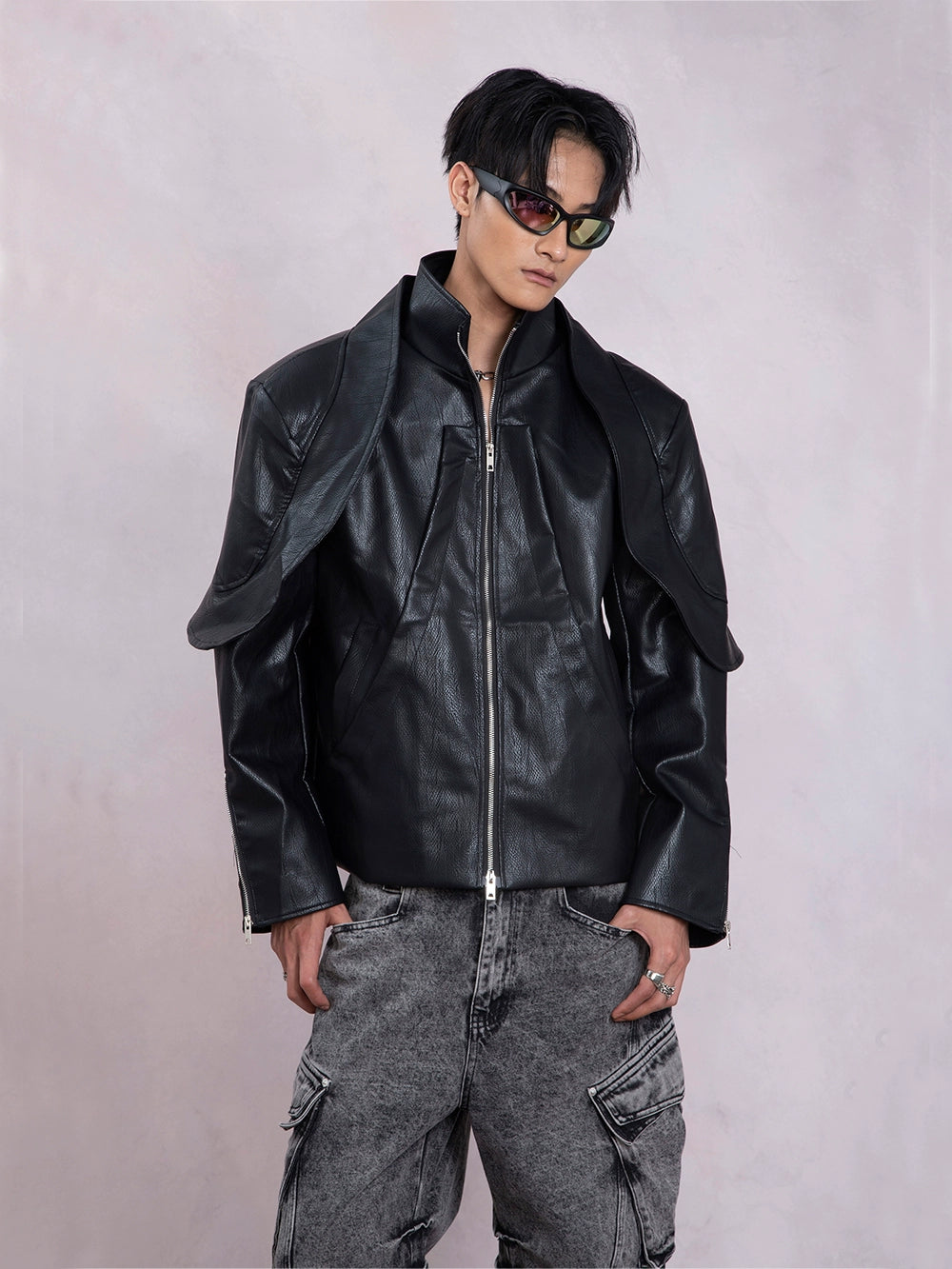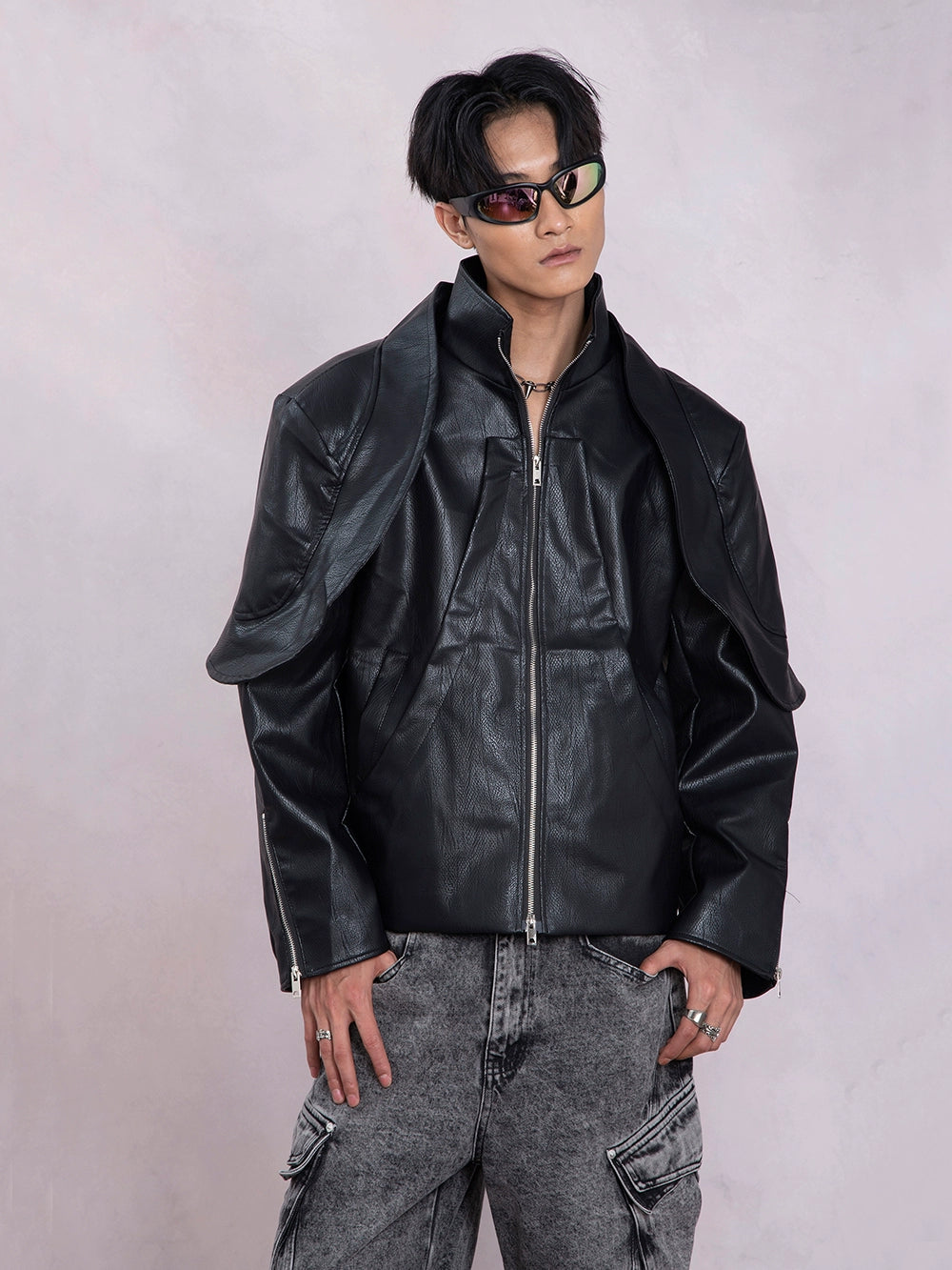 PU Leather Patchwork Fake Layered Short Jacket WN9326