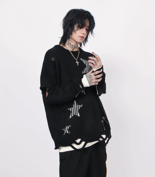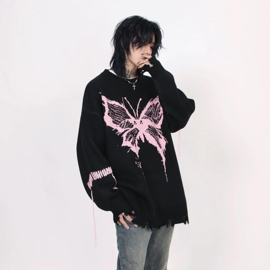 Oversize Damage Butterfly Knit Cardigan WN3569