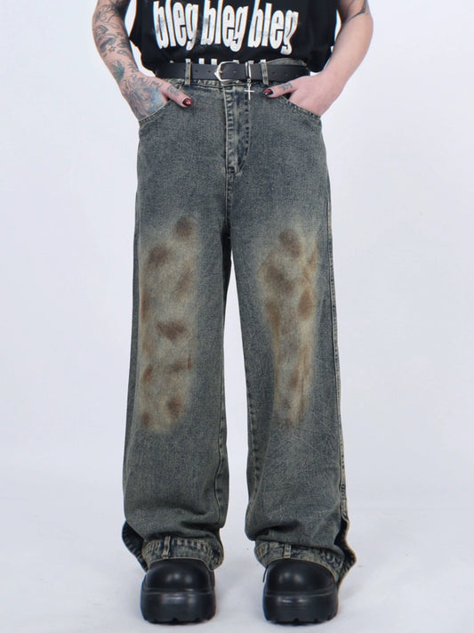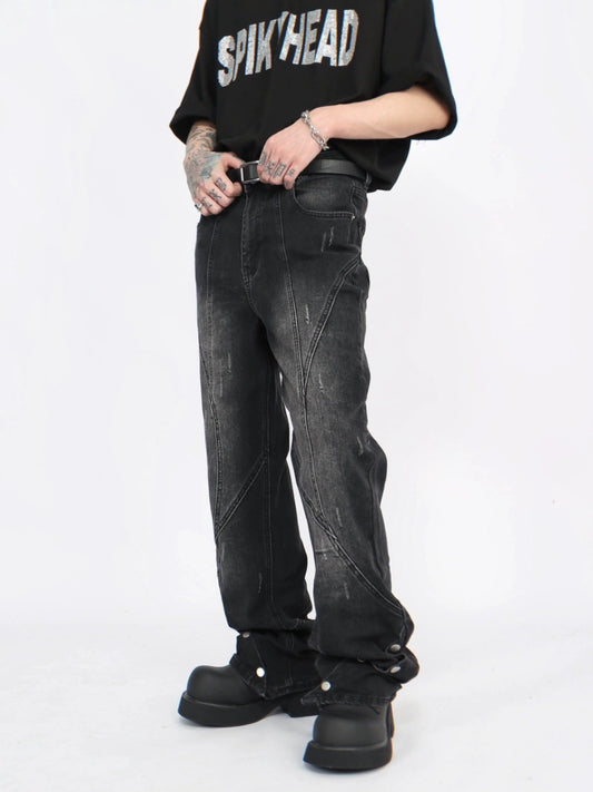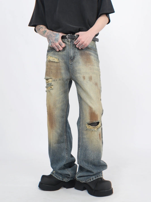 Wash Damaged Straight Denim Jeans WN5244