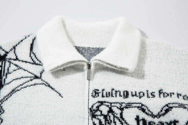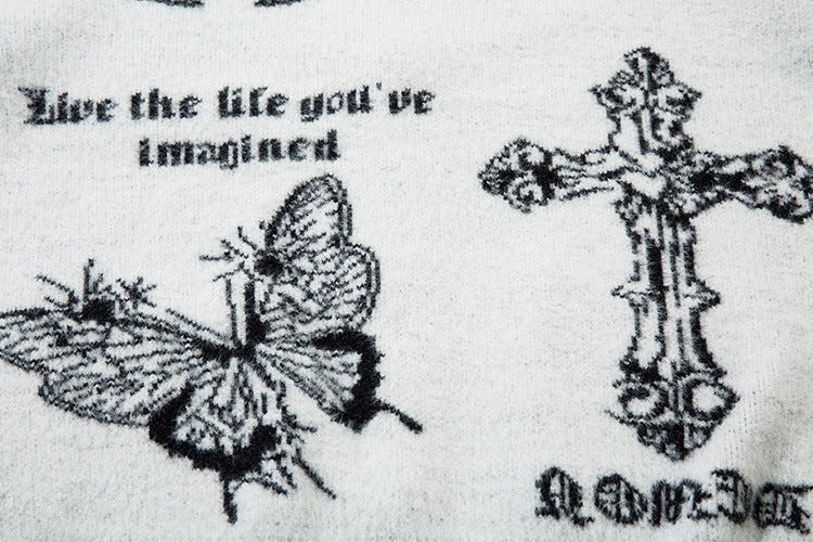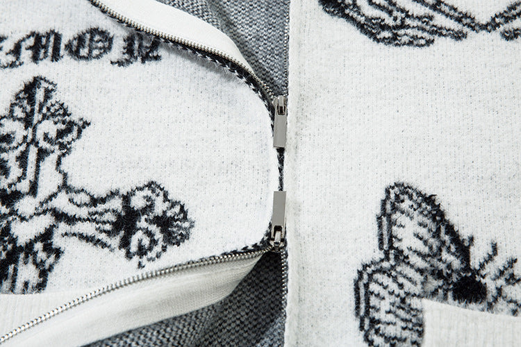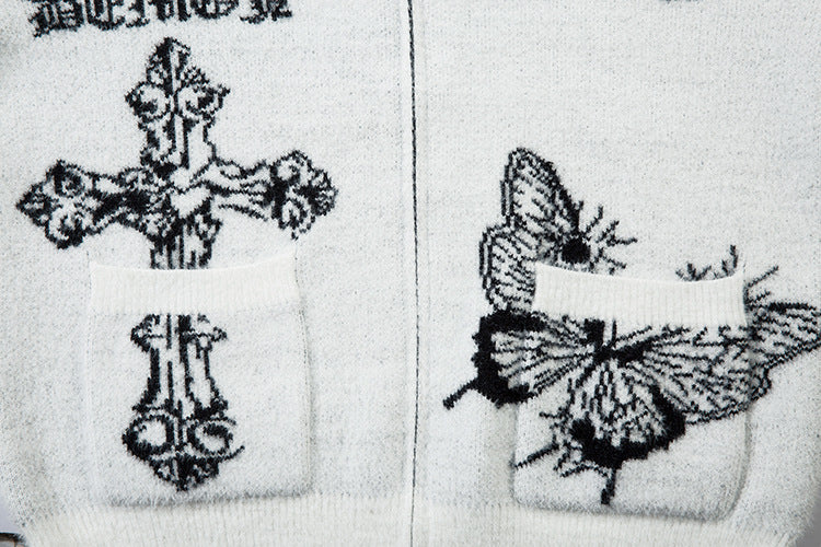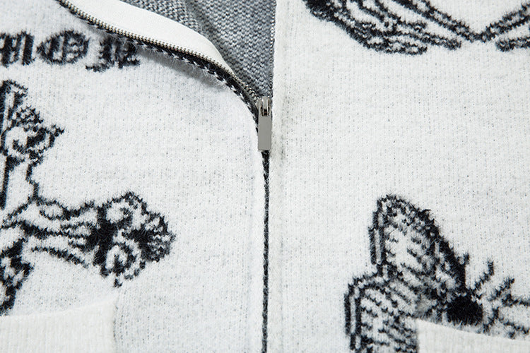 Butterfly Cross Design Oversize Zipper Knit Cardigan WN11170