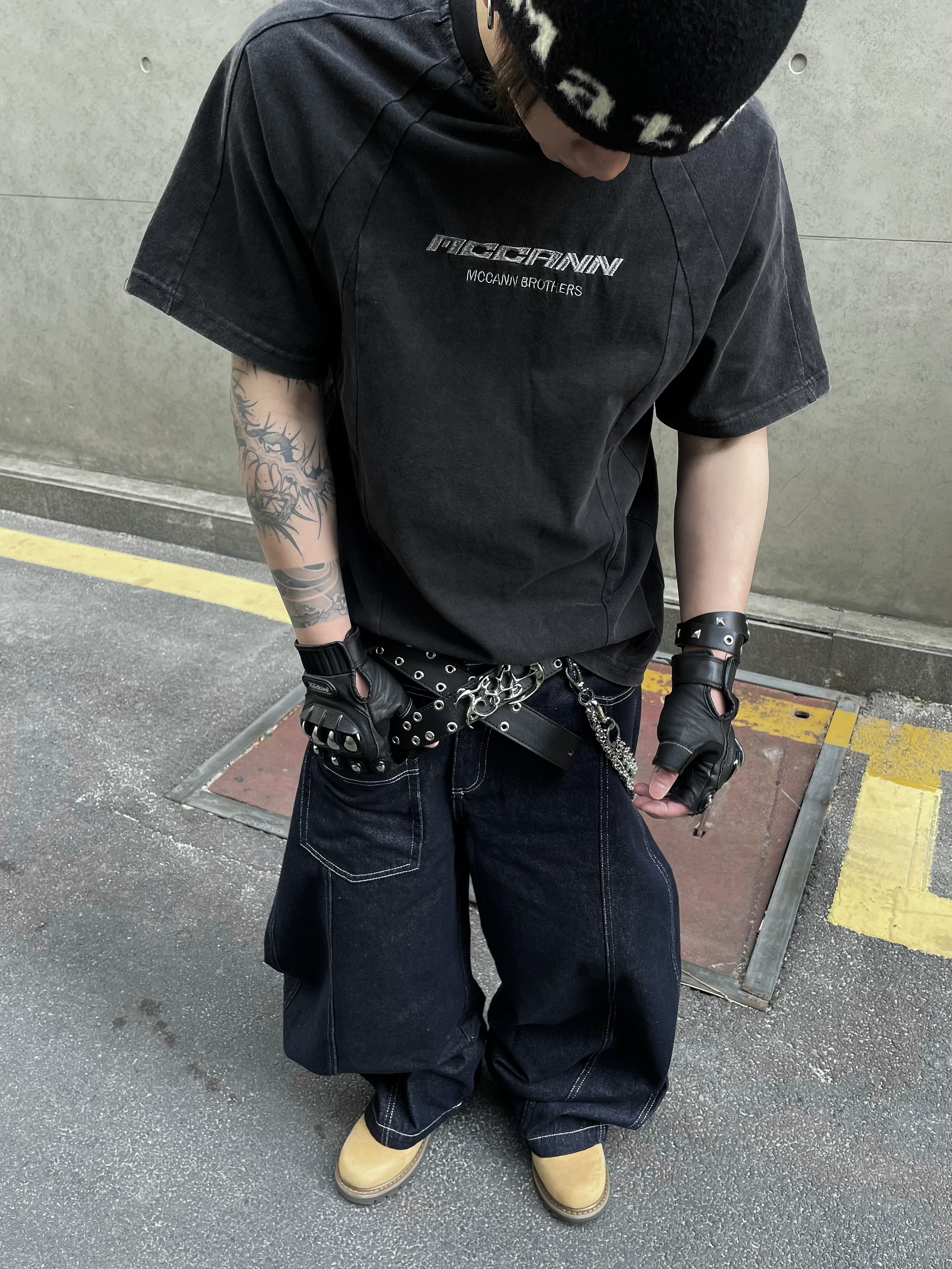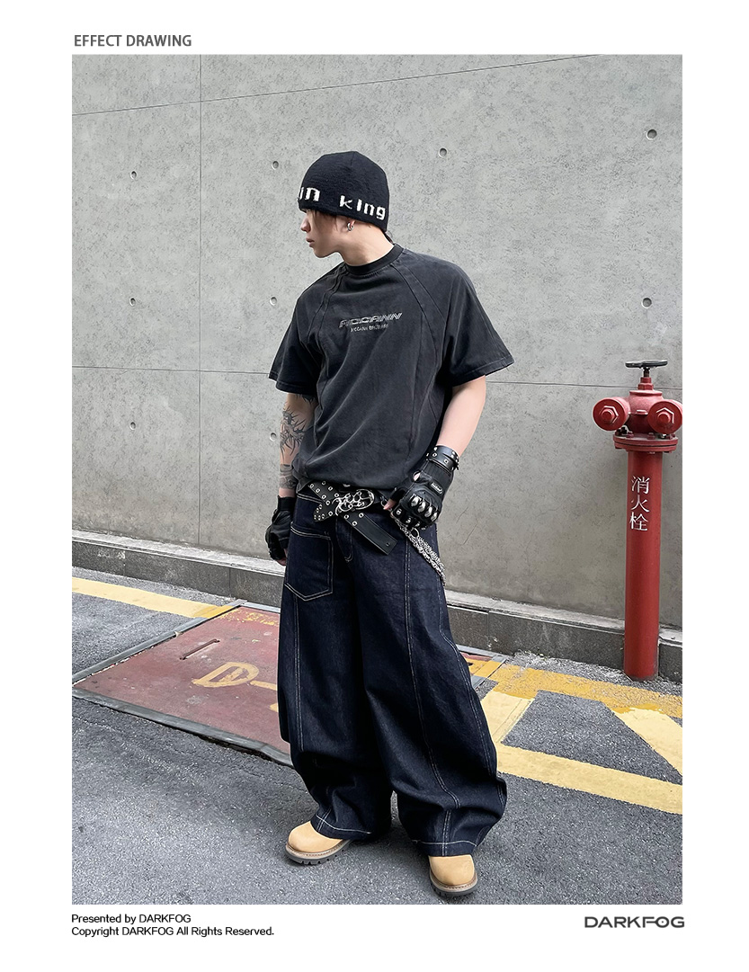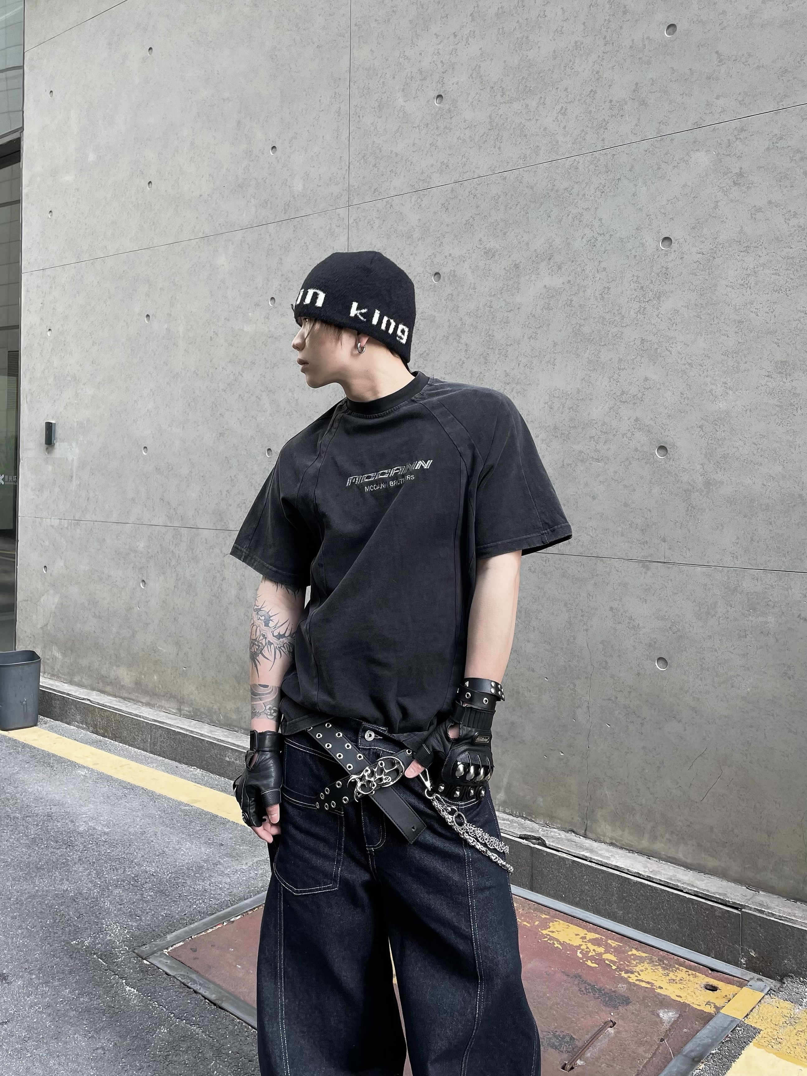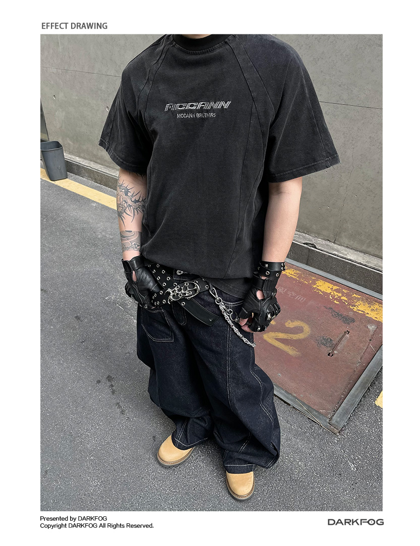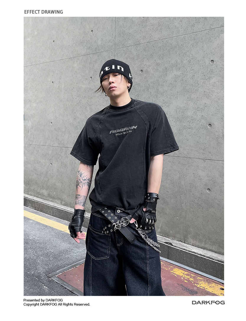Letter Design Washed Oversize Short Sleeve T-Shirt WN14987