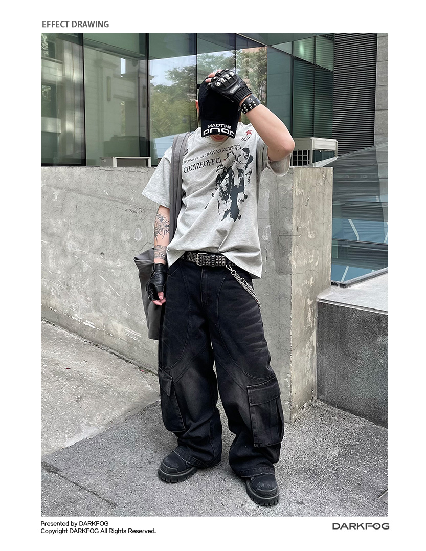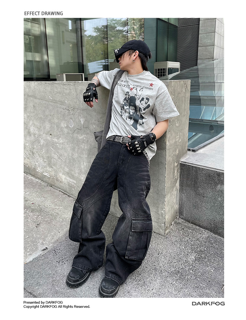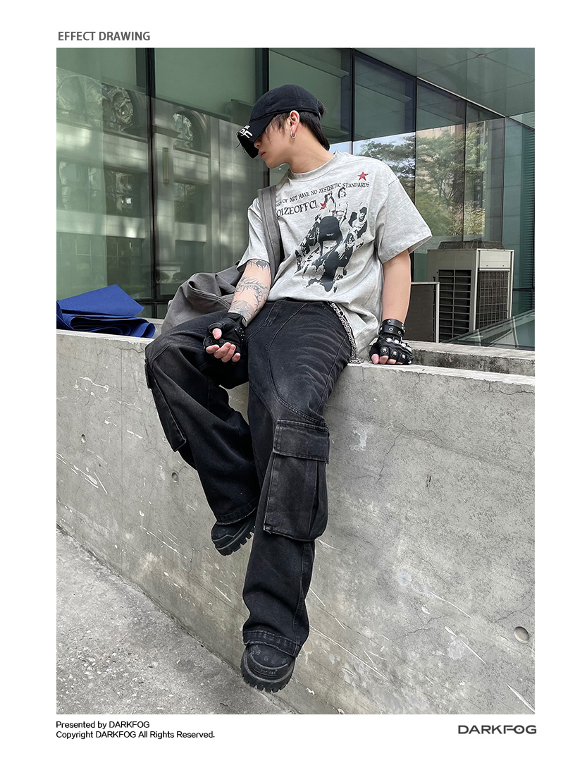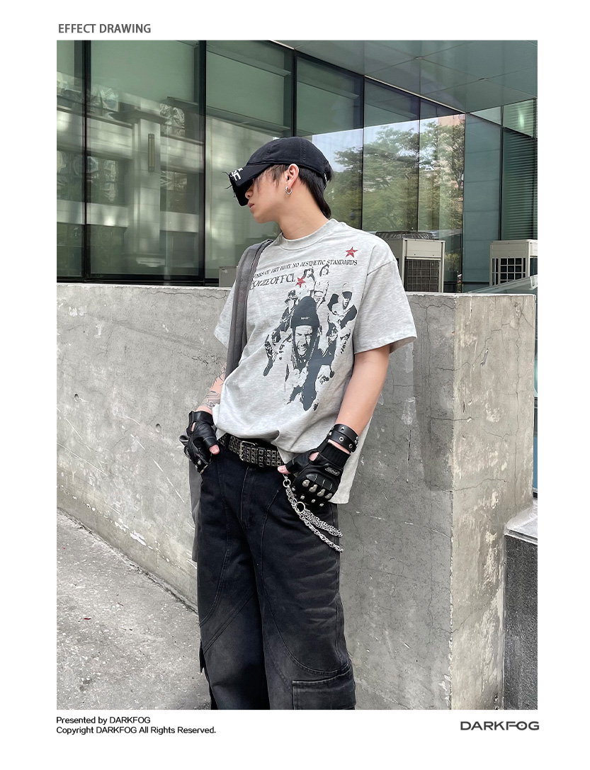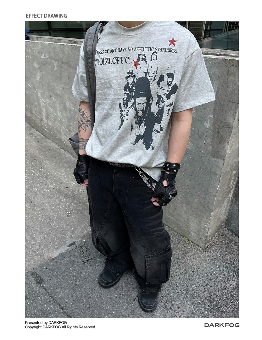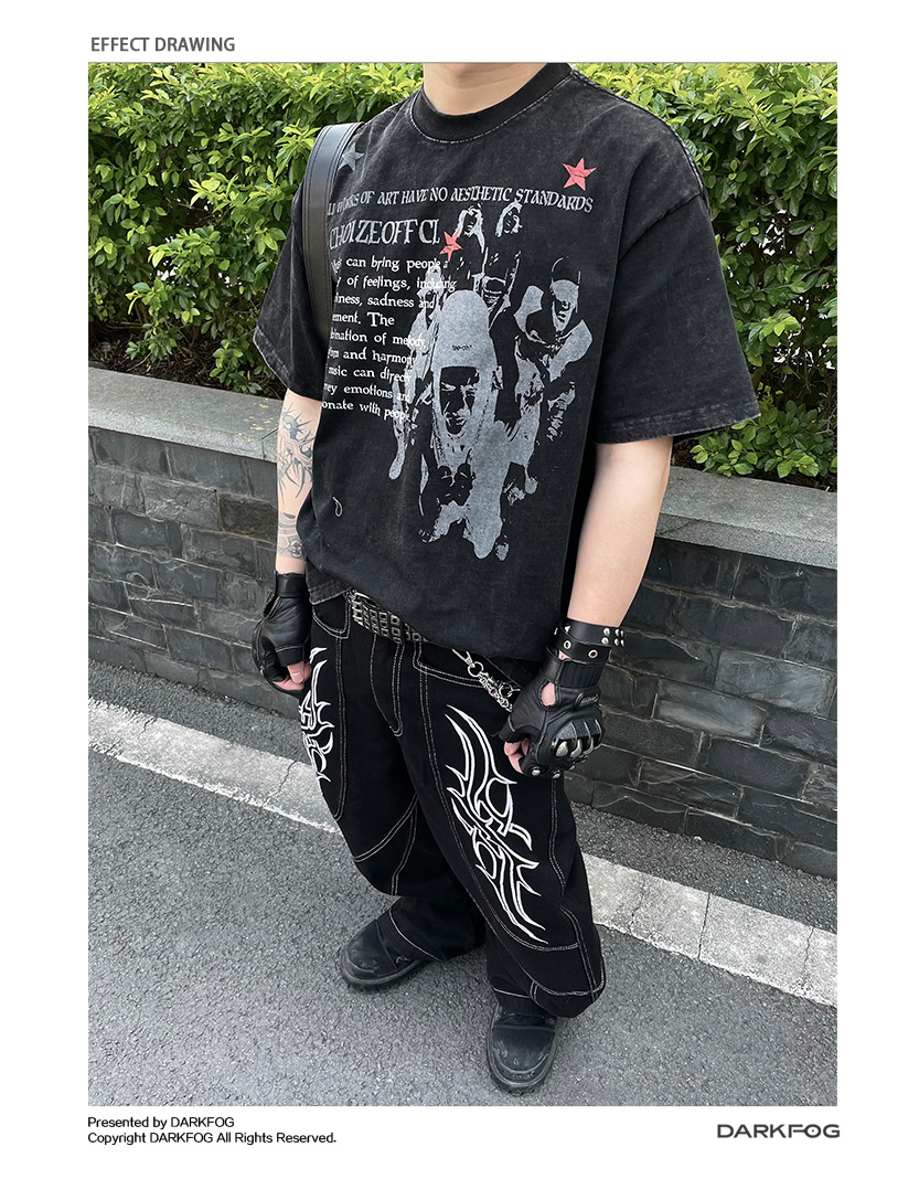 Portrait Letter Print Washed Oversize Short Sleeve T-Shirt WN14990