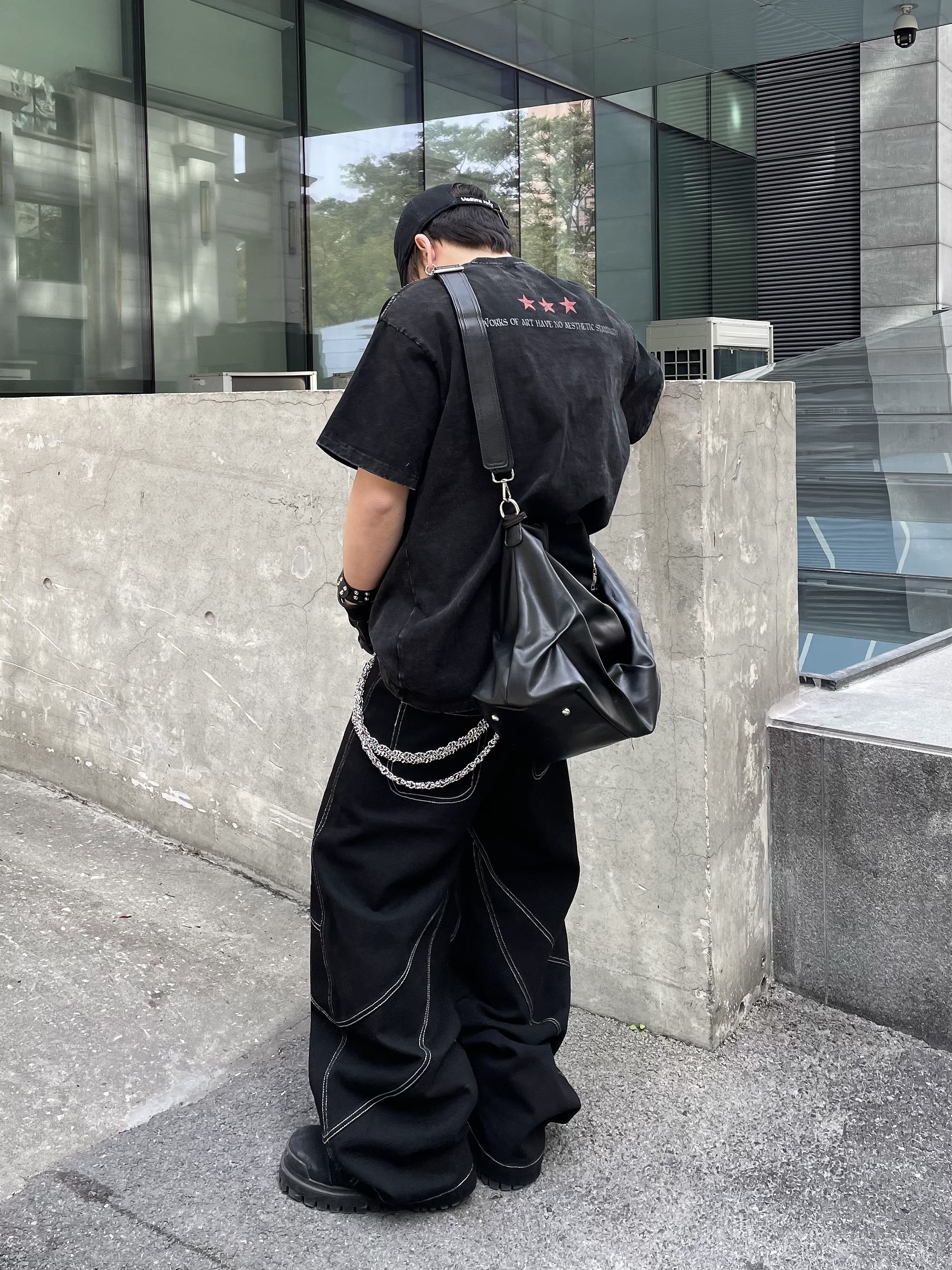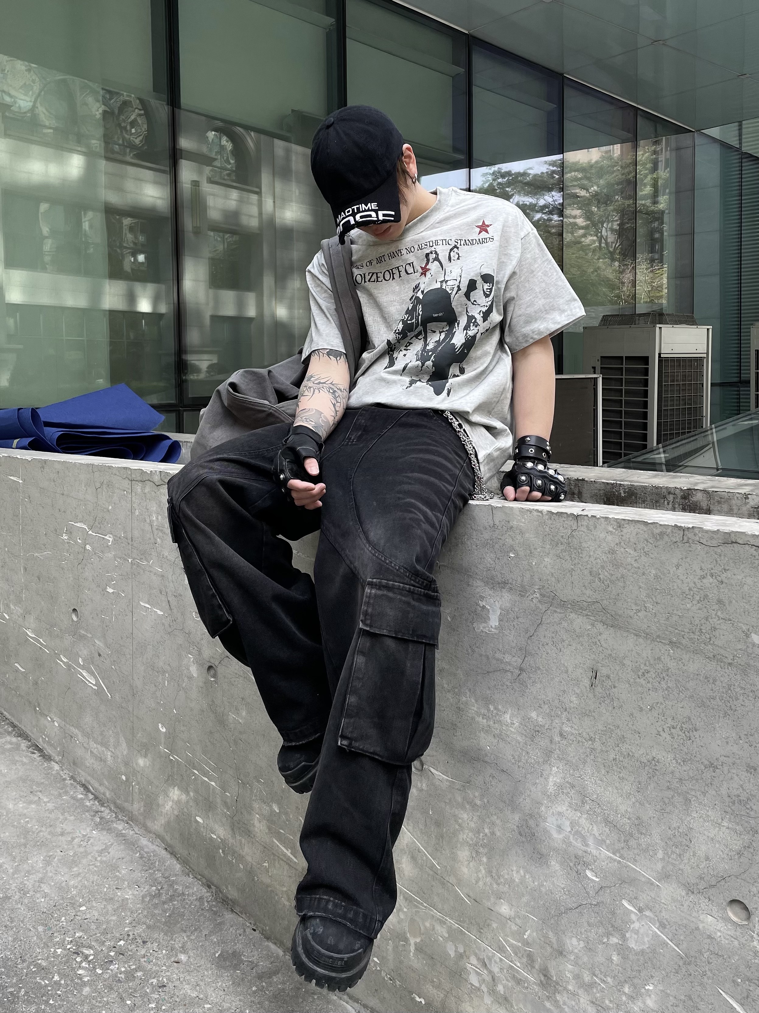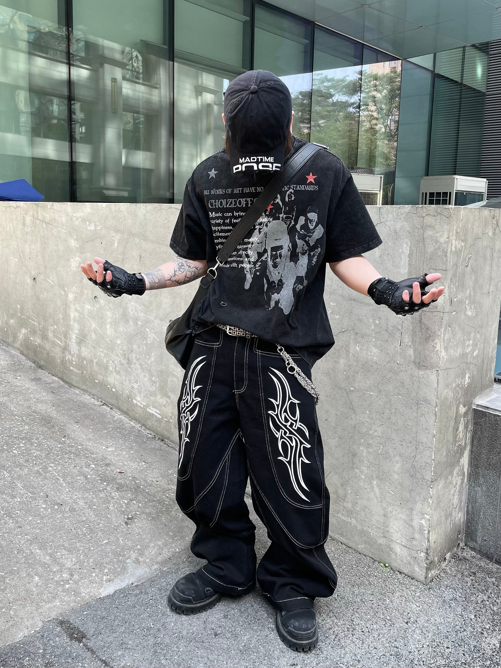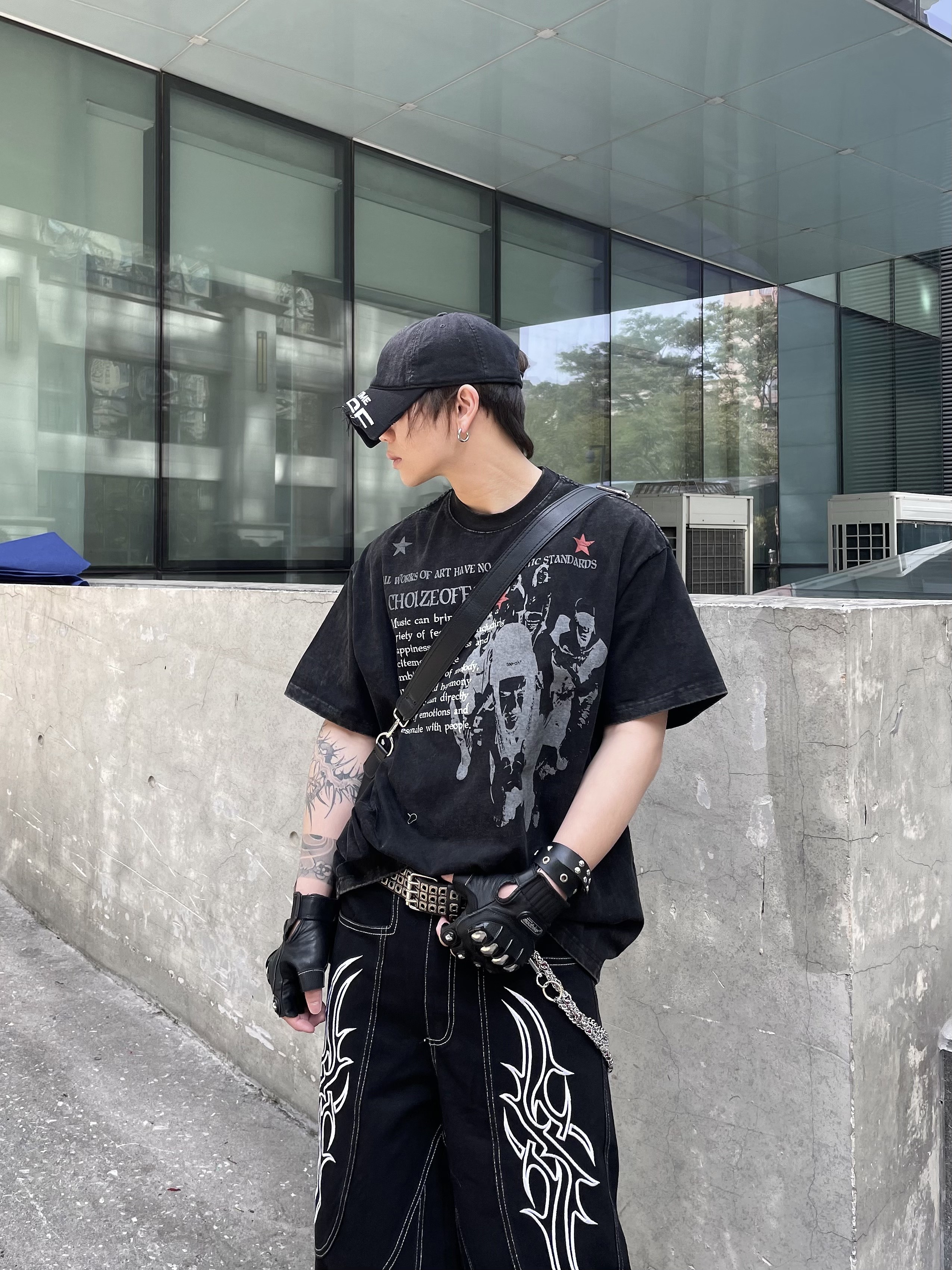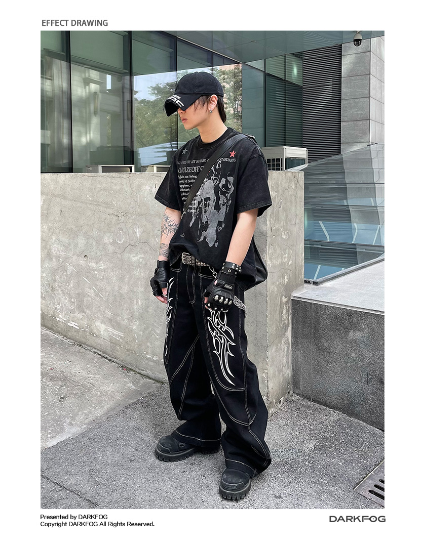 Portrait Letter Print Washed Oversize Short Sleeve T-Shirt WN14990