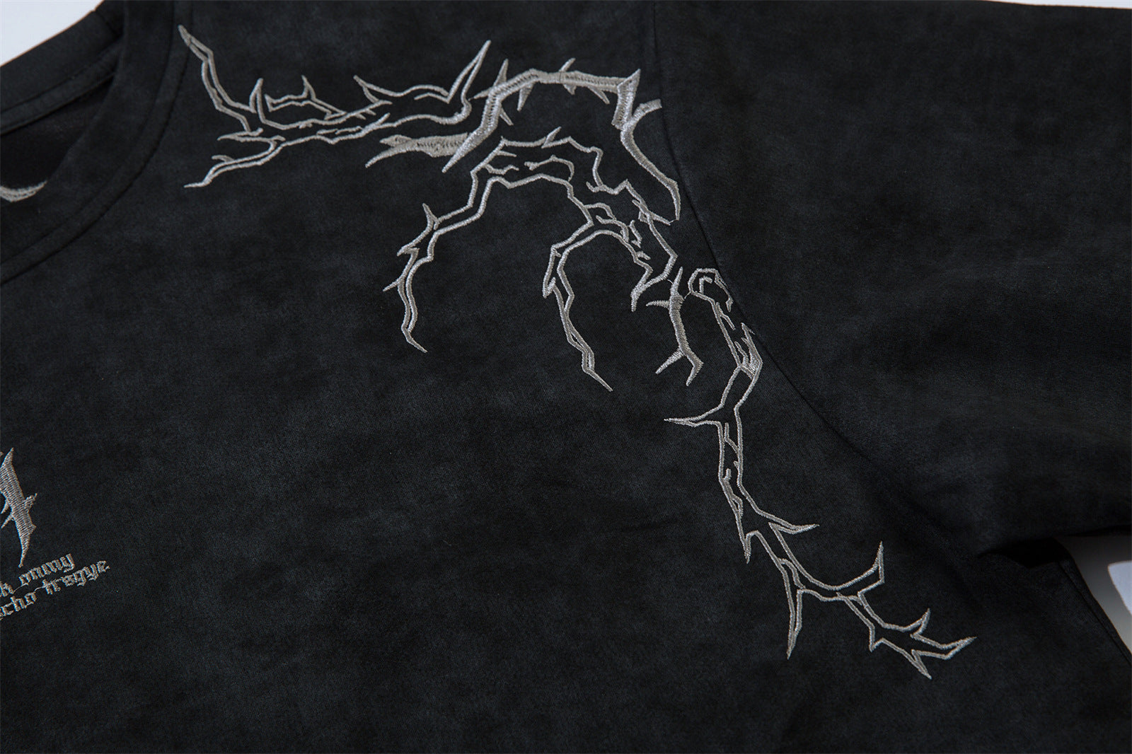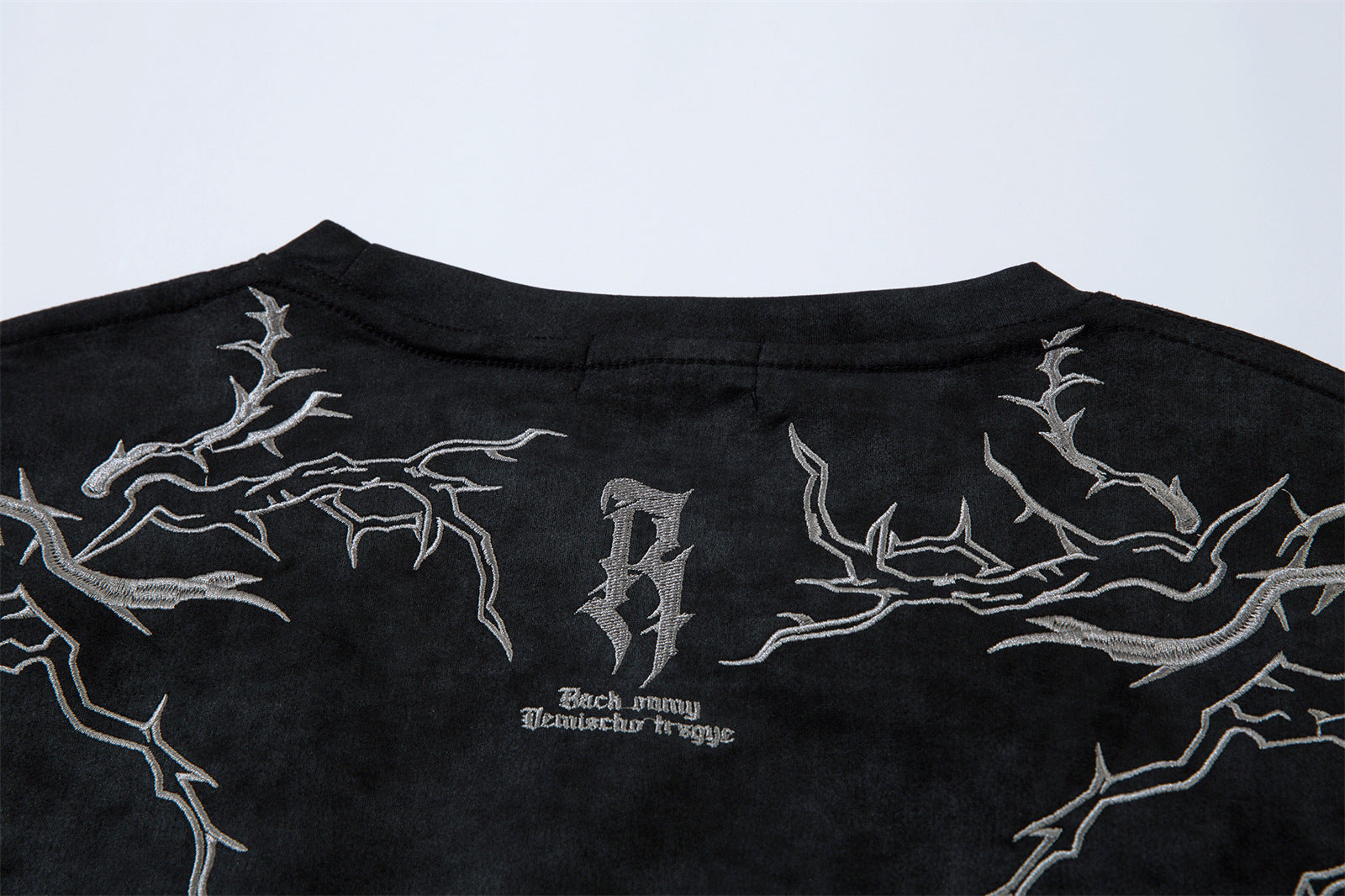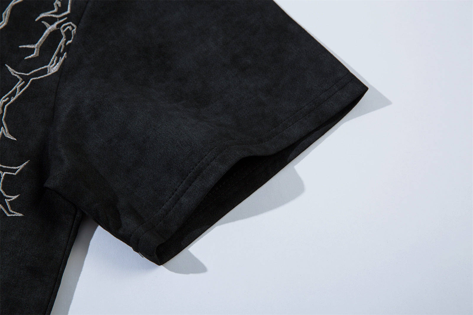 Embroidery Suede Design Oversize Short Sleeve T-Shirt WN15080