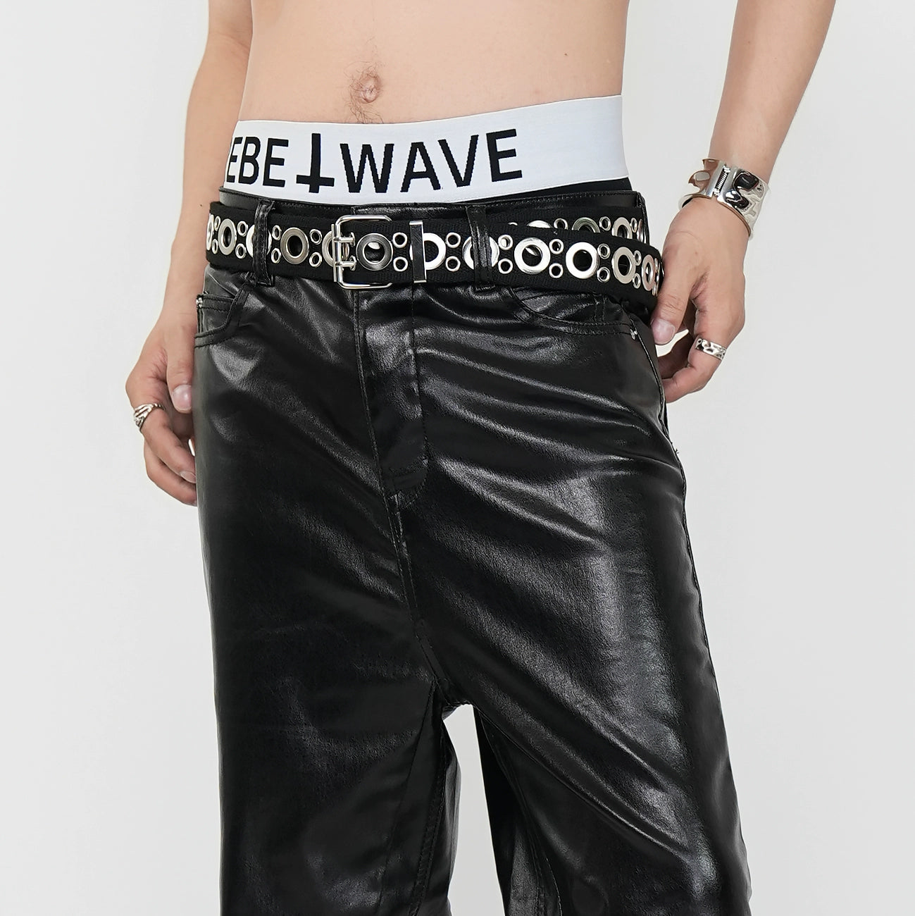 Double Stitch Metal Eyelet Canvas PU Leather Belt WN17331