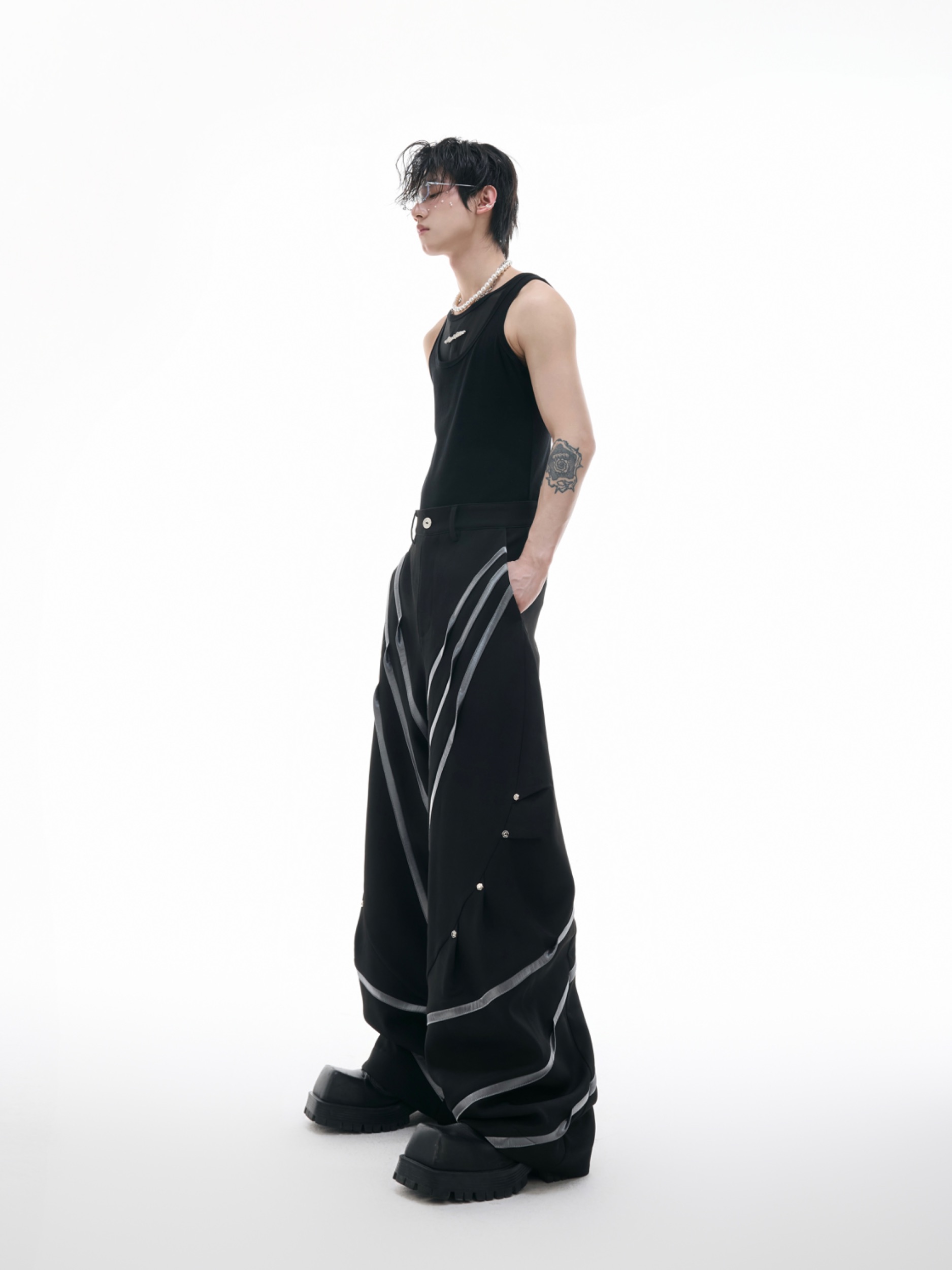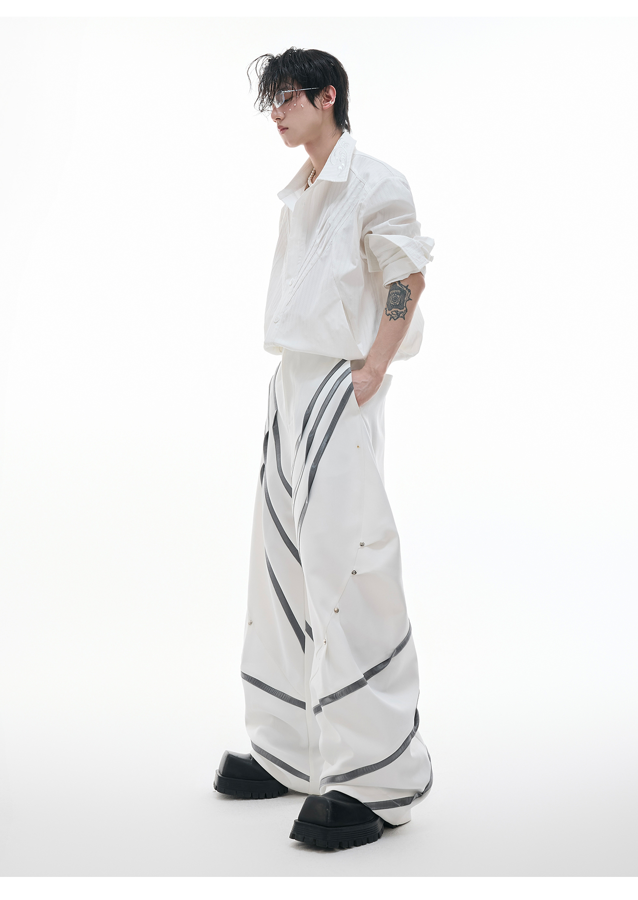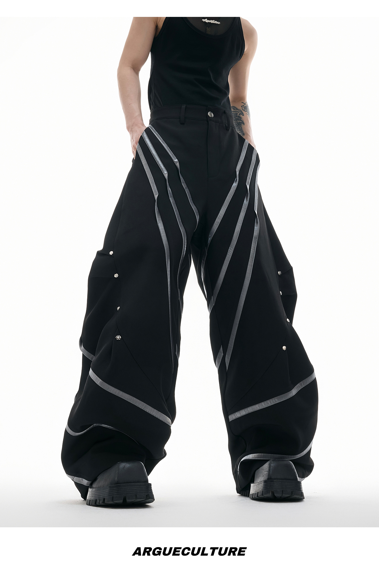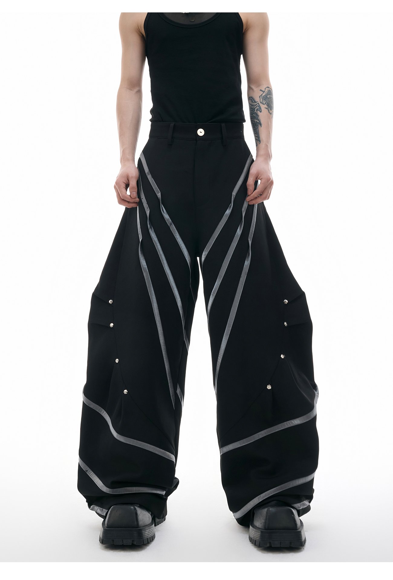 Three-Dimensional Cut Metal Stripe Stud Pleats Trousers WN18336