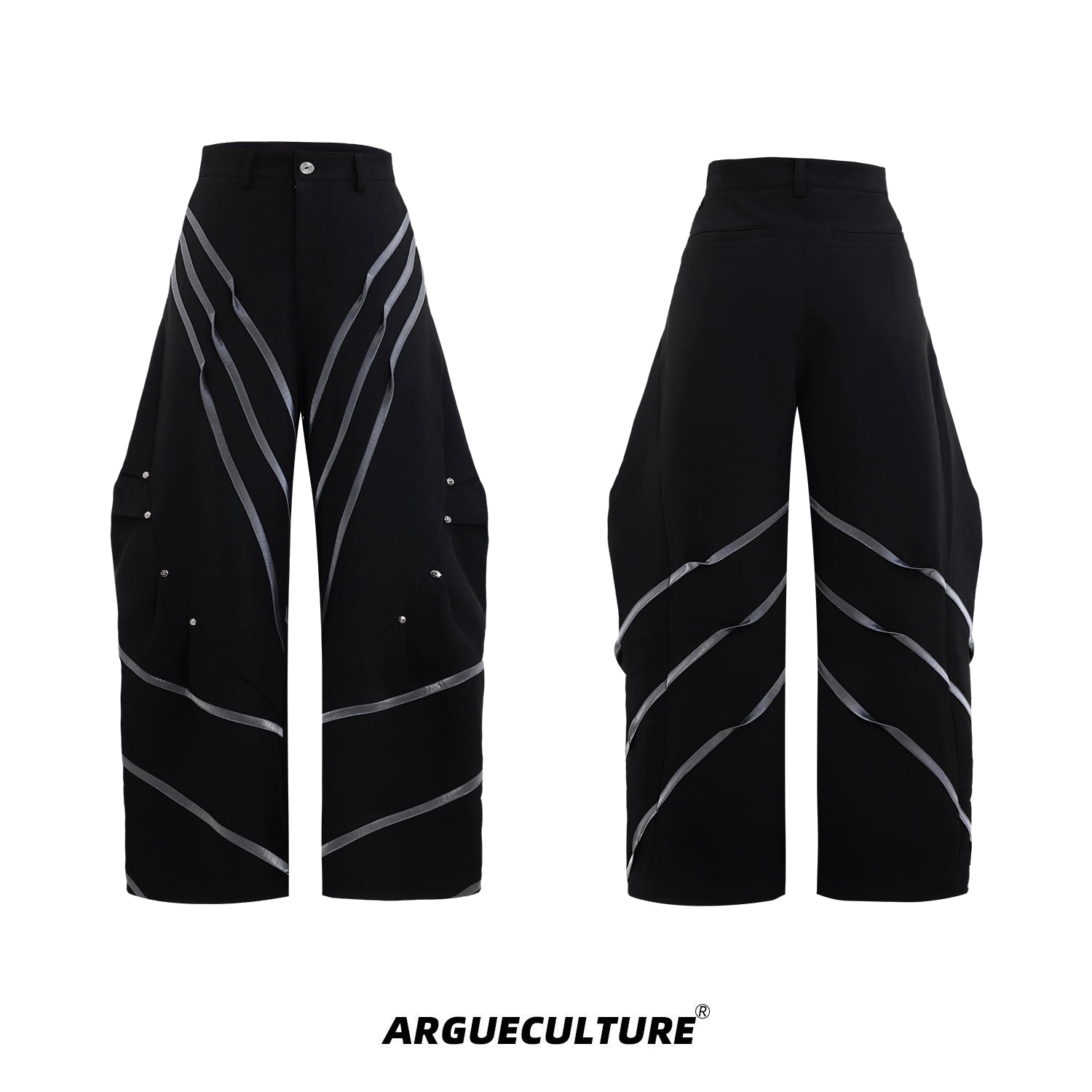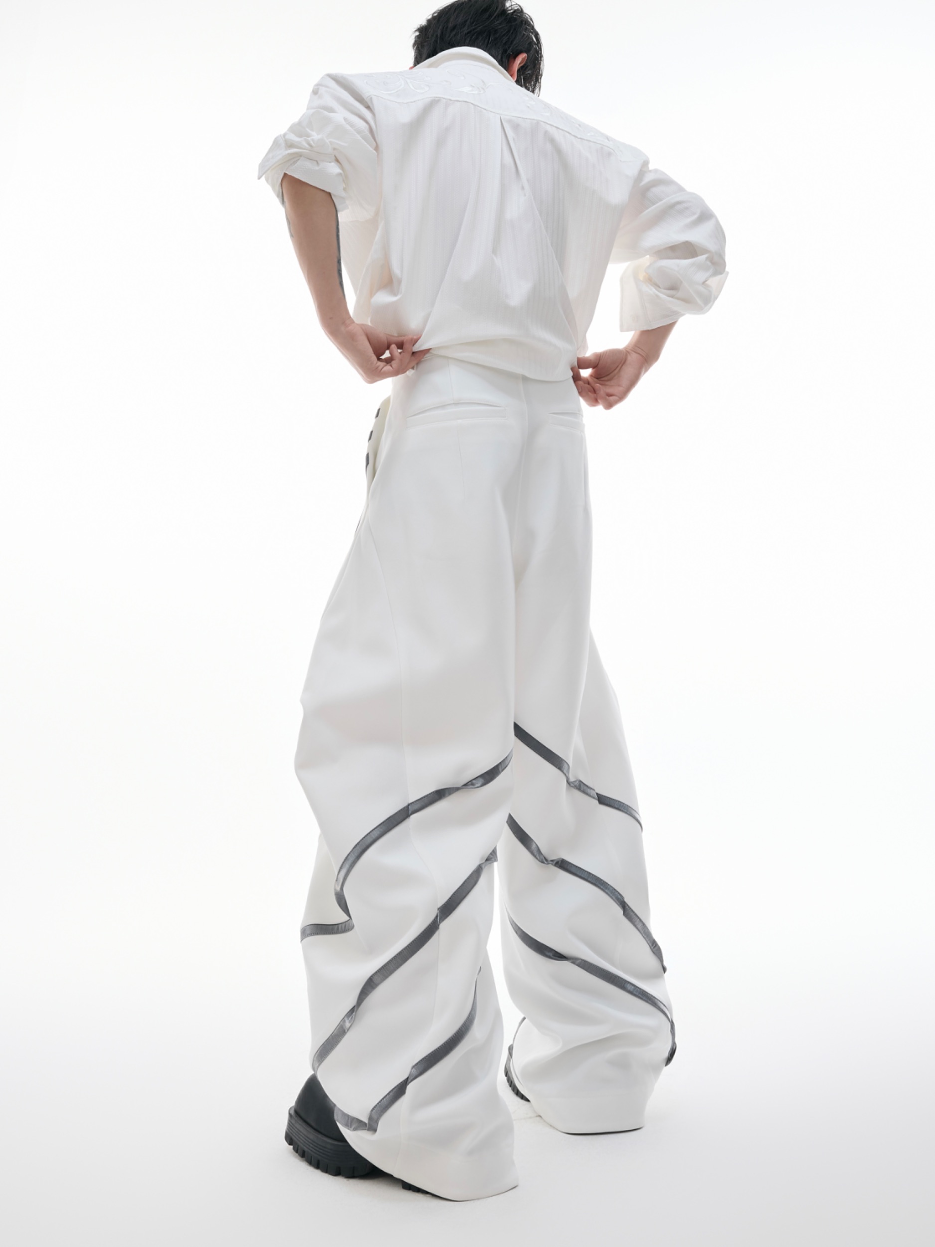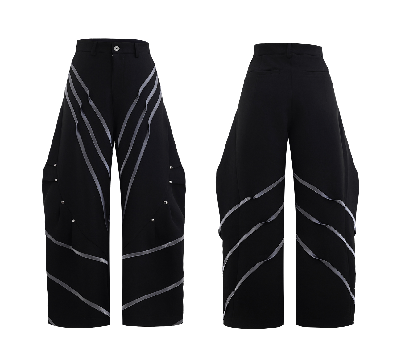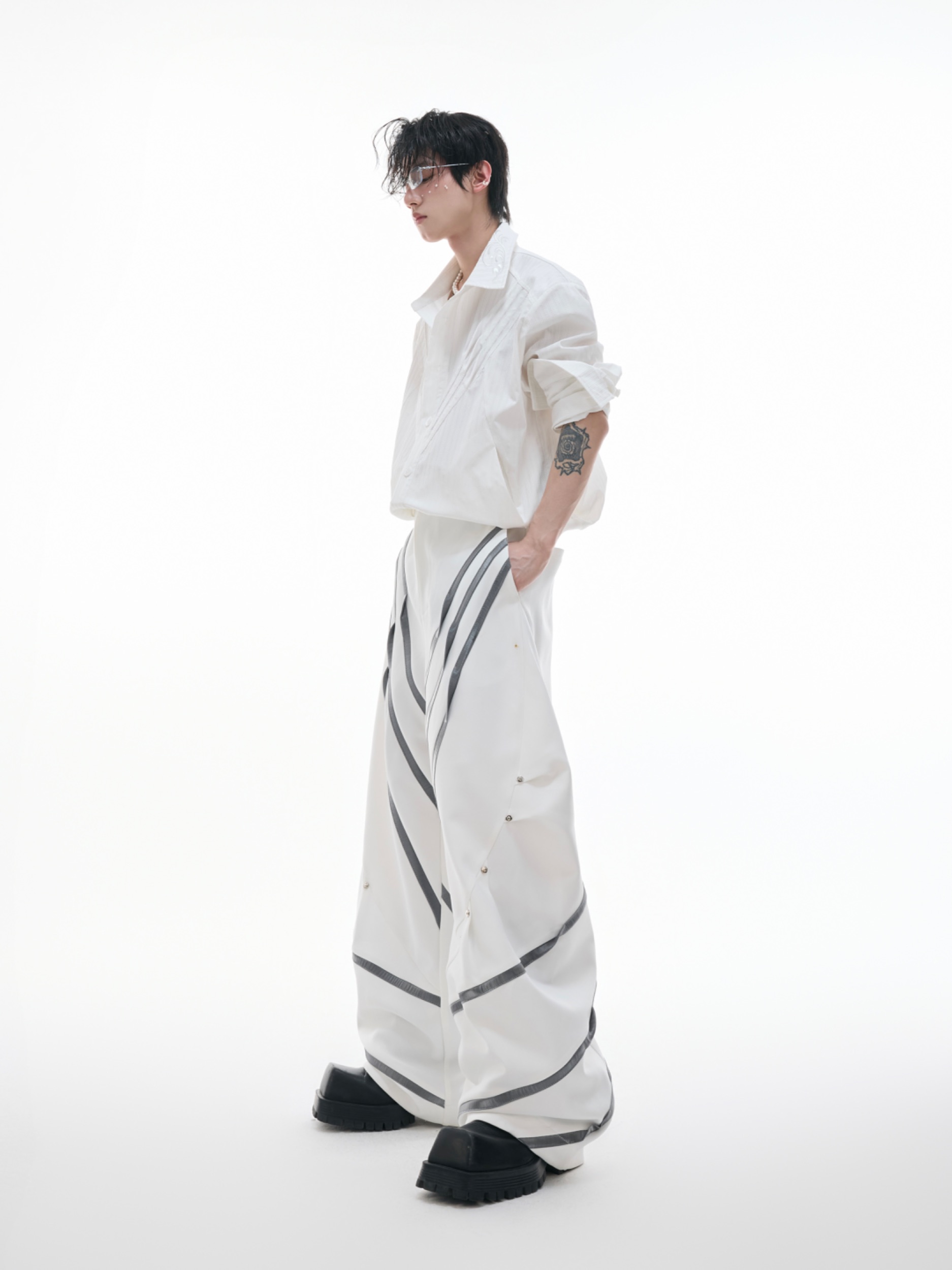 Three-Dimensional Cut Metal Stripe Stud Pleats Trousers WN18336