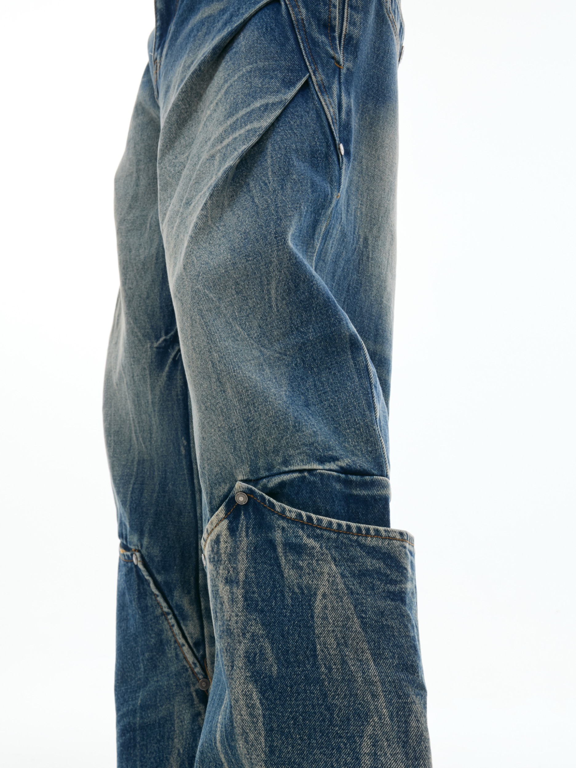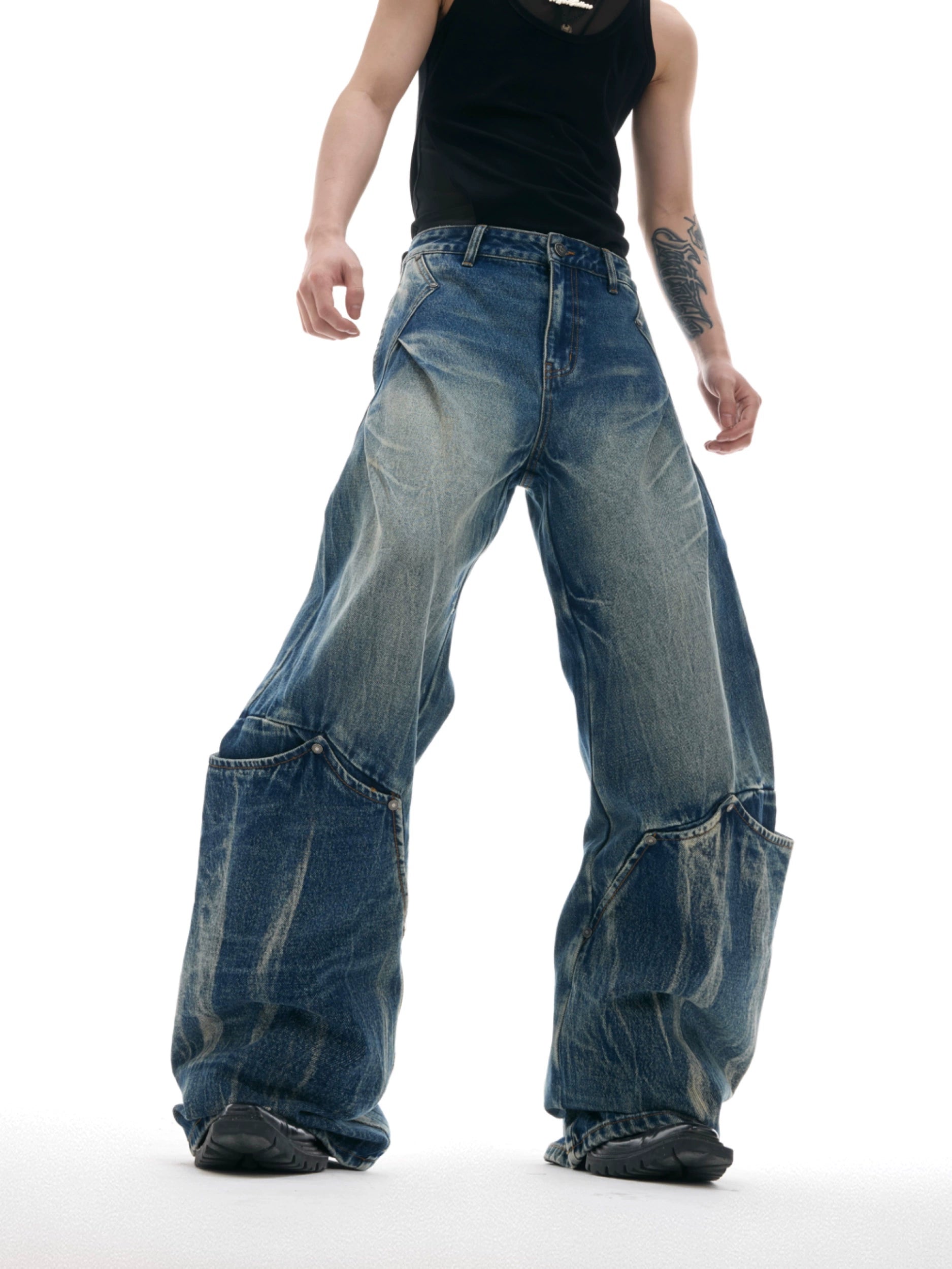 Heavy Wash Crack Patchwork Design Wide Leg Denim Jeans WN18409