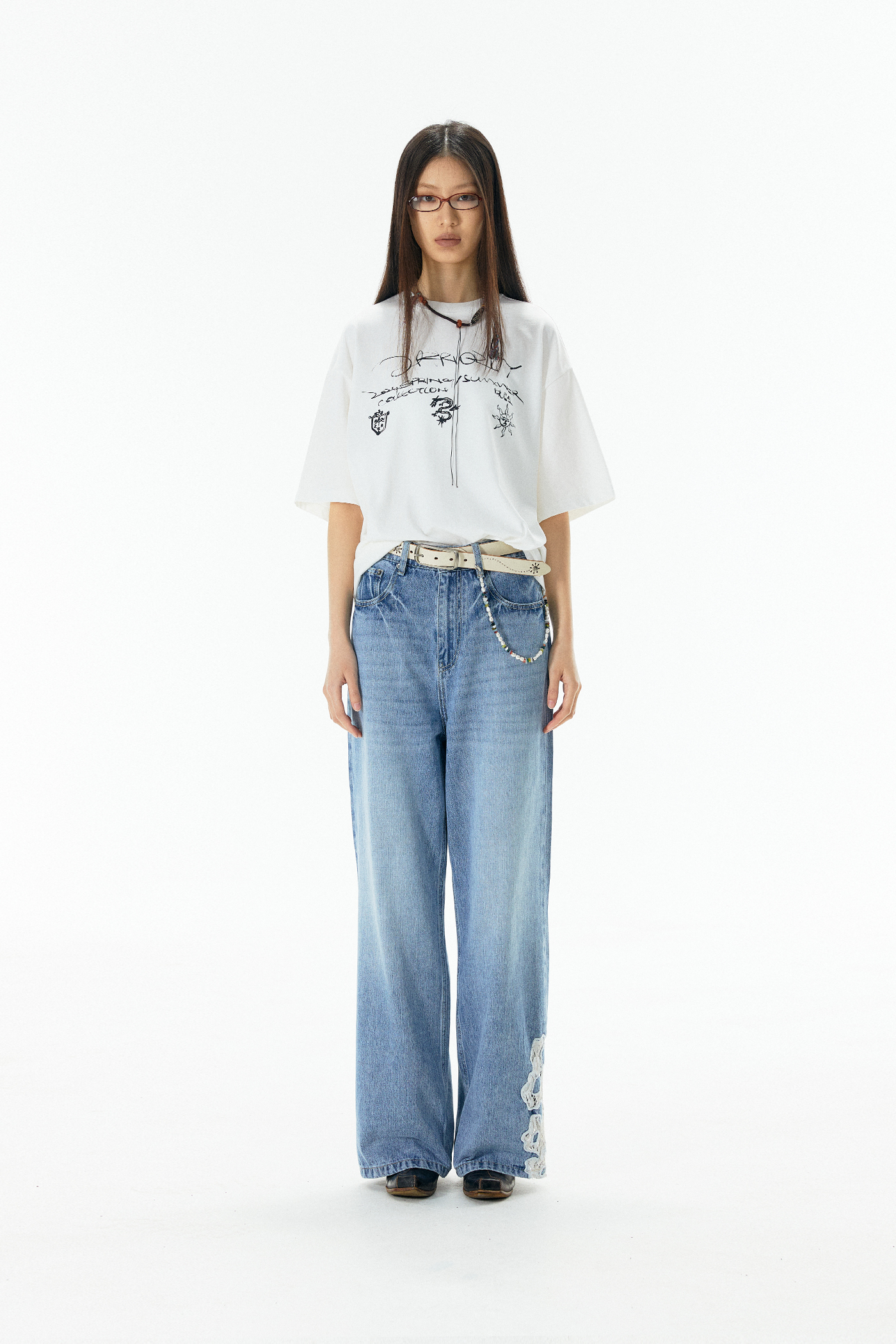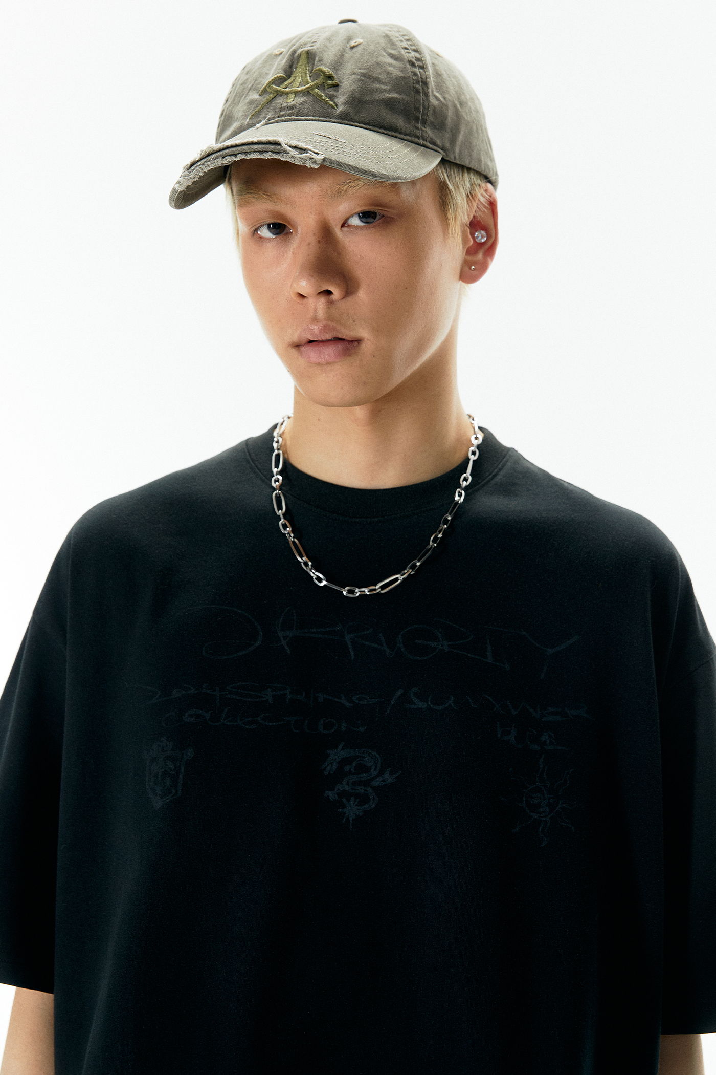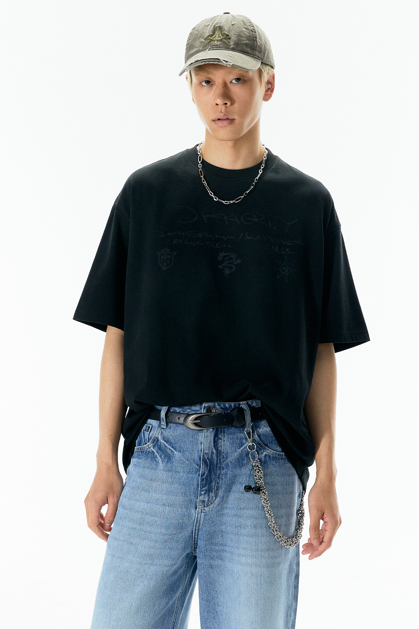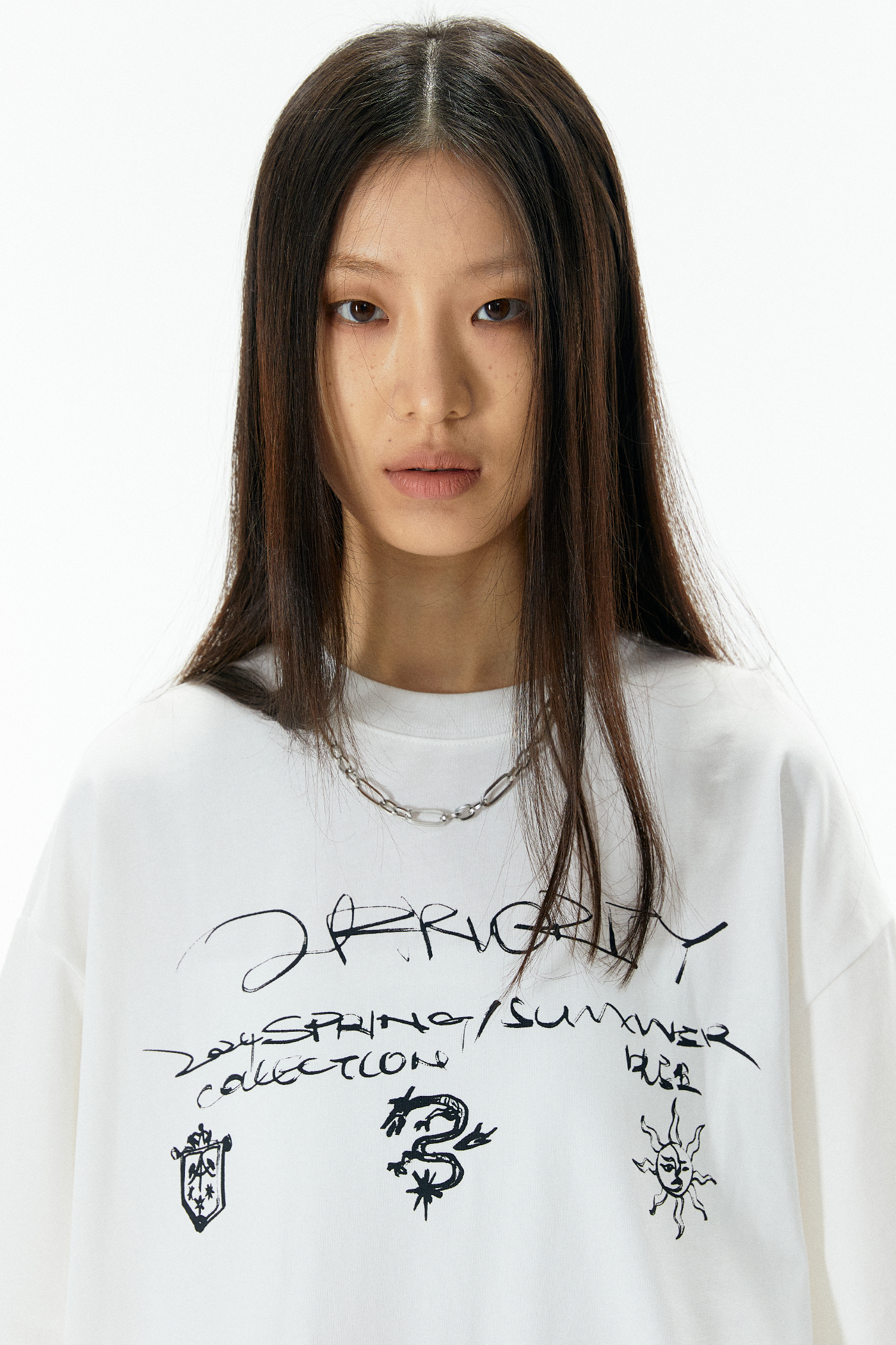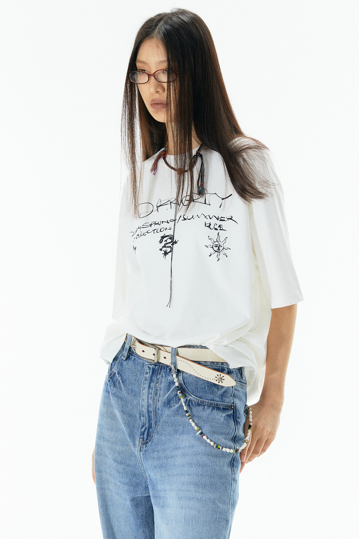 Hand-Drawn Print Oversize Short Sleeve T-Shirt WN18918