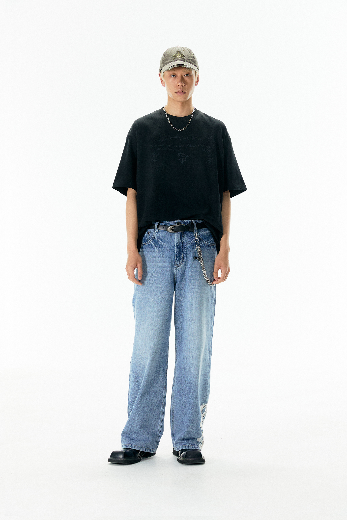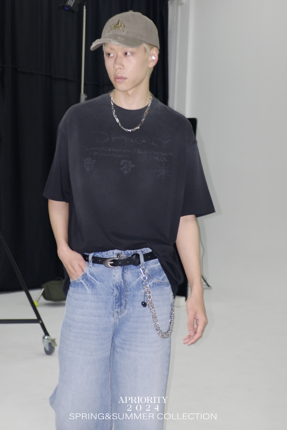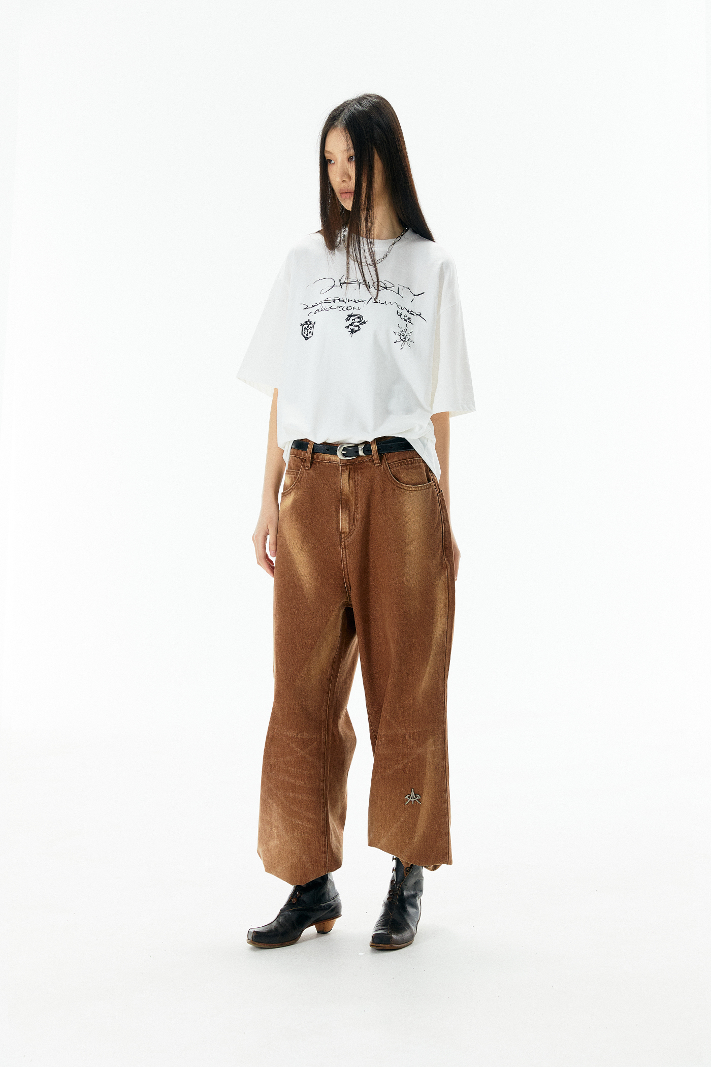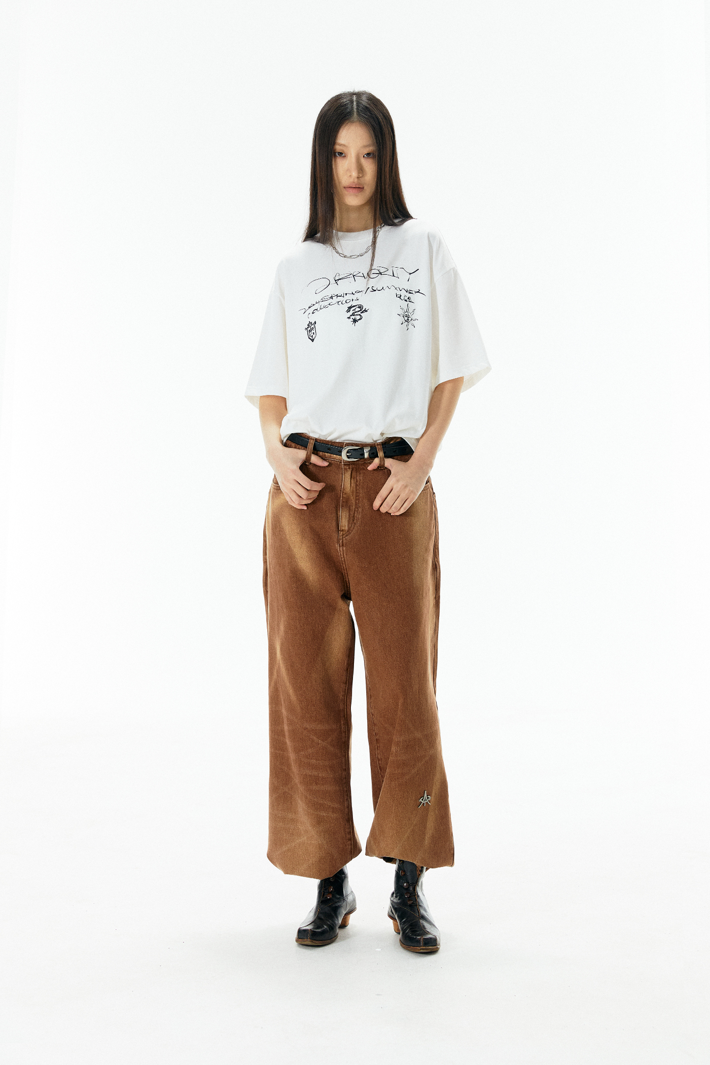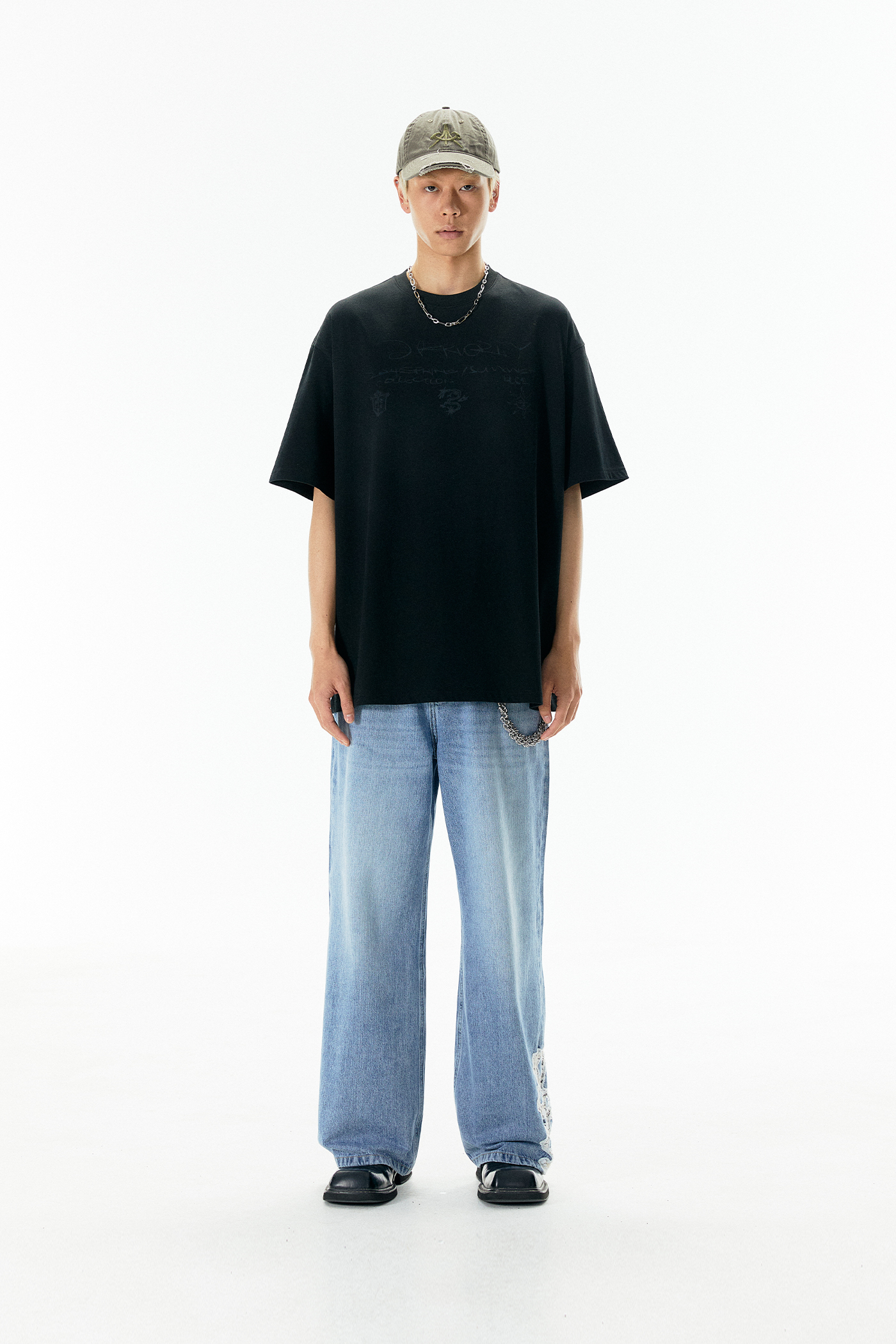 Hand-Drawn Print Oversize Short Sleeve T-Shirt WN18918