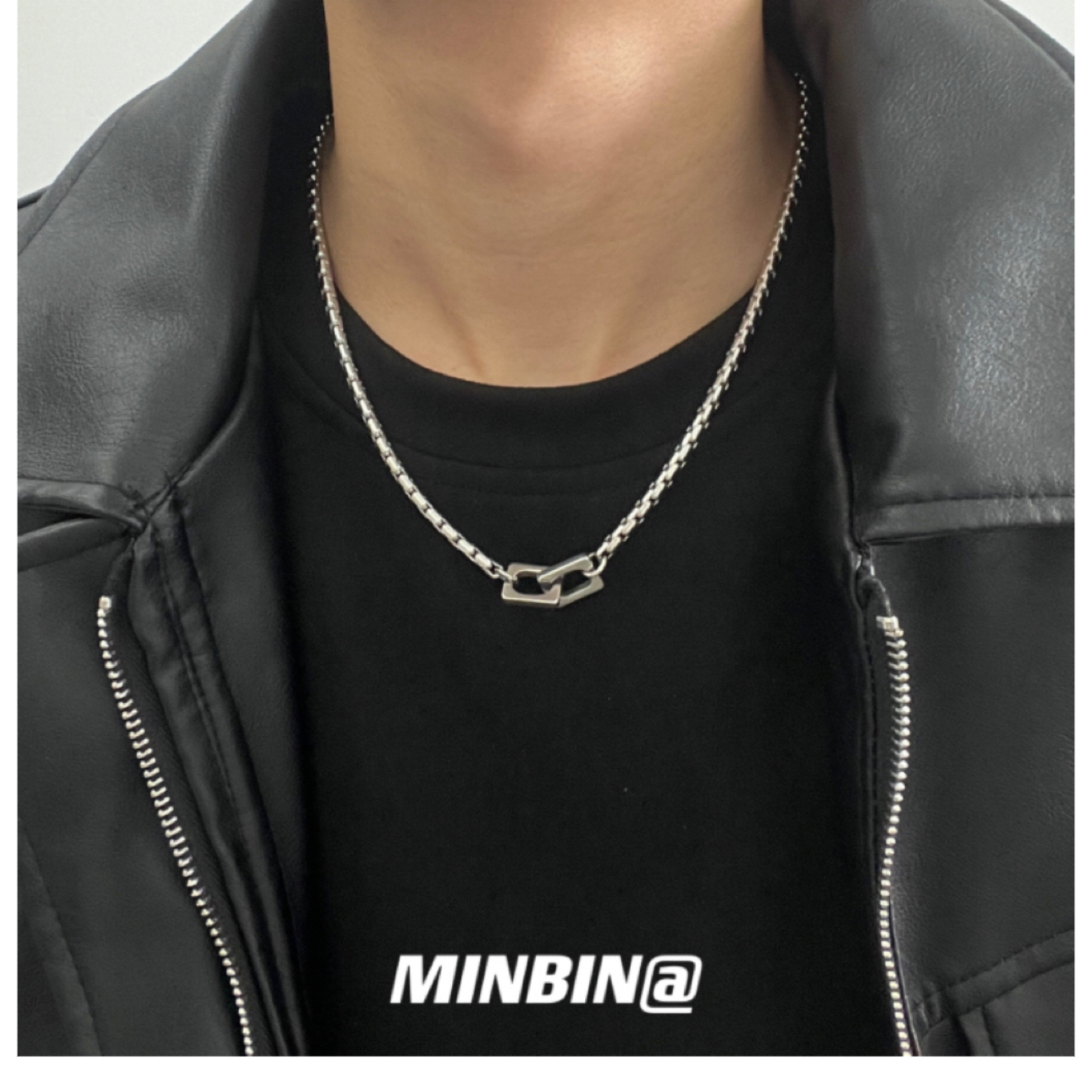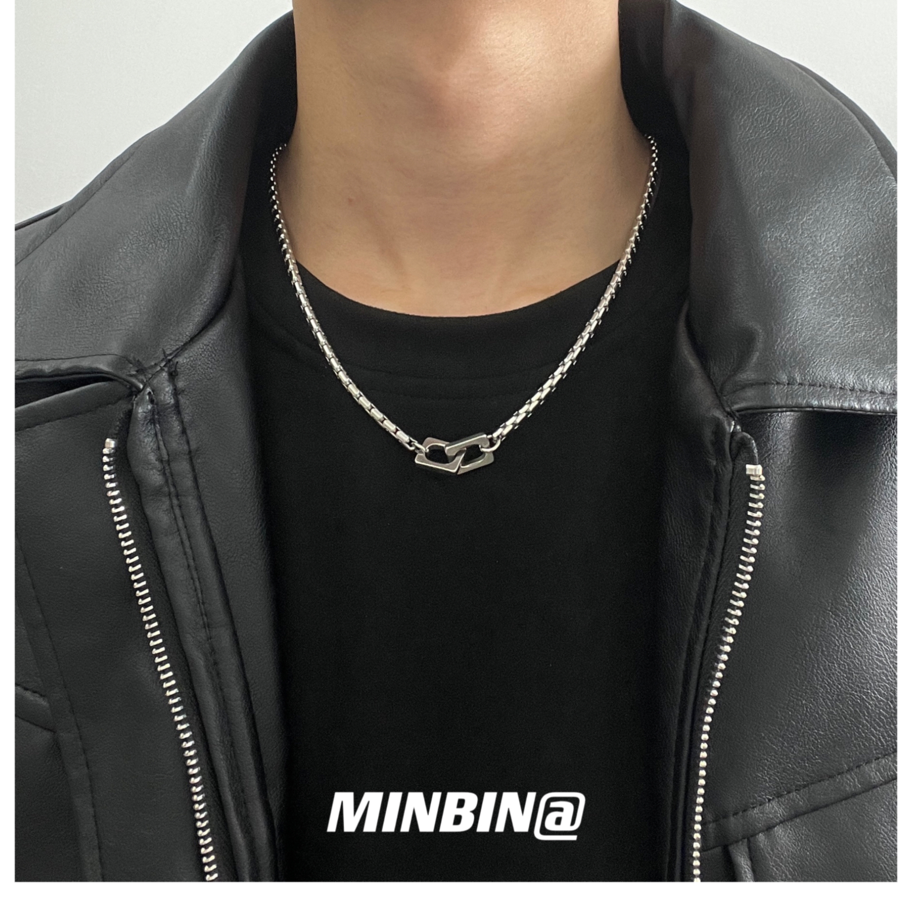 Double Ring Buckle Titanium Steel Necklace WN19246