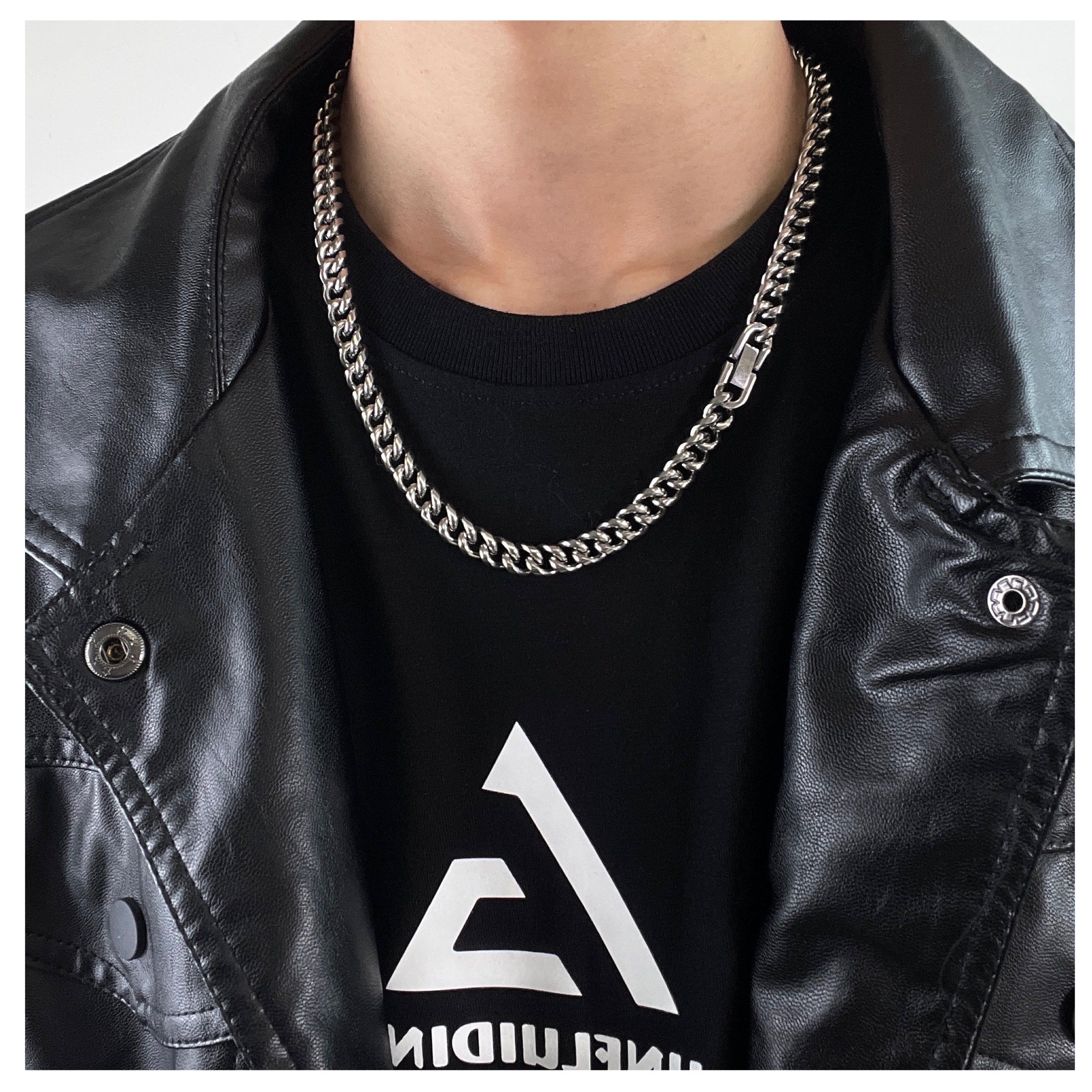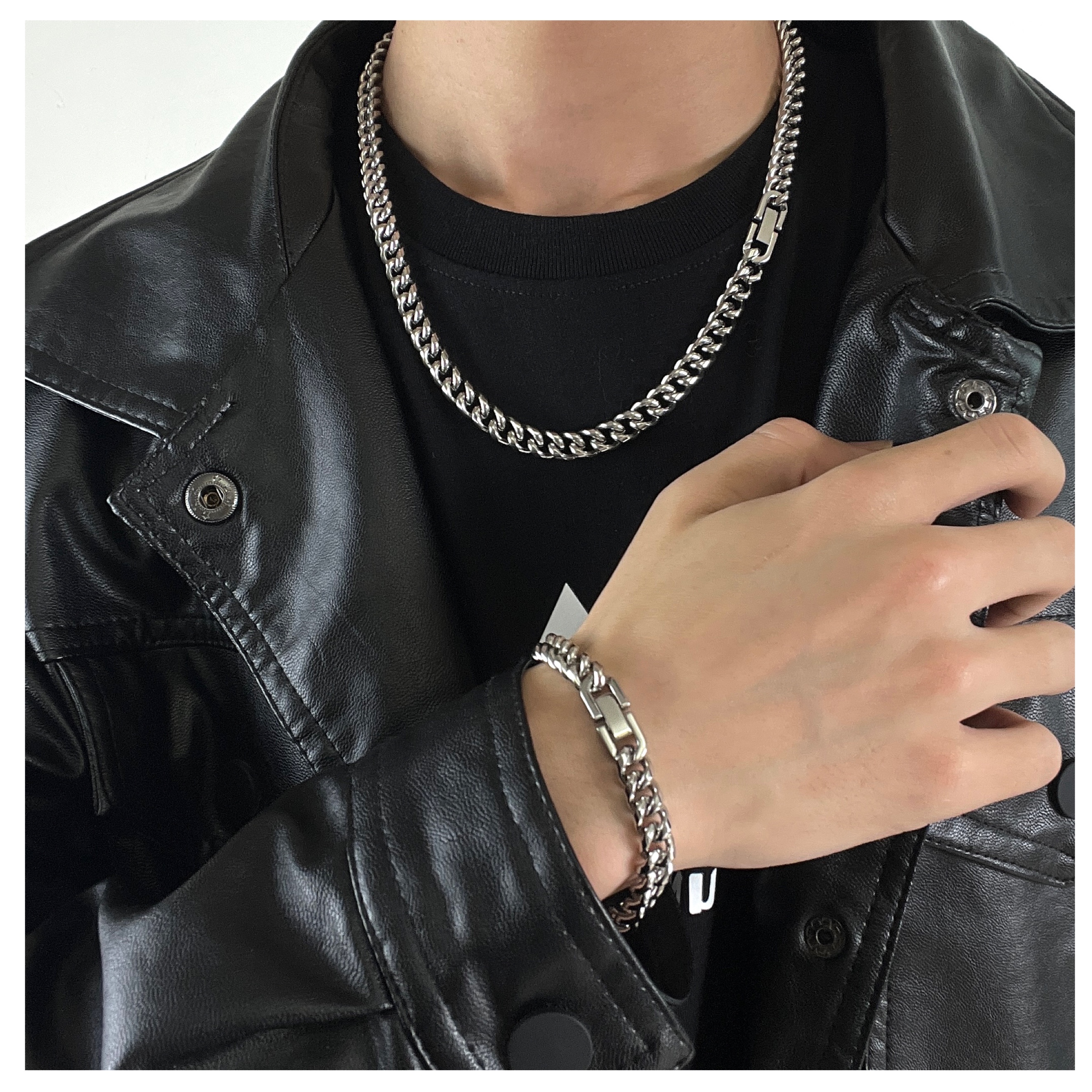 Cuban Chain Titanium Steel Necklace & Bracelet WN19249