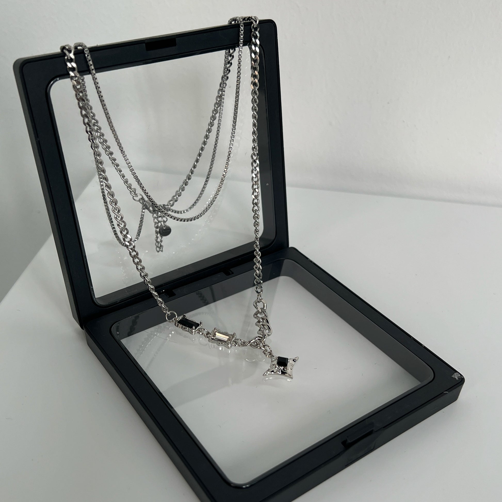 Double Layer Square Rhinestone Starburst Necklace WN19262