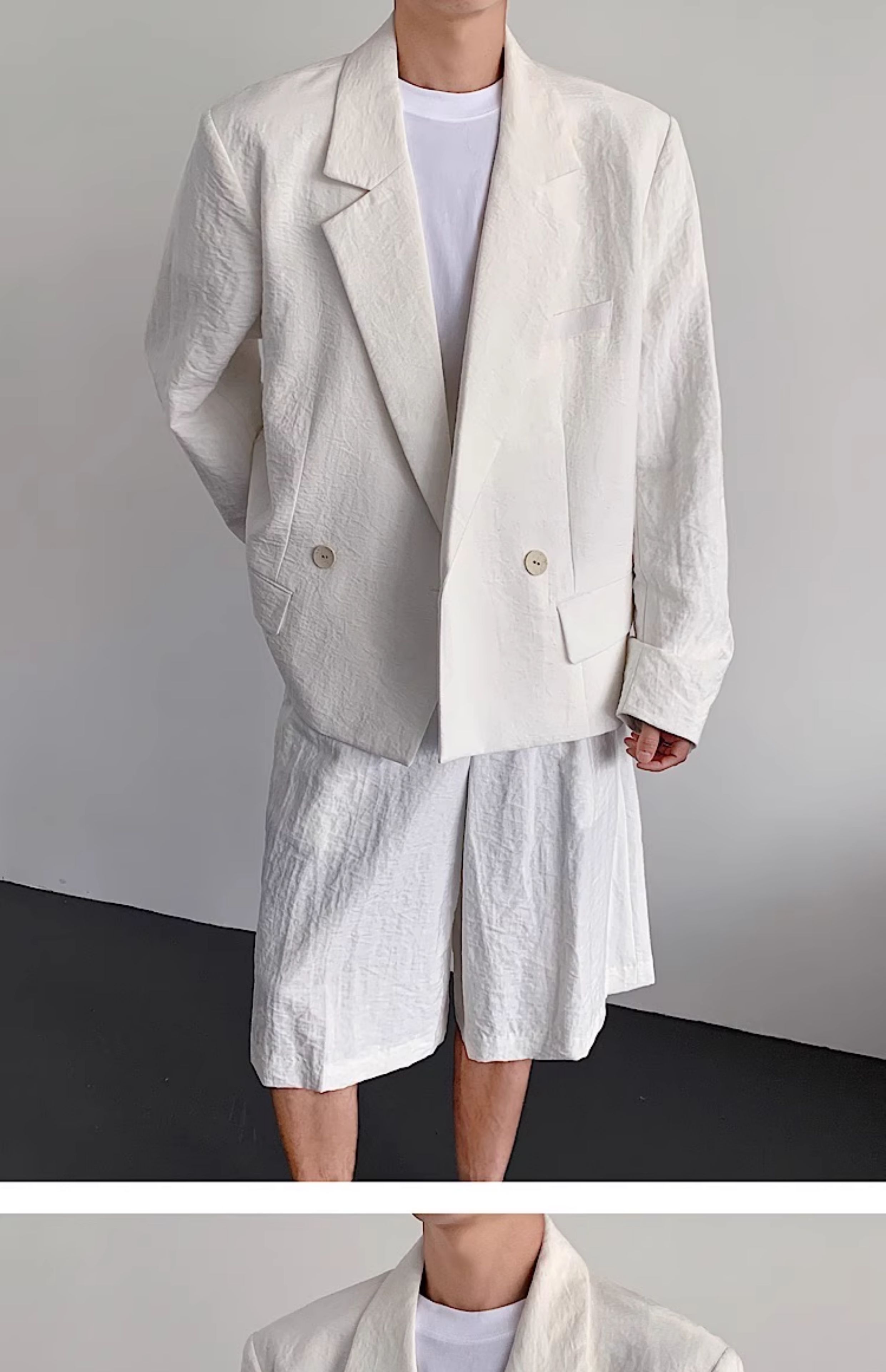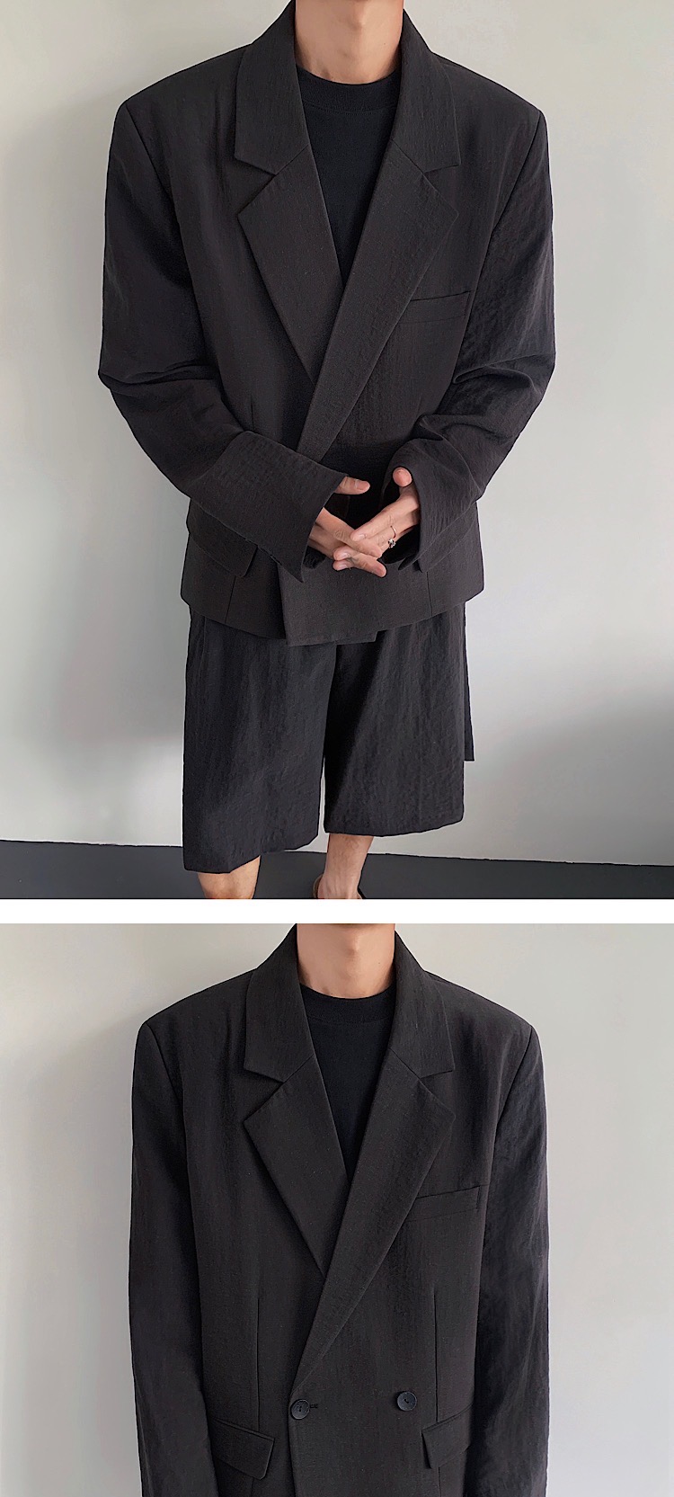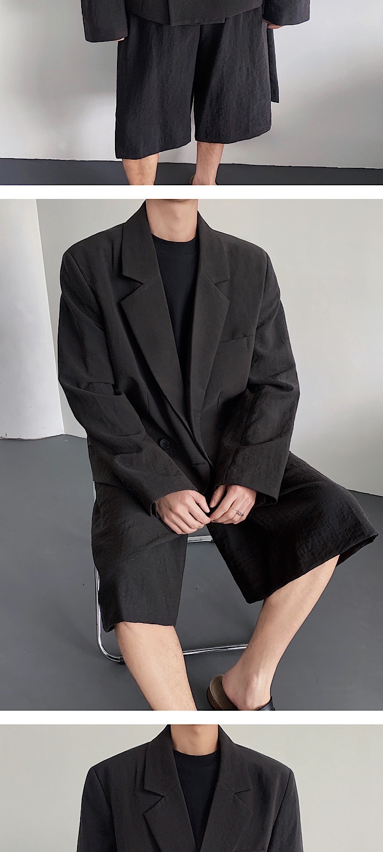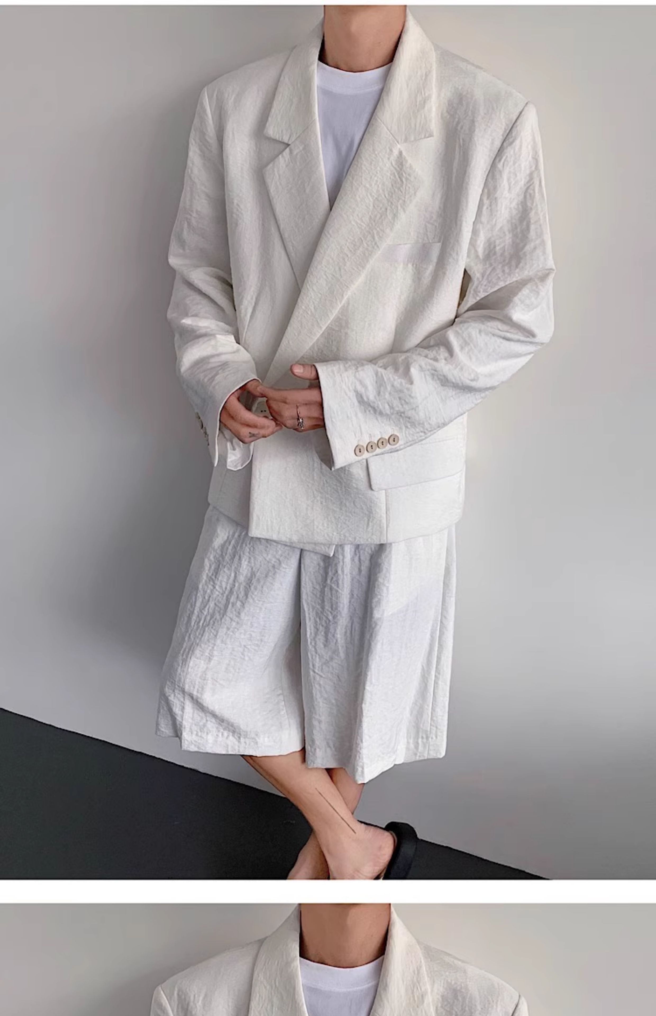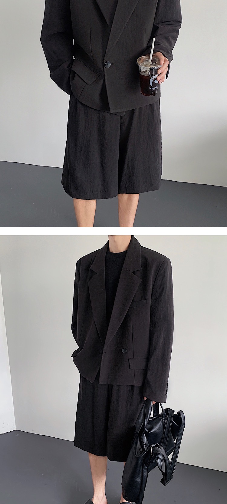 Button Closure Design Jacket & Plain Half Pants Setup WN19280