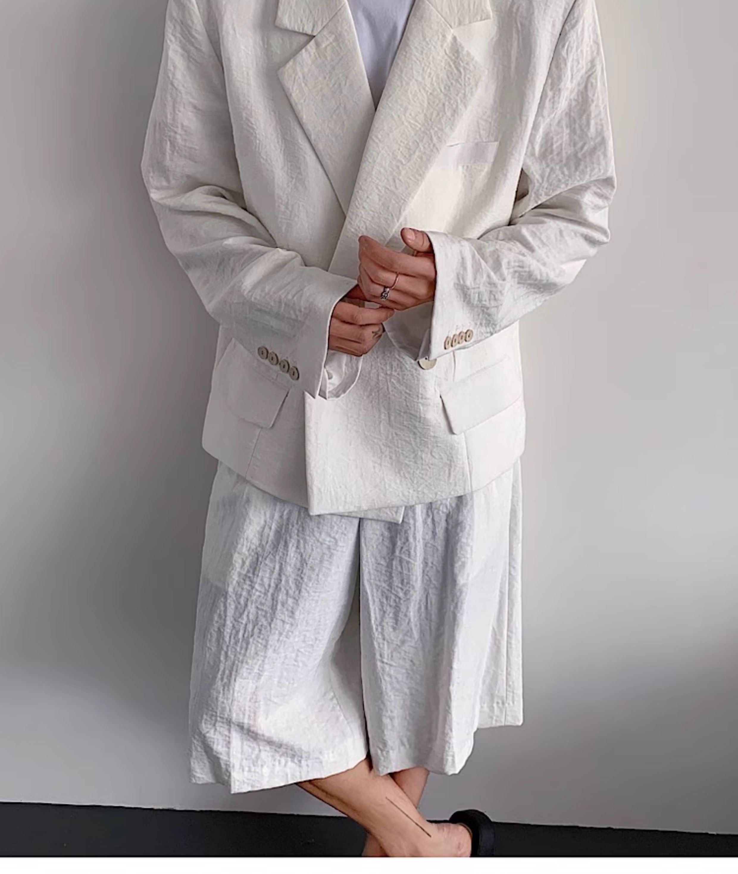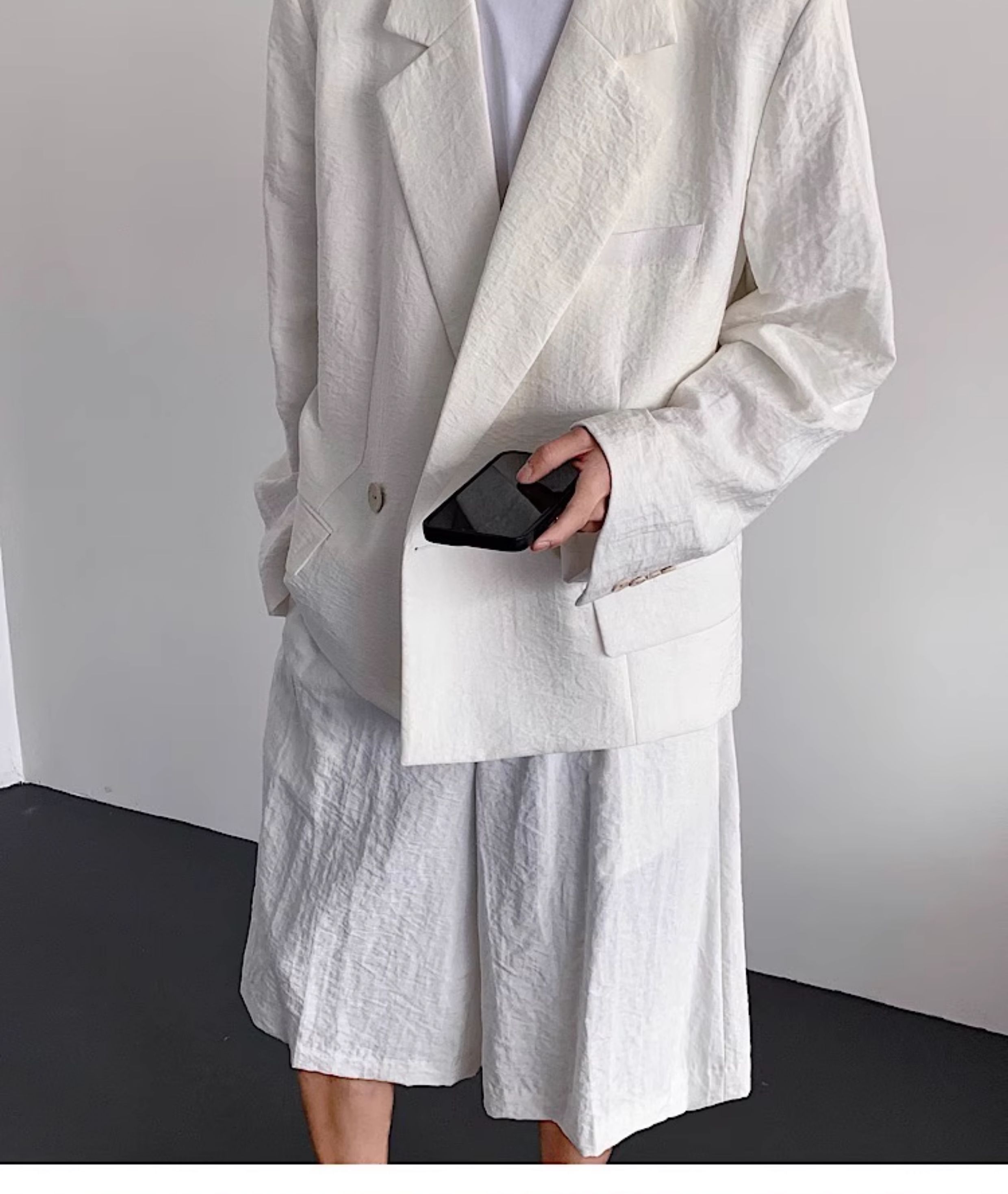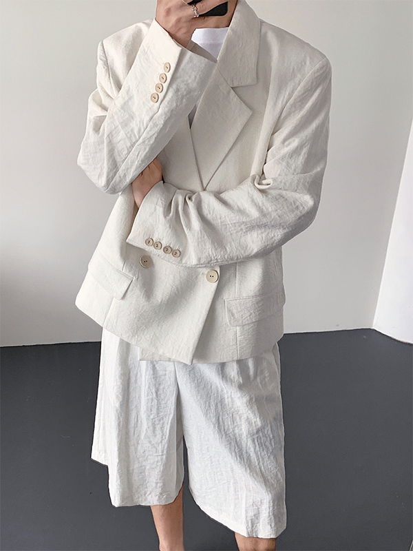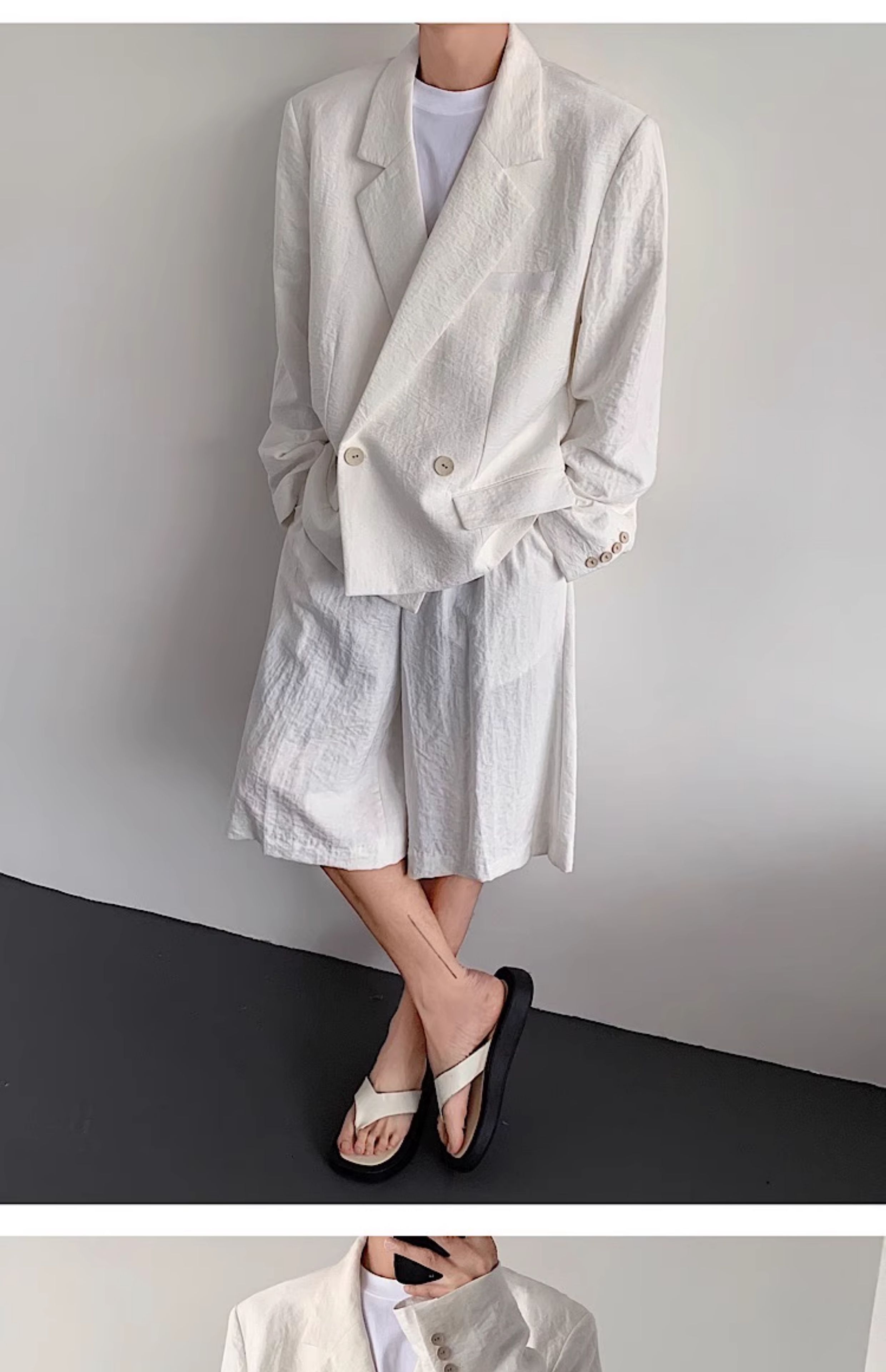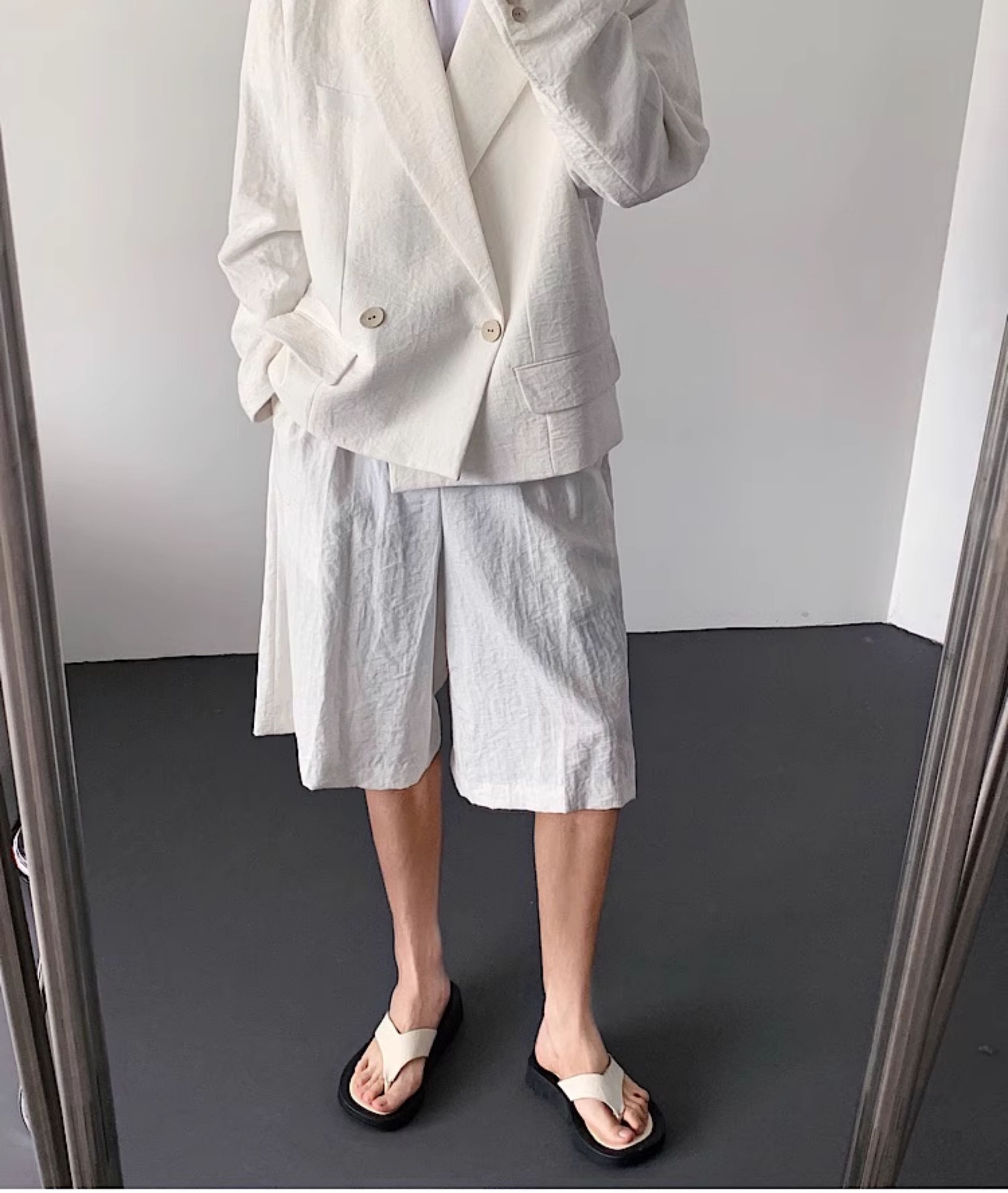Button Closure Design Jacket & Plain Half Pants Setup WN19280