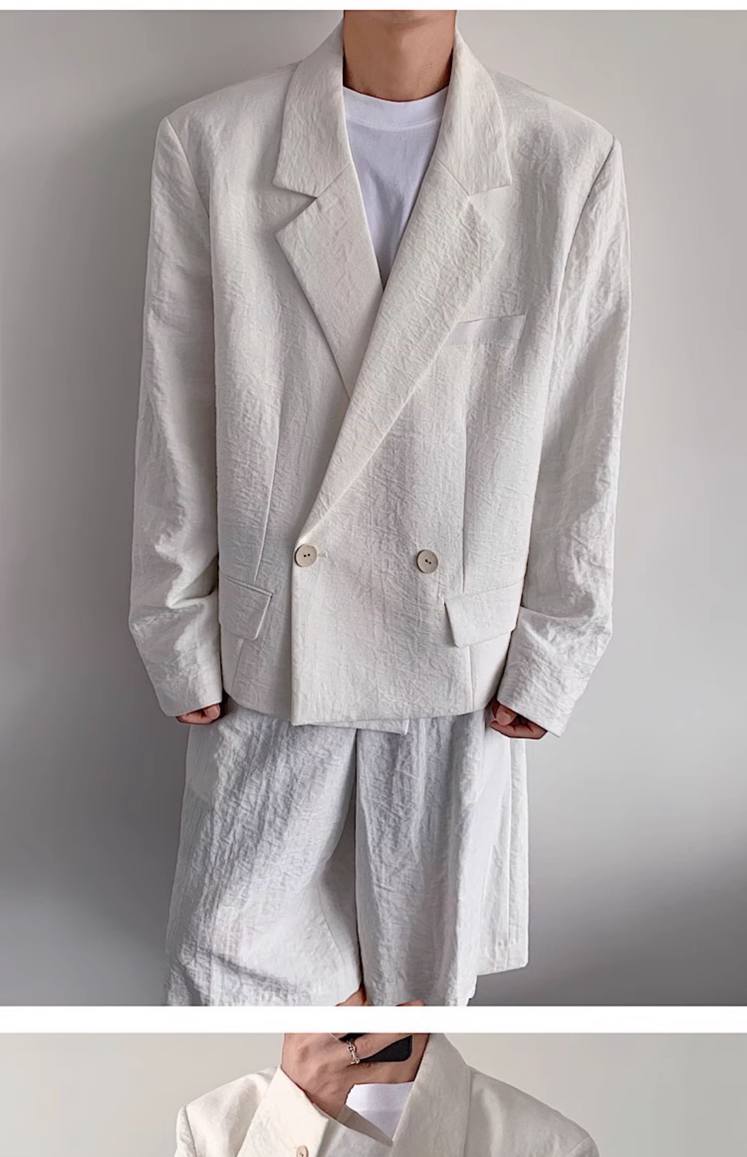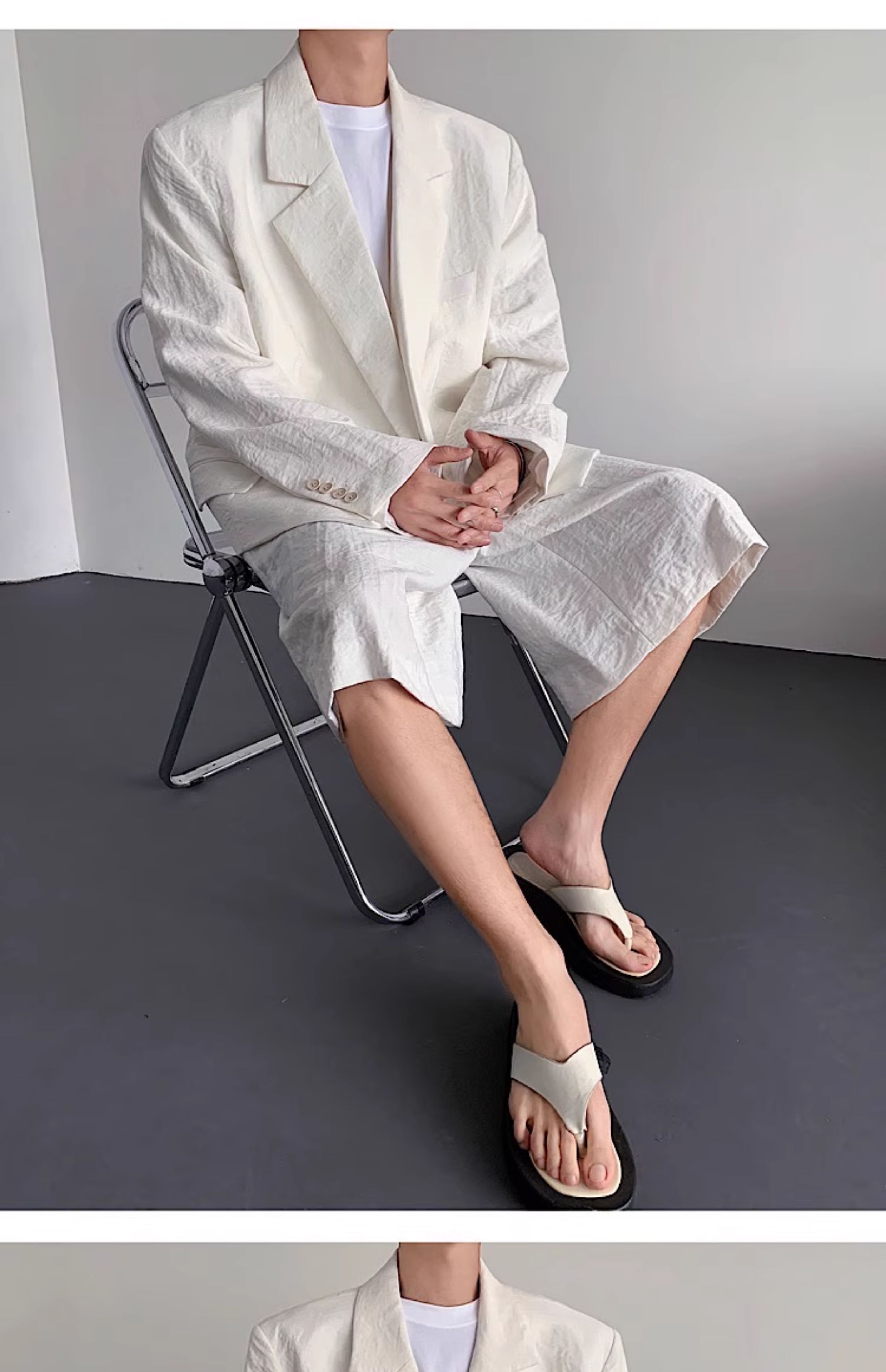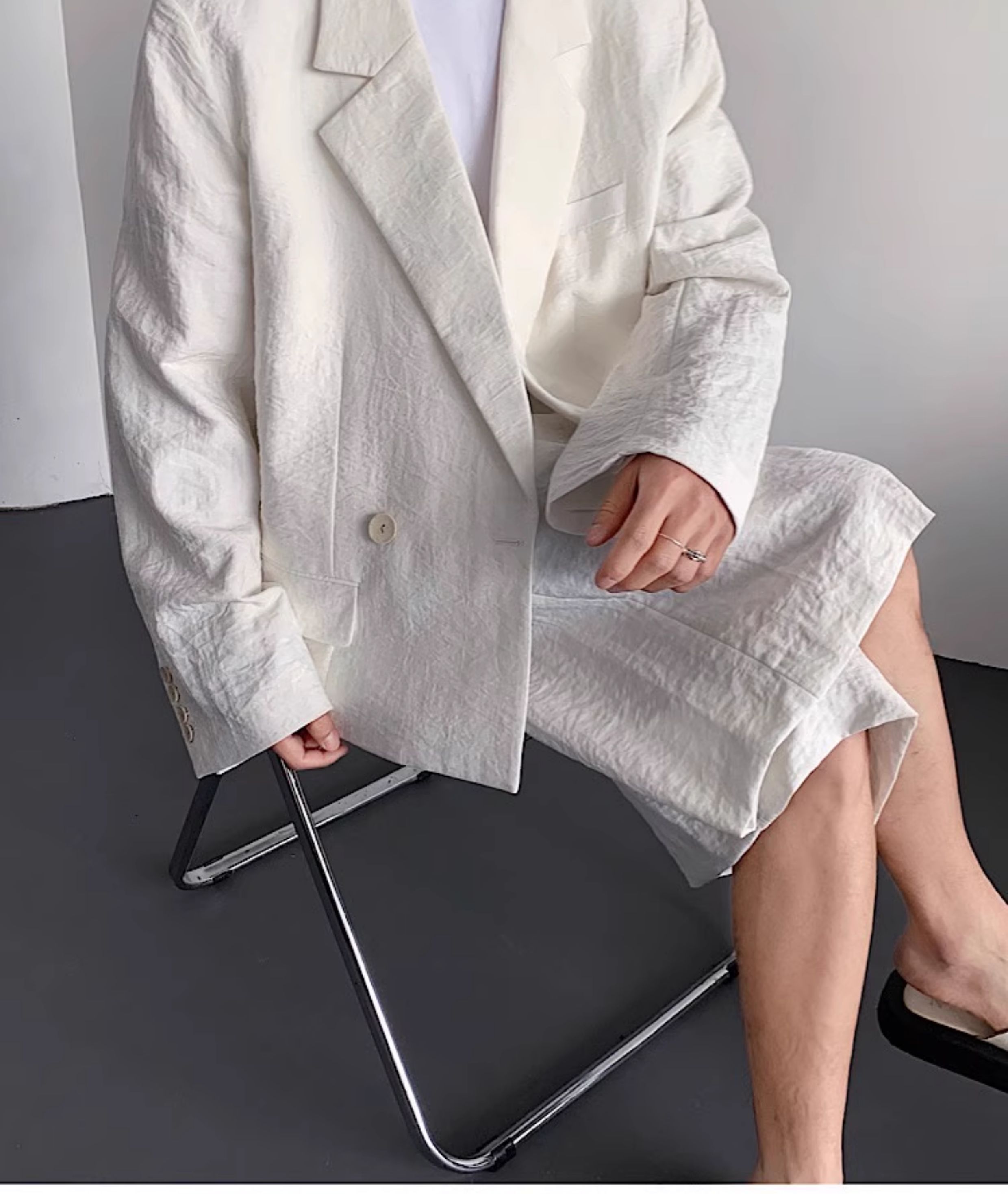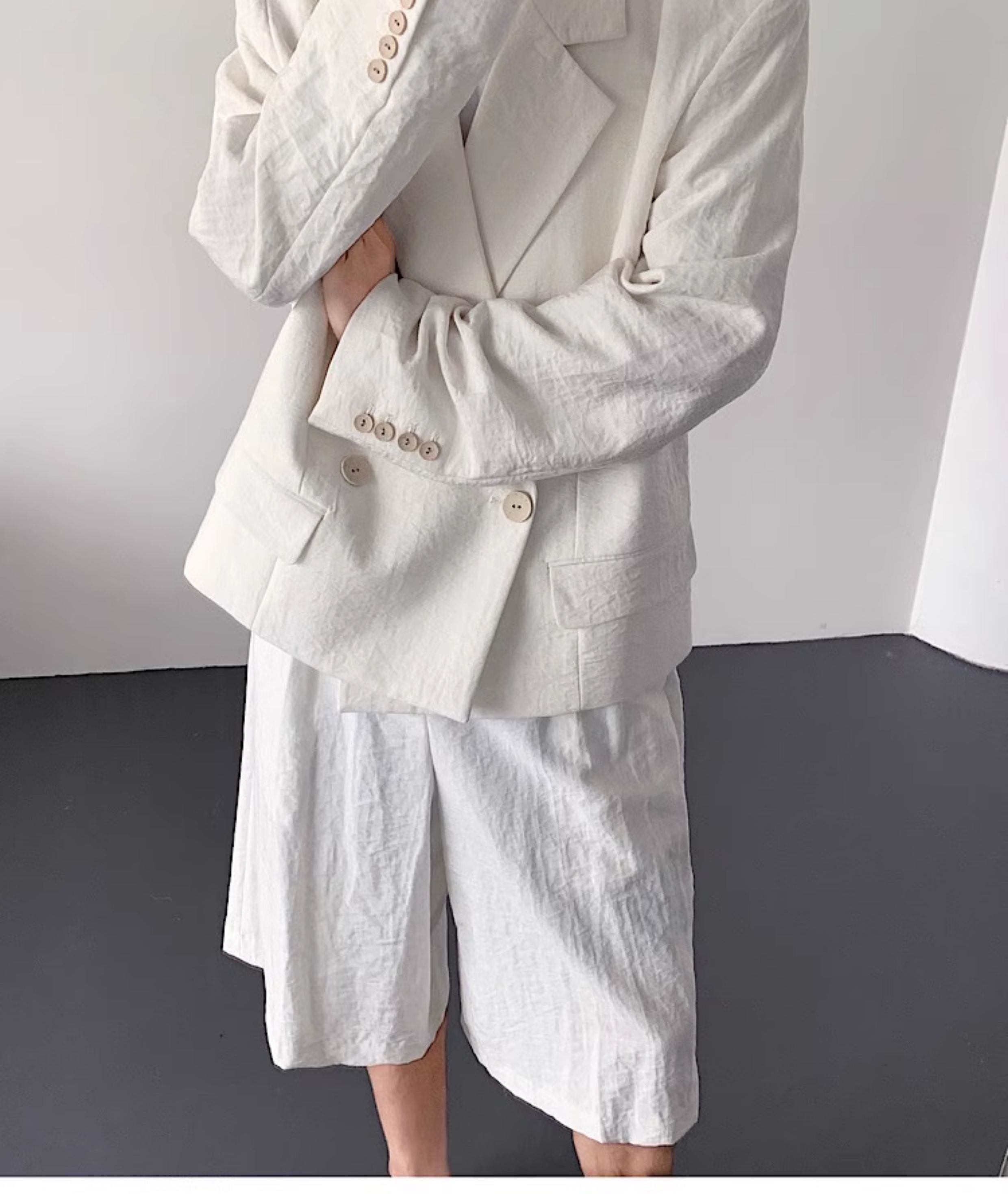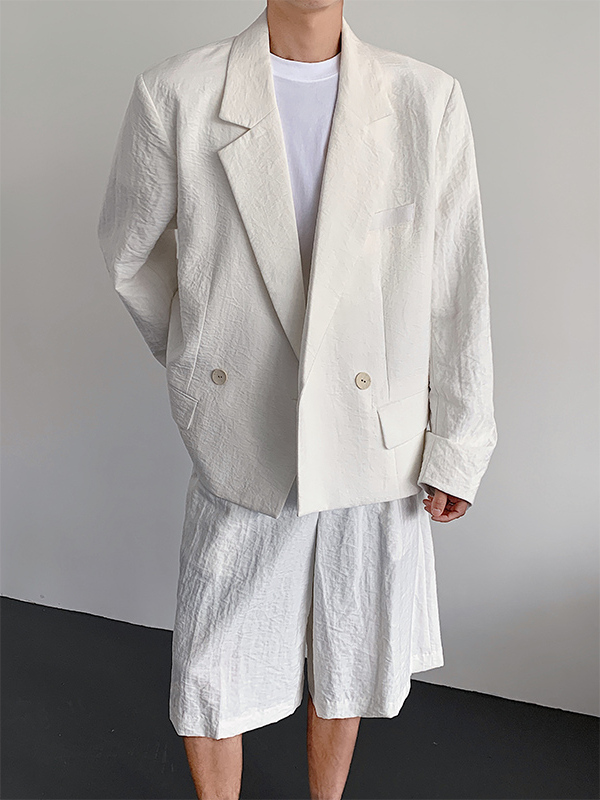 Button Closure Design Jacket & Plain Half Pants Setup WN19280
