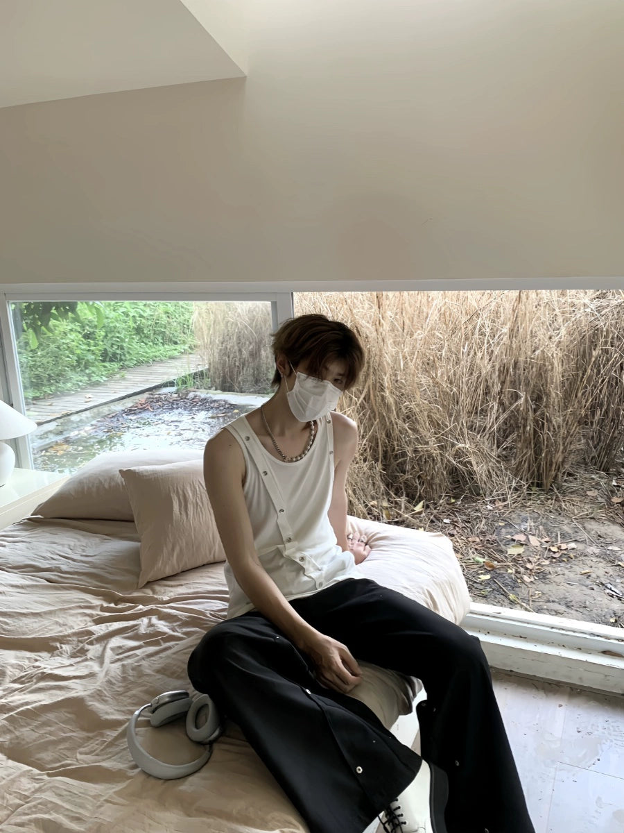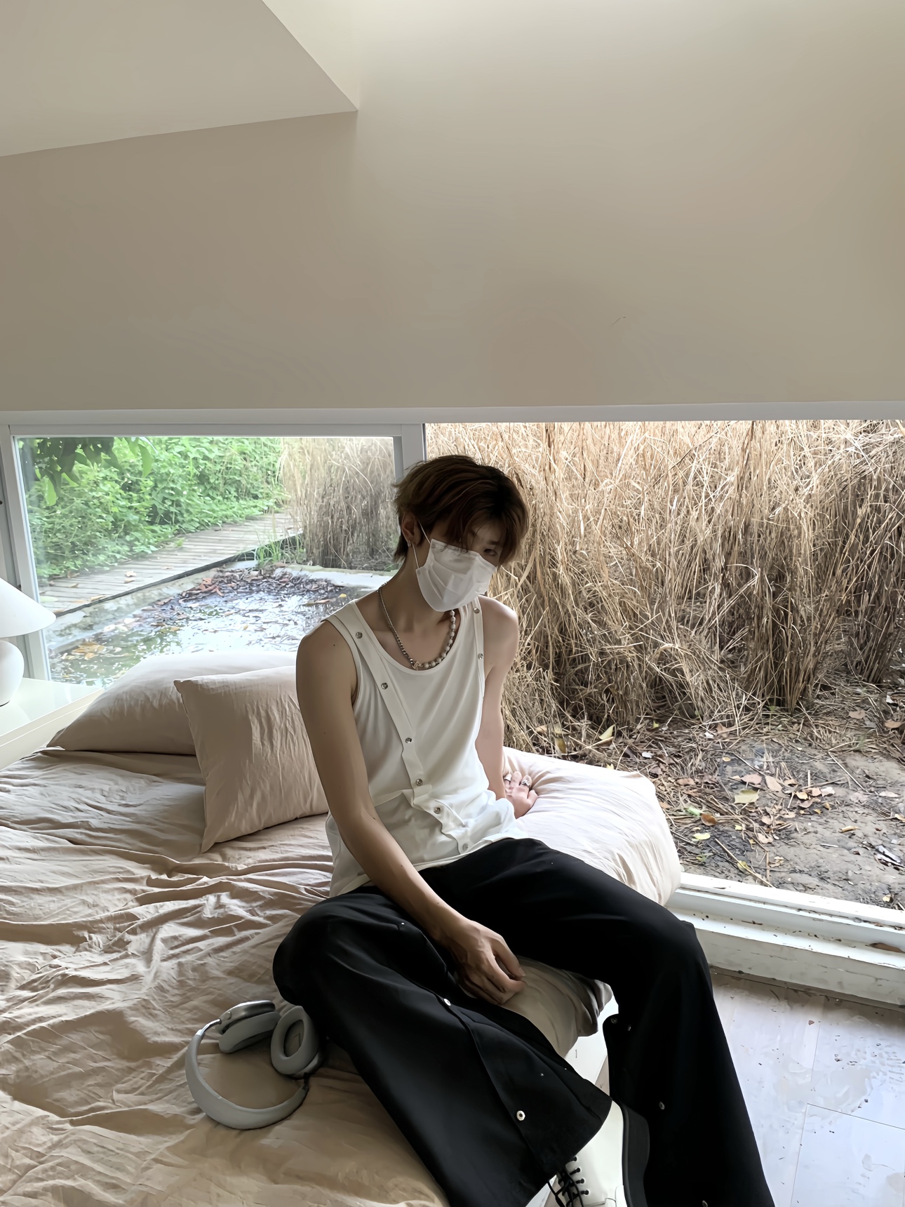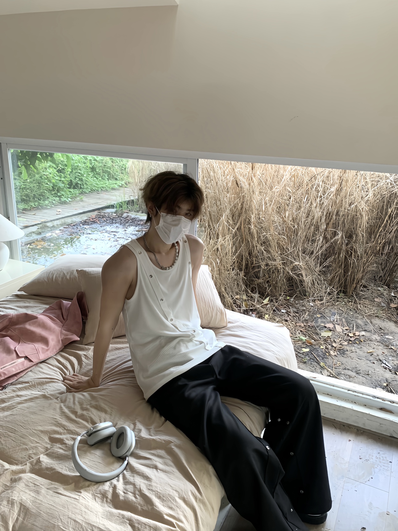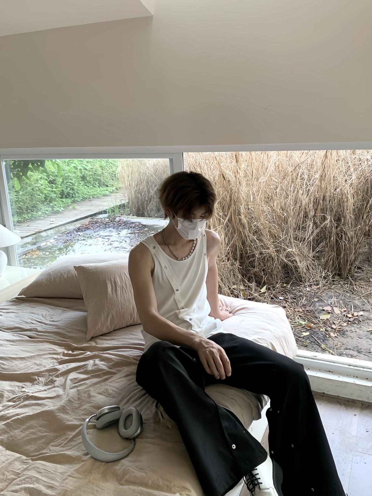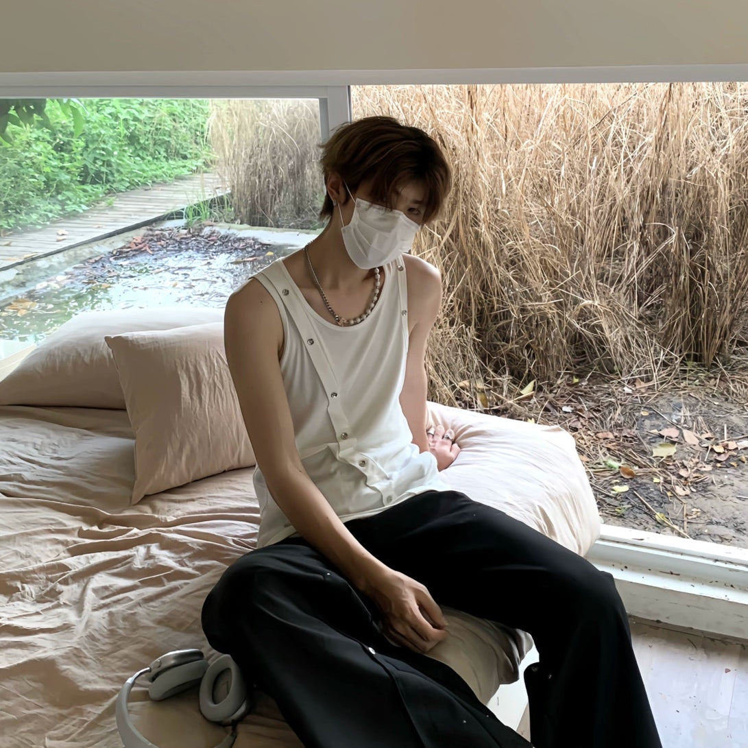 Asymmetrical Button Design Sleeveless T-Shirt WN19839
