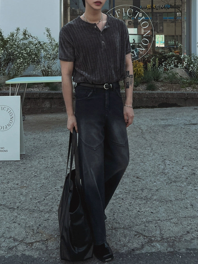 Henley Neck Plain Design Short Sleeve T-Shirt WN20269