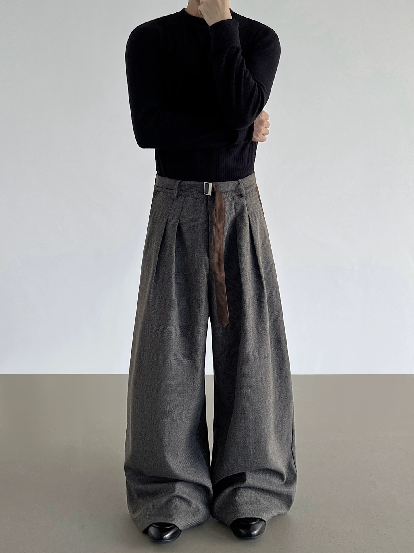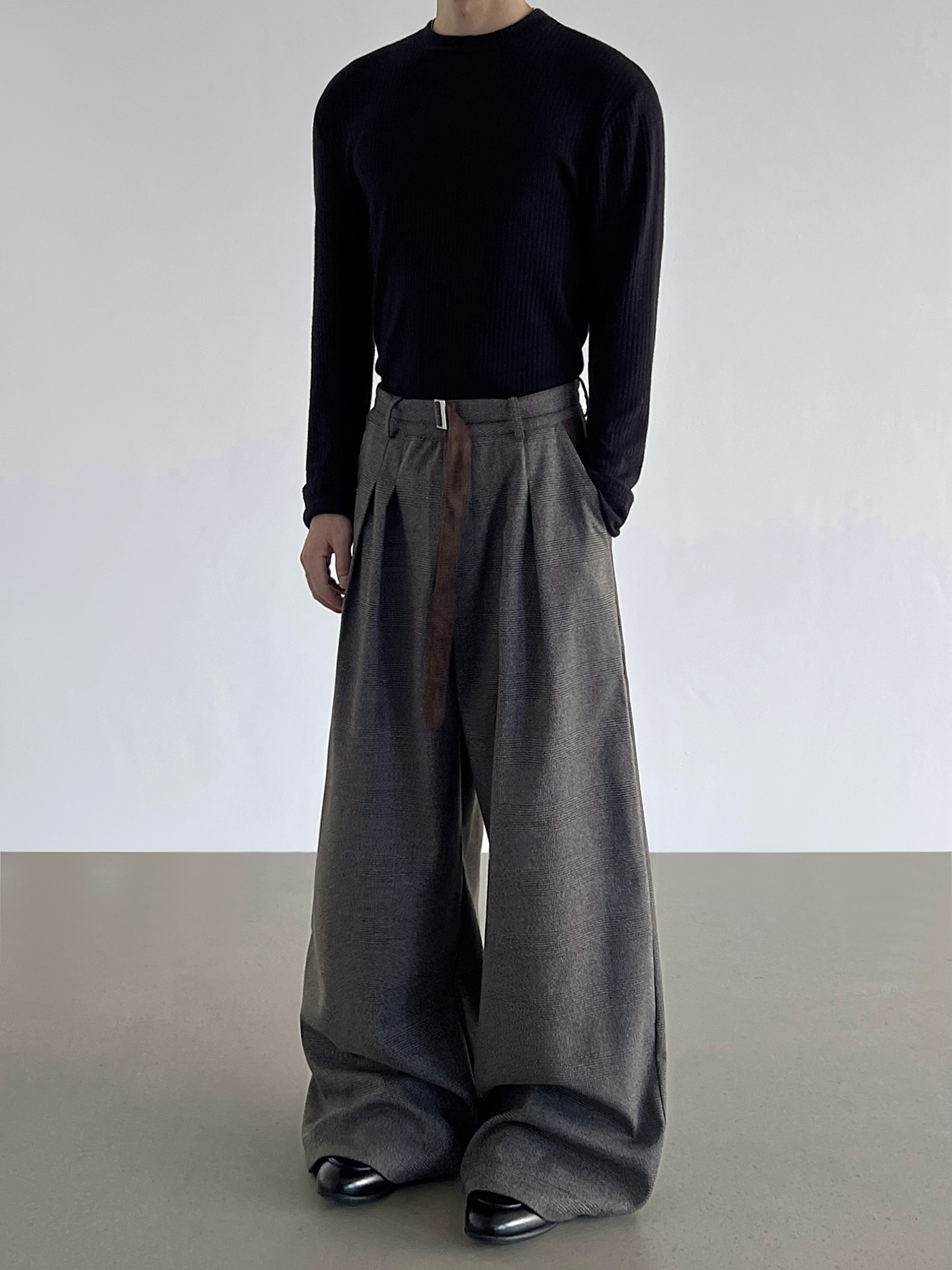 Houndstooth Pleats Wide Leg Trousers WN21209