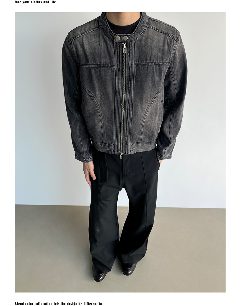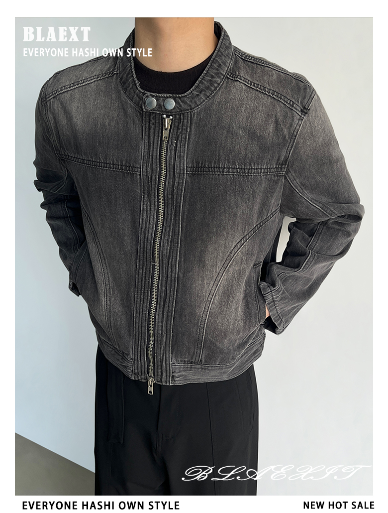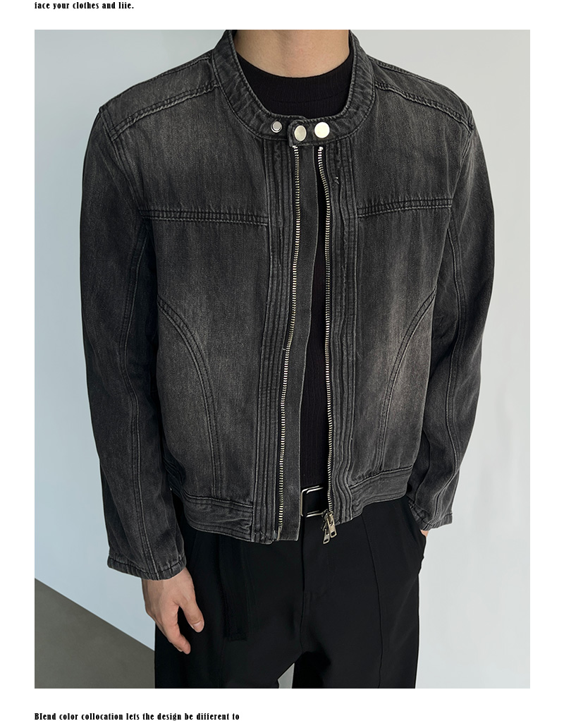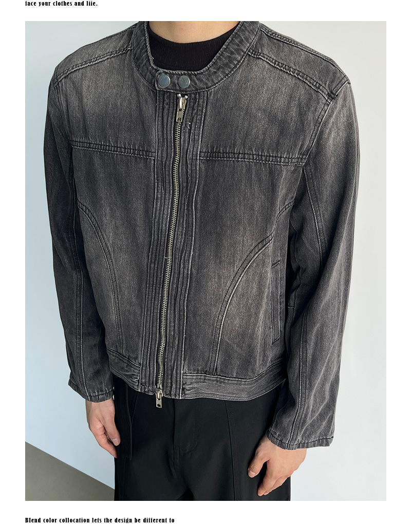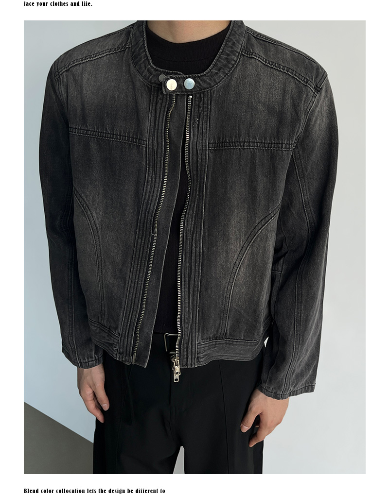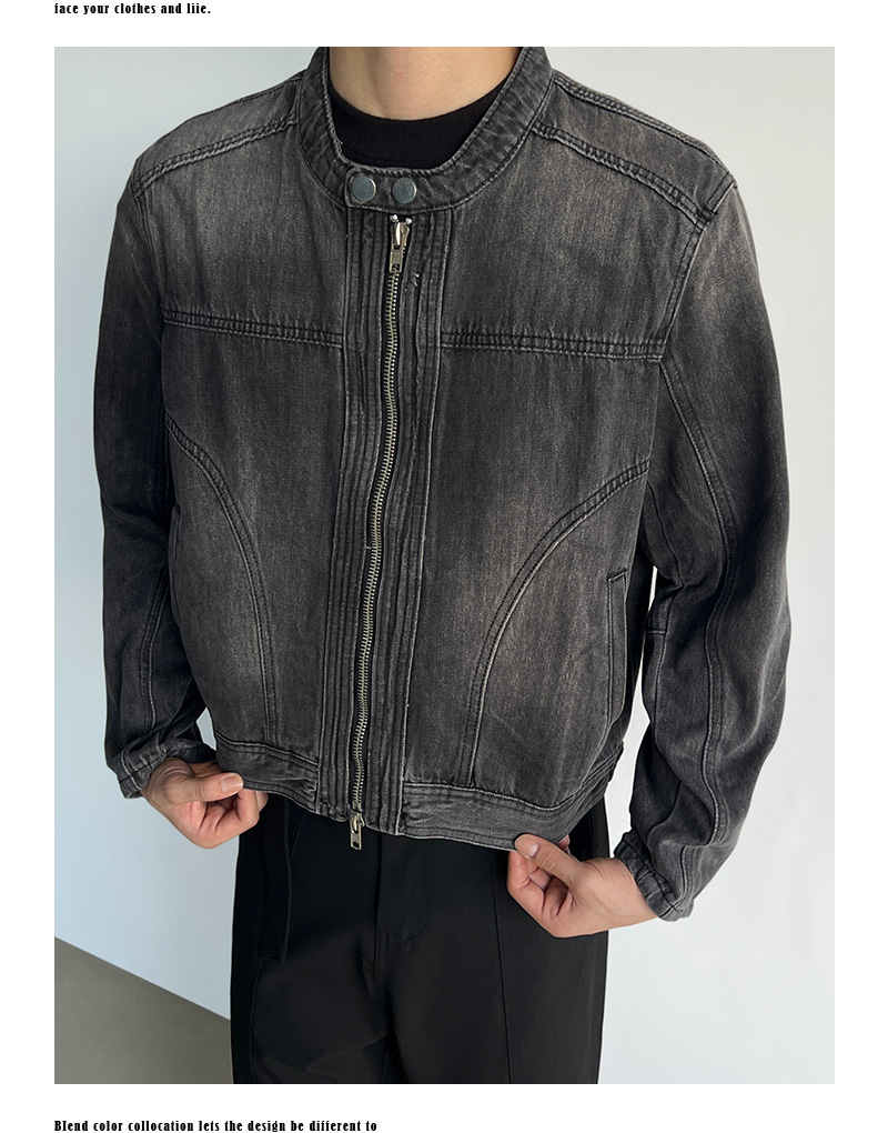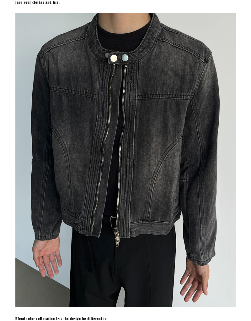 Rivet Washed Short Ziiper Denim Jacket WN21413