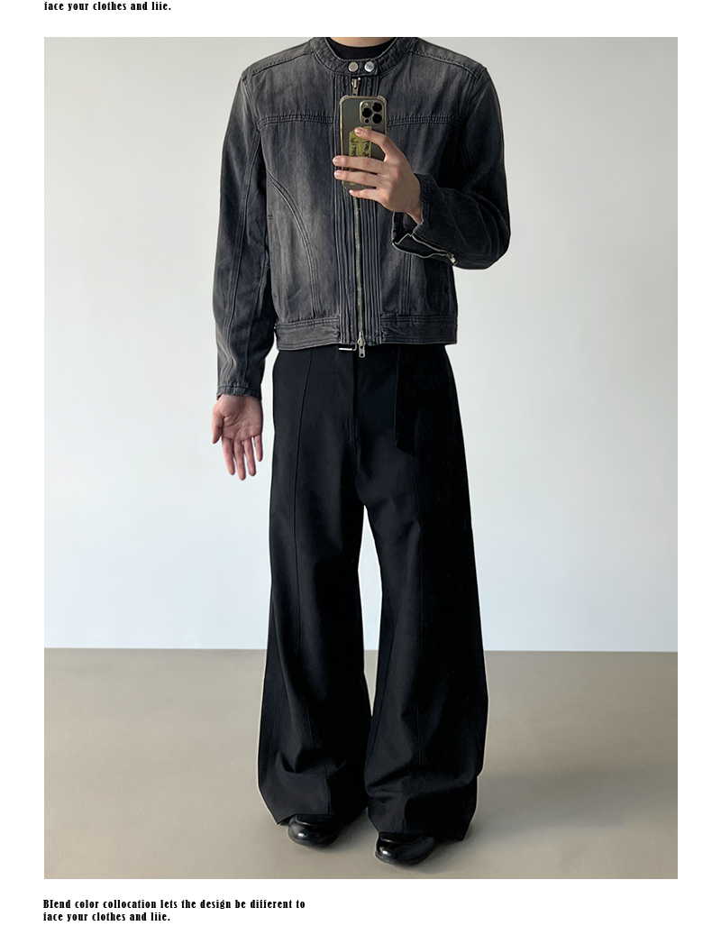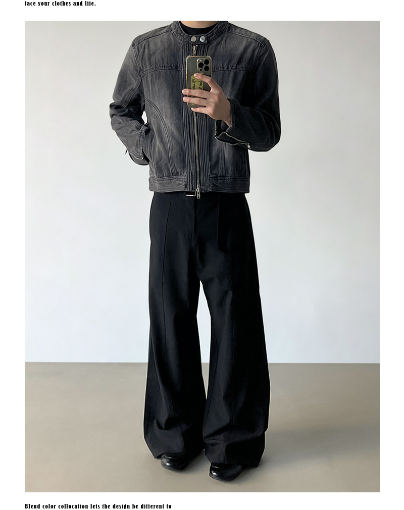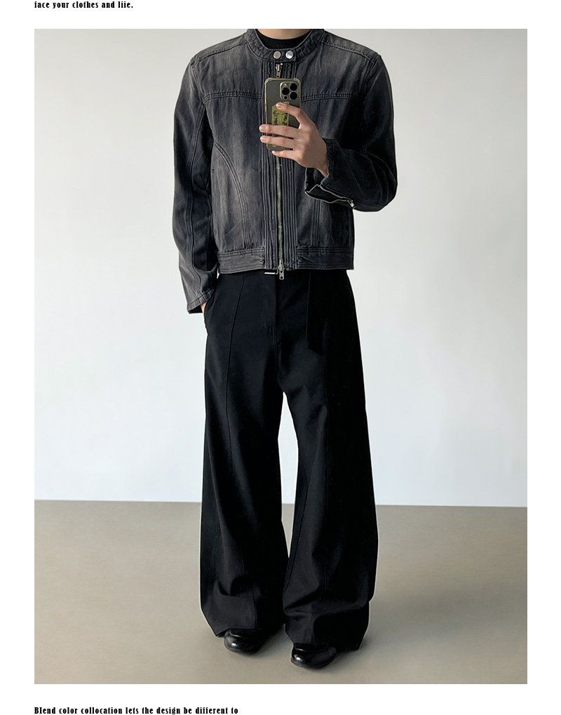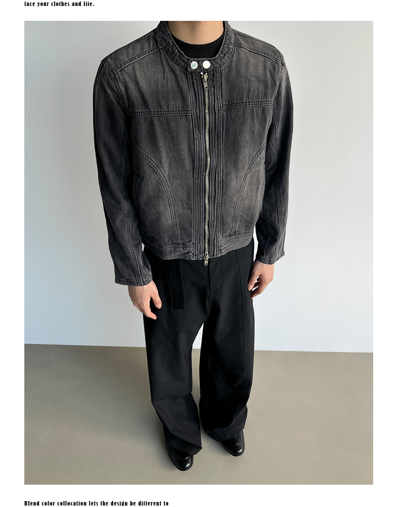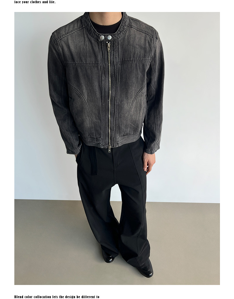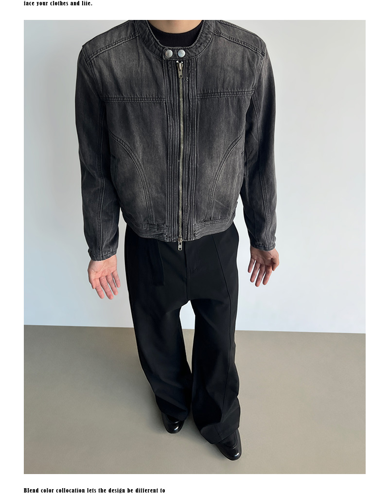 Rivet Washed Short Ziiper Denim Jacket WN21413