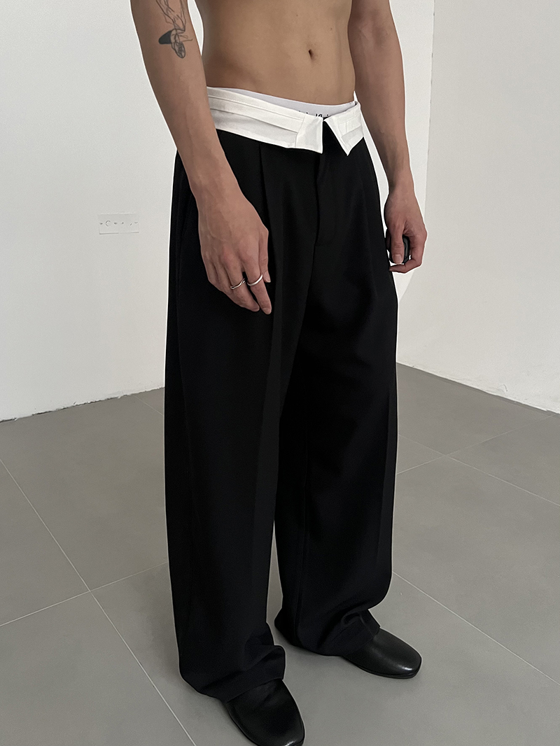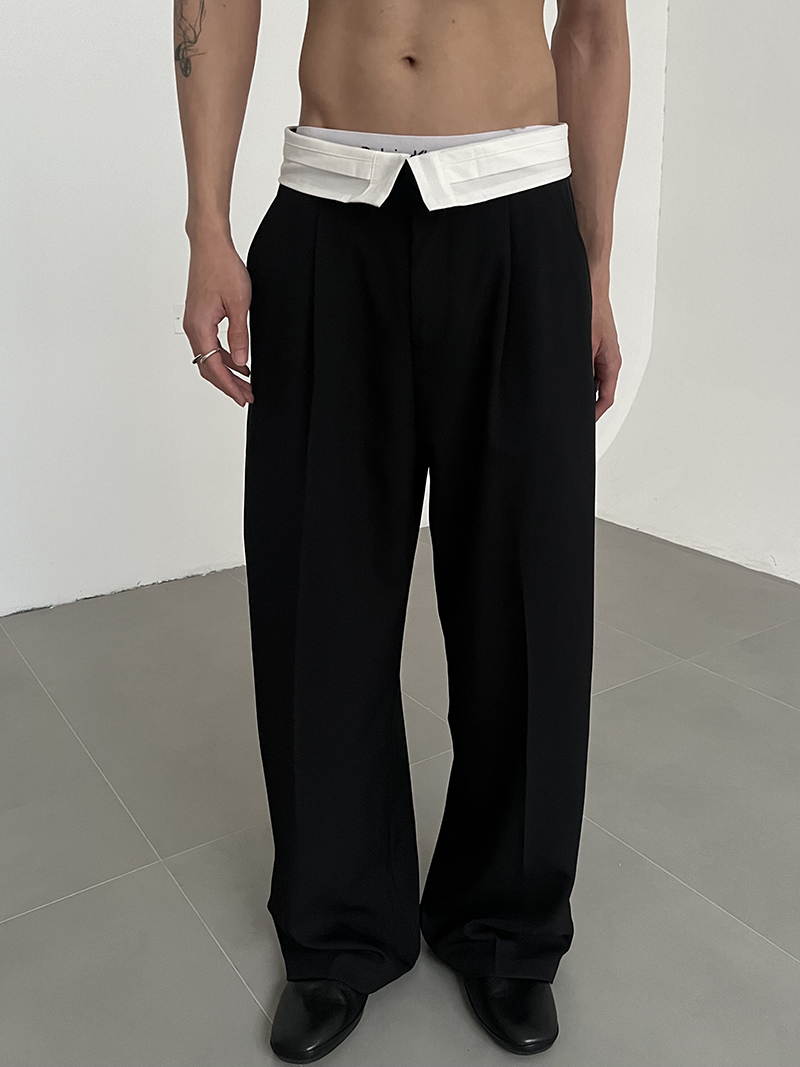 Contrast Folded Hem Wide Leg Trousers WN21571