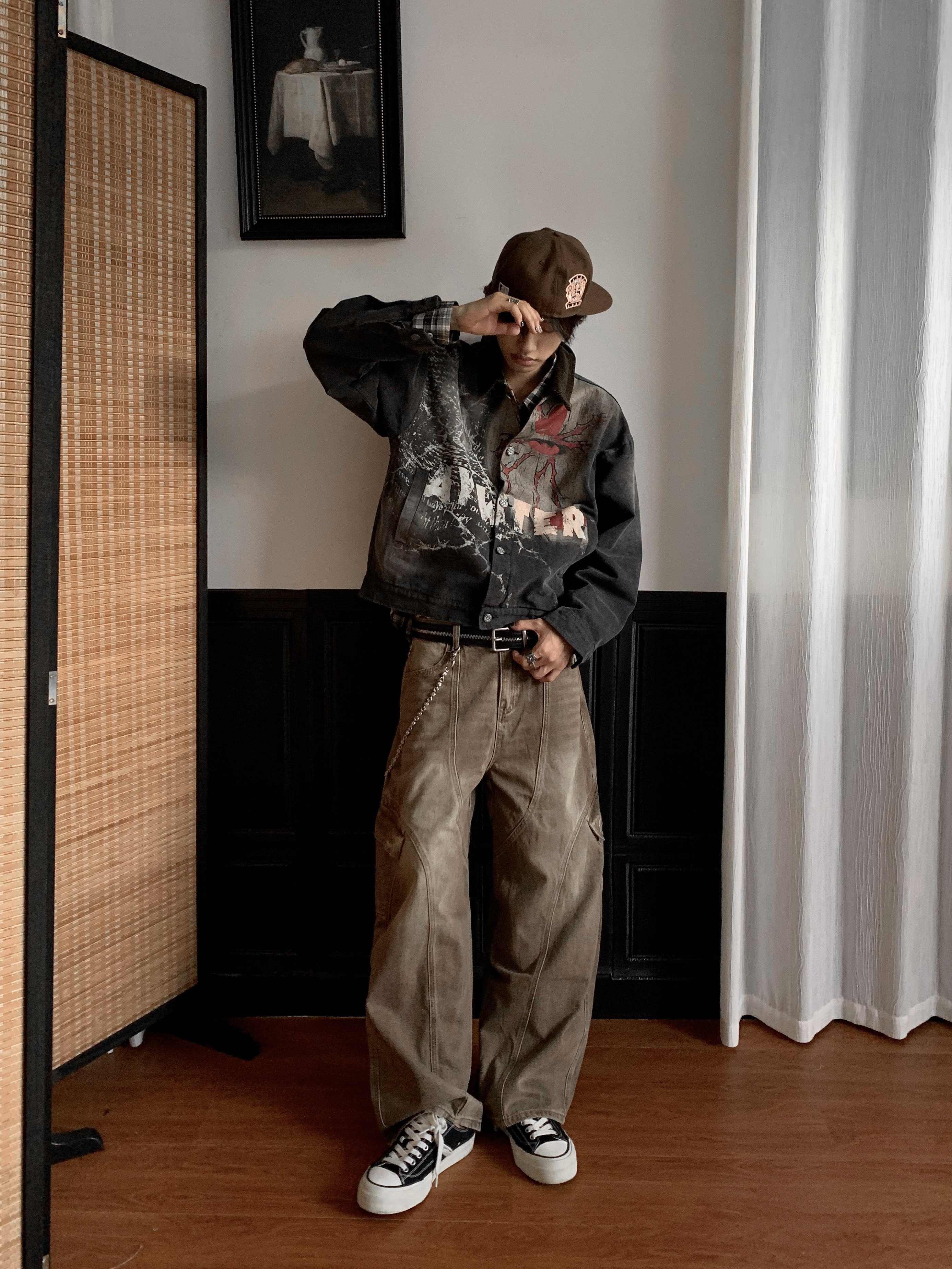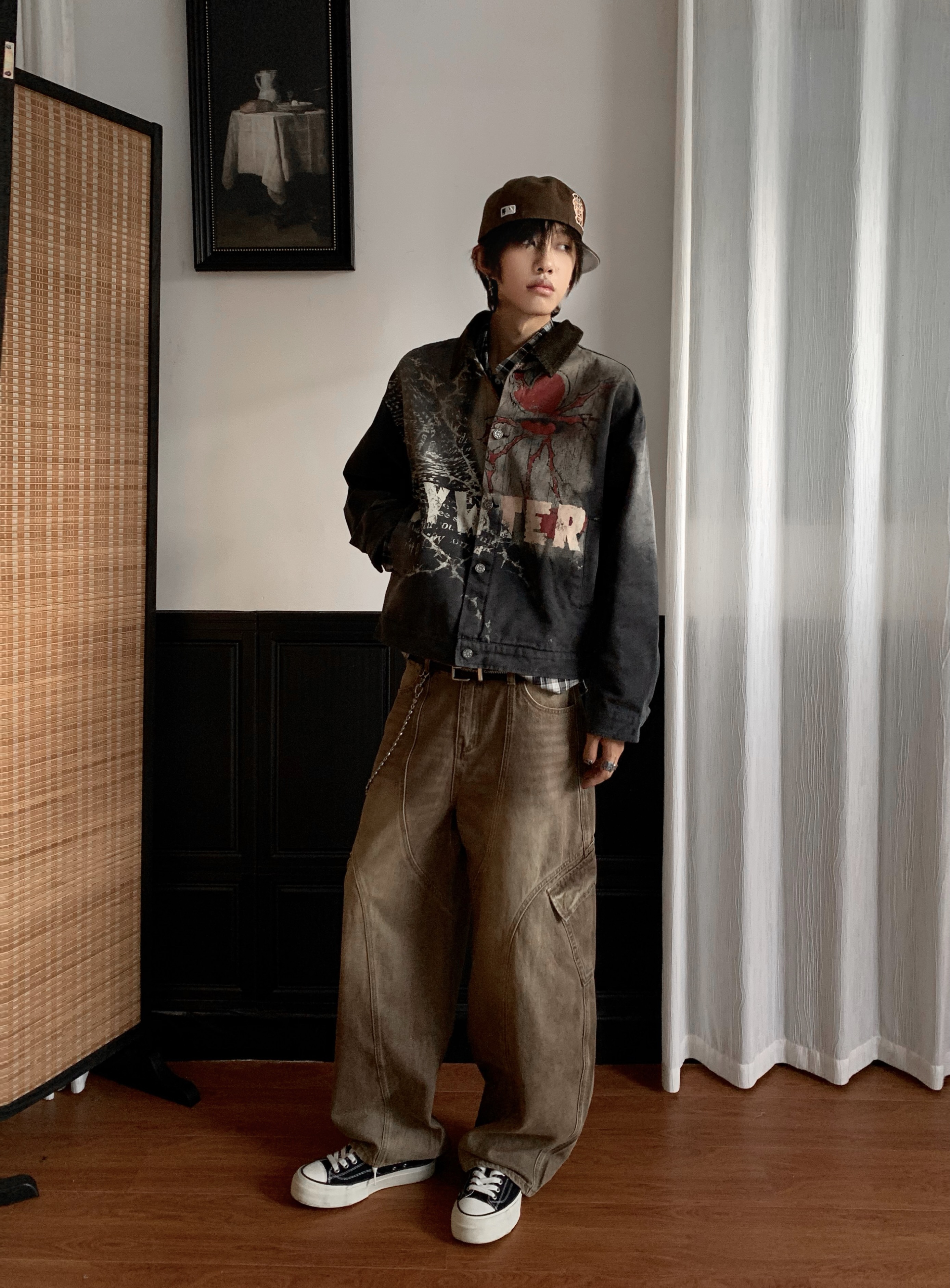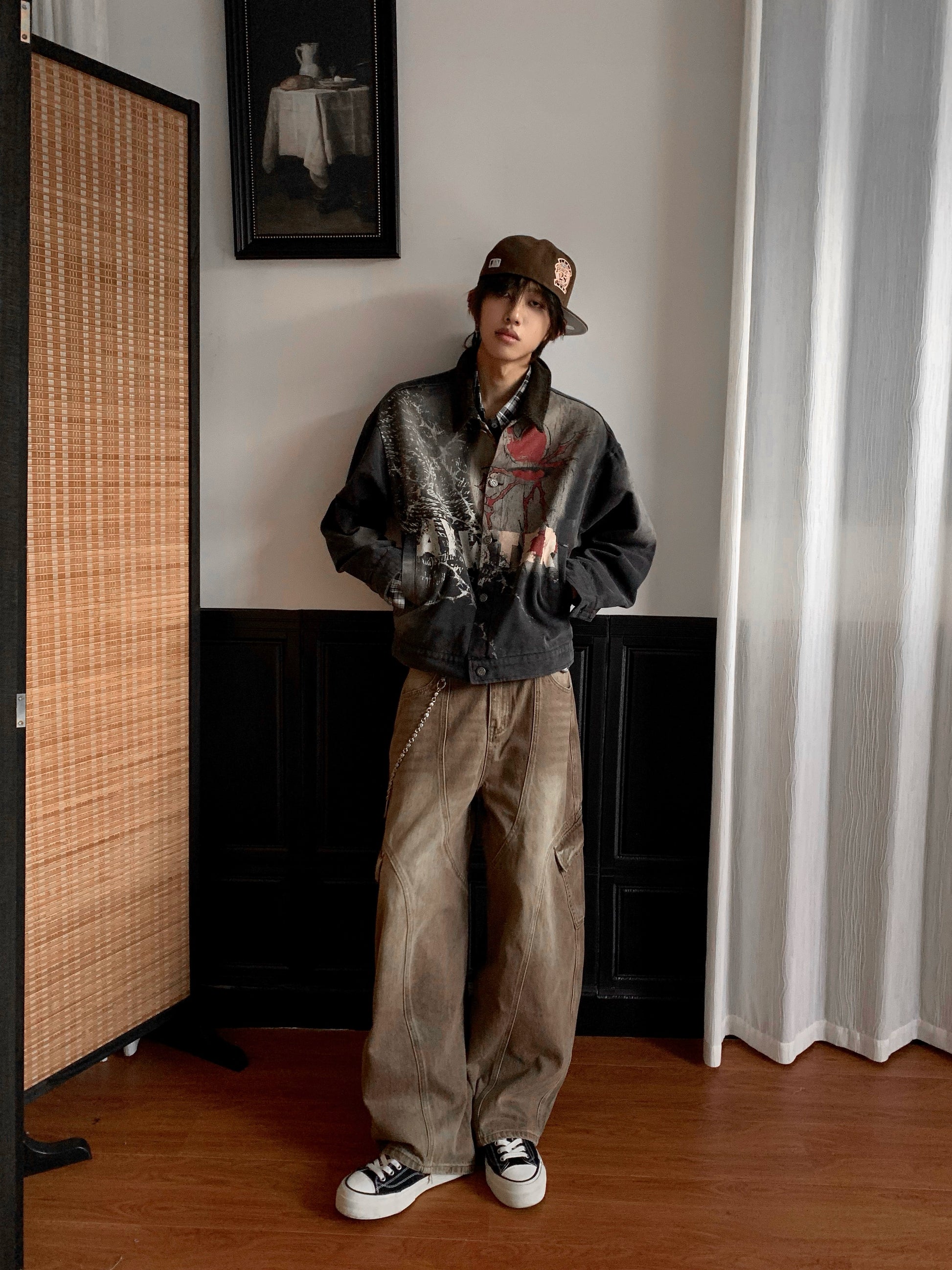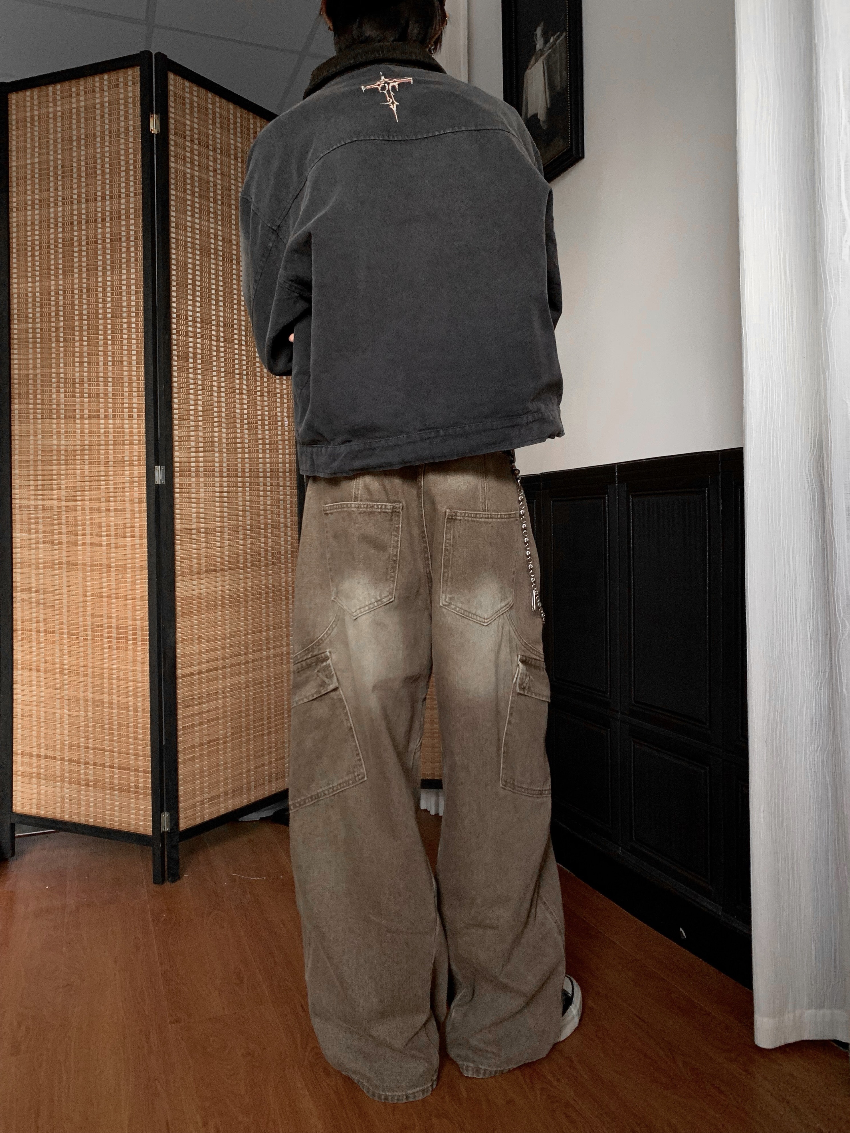 Washed Multi-Pocket Brown Wide Leg Denim Jeans WN22177