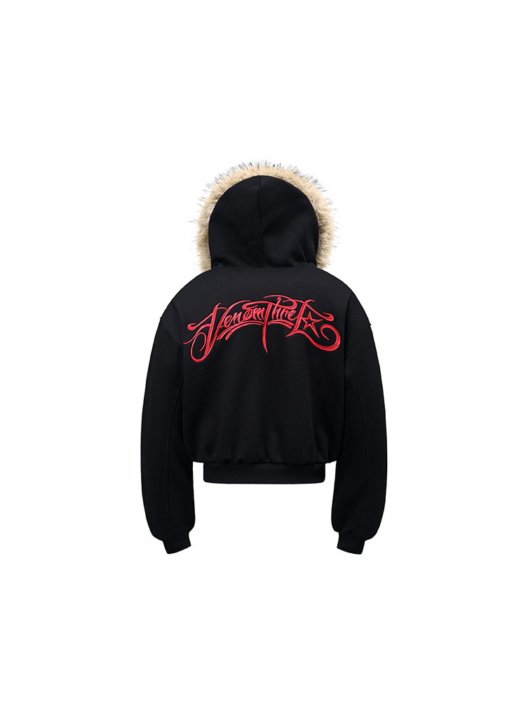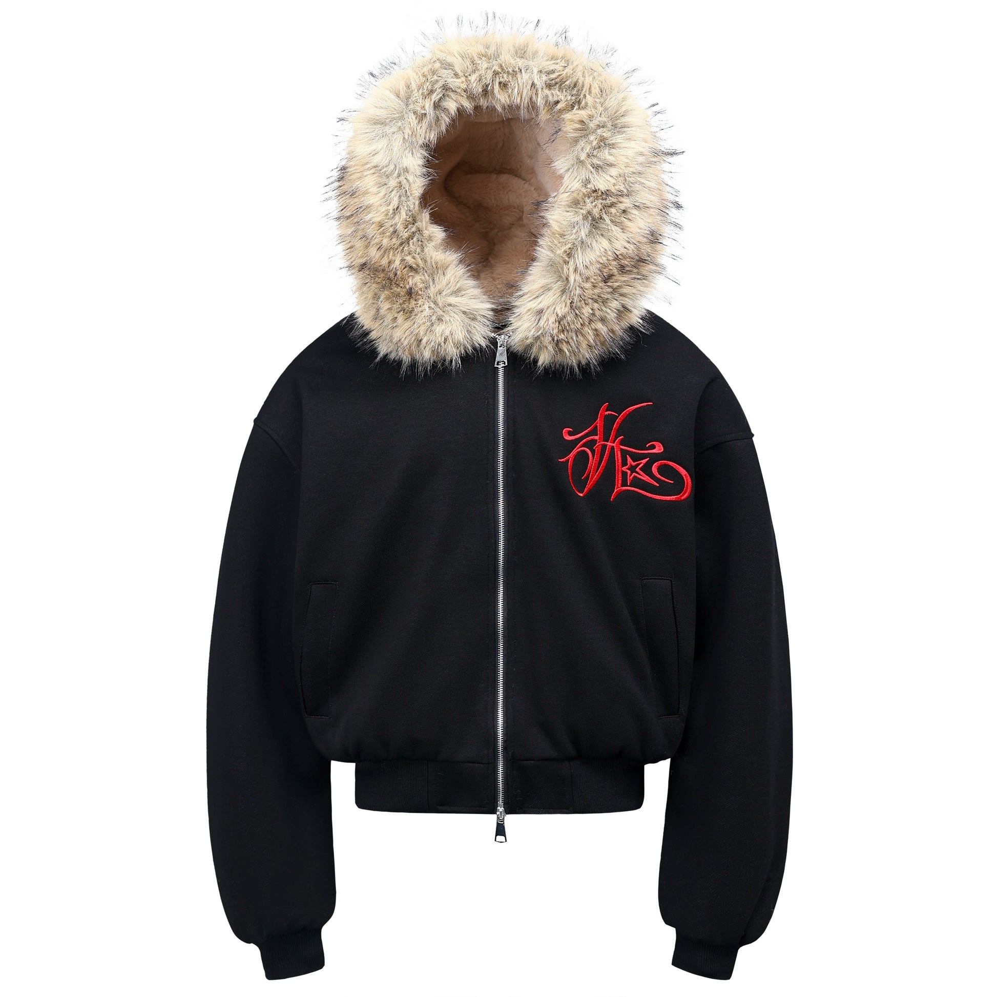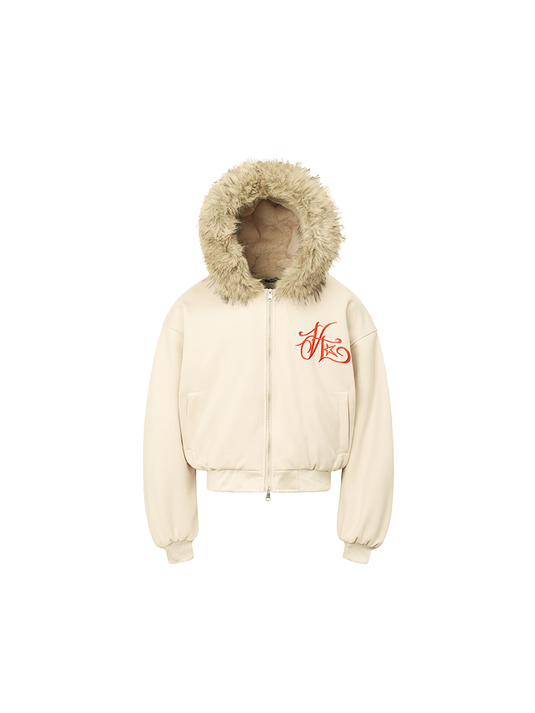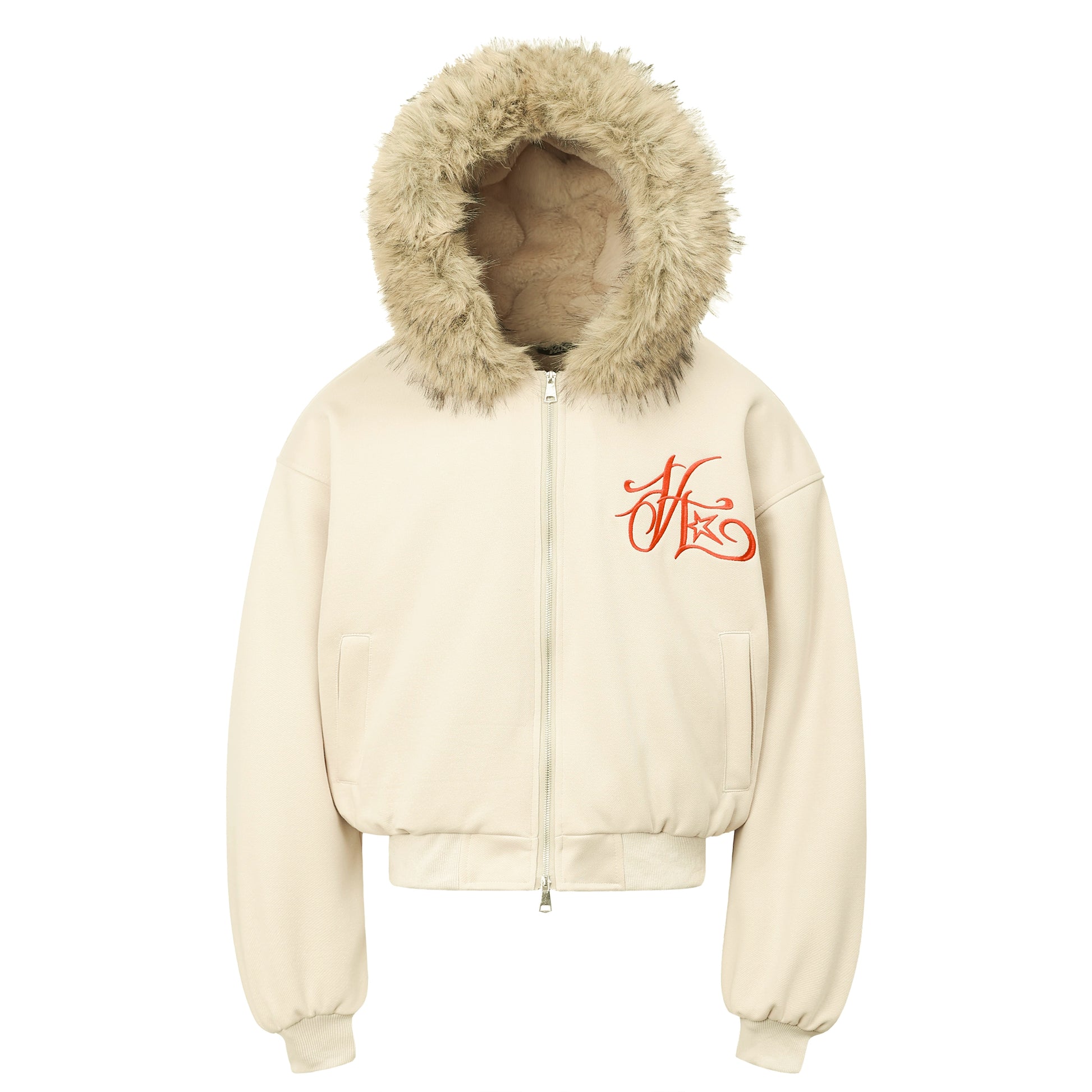 Hooded Embroidered Fake Fur Padded Jacket WN22201