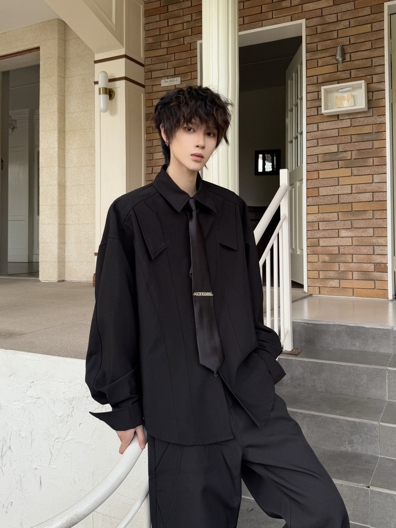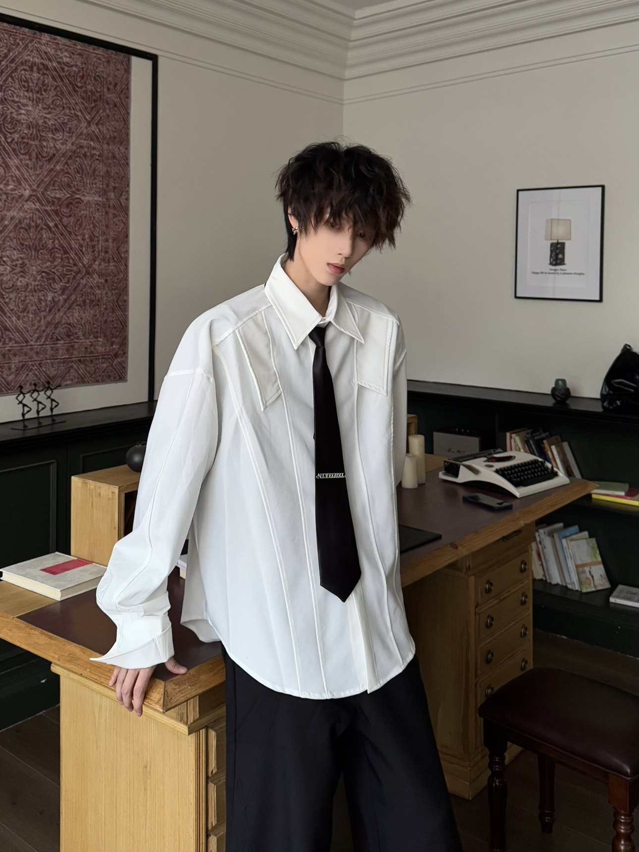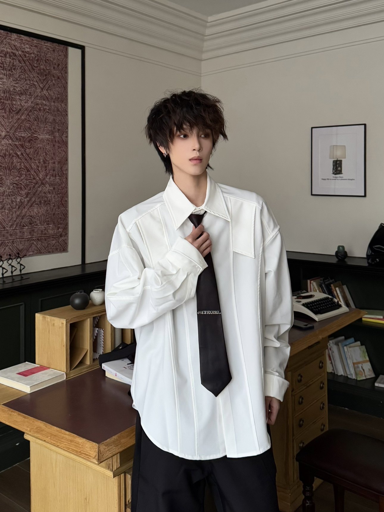 Shoulder-Pad Drapey Long Sleeve Shirt WN23179