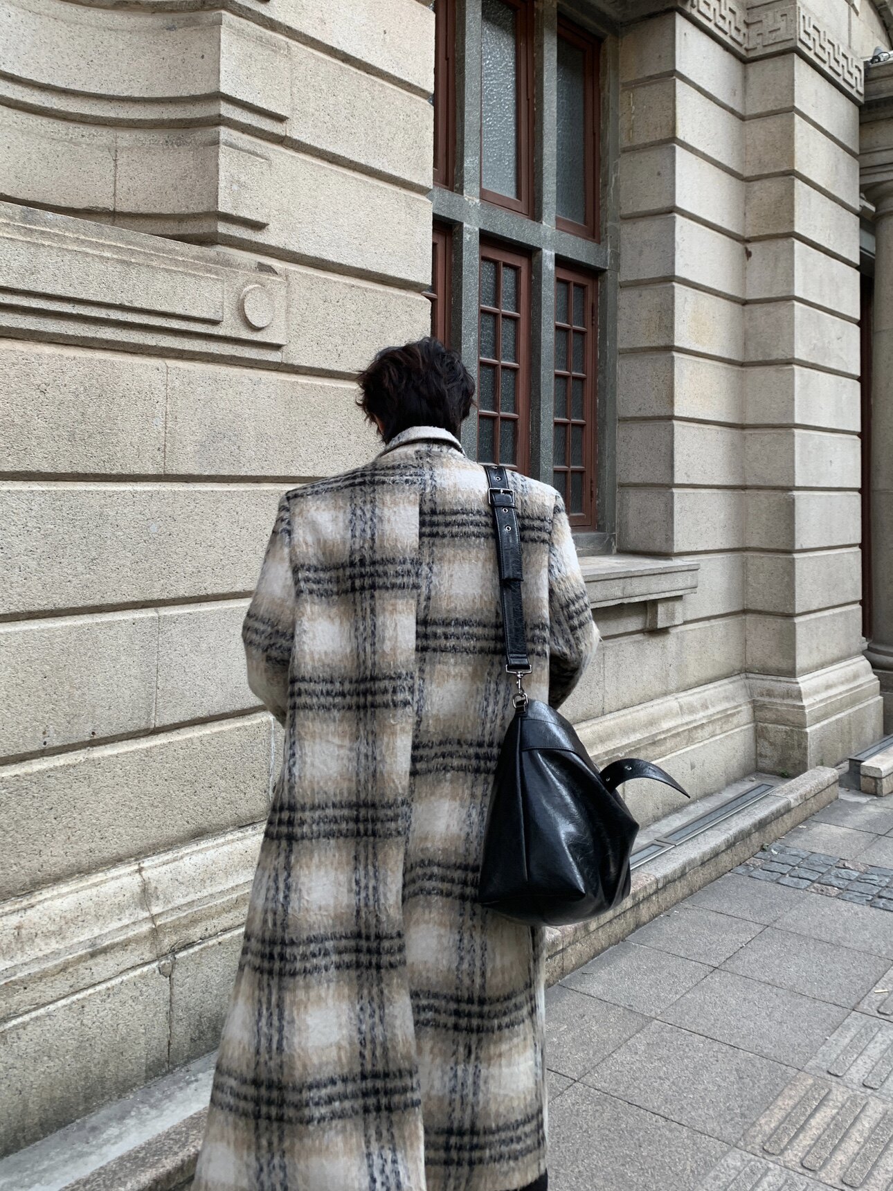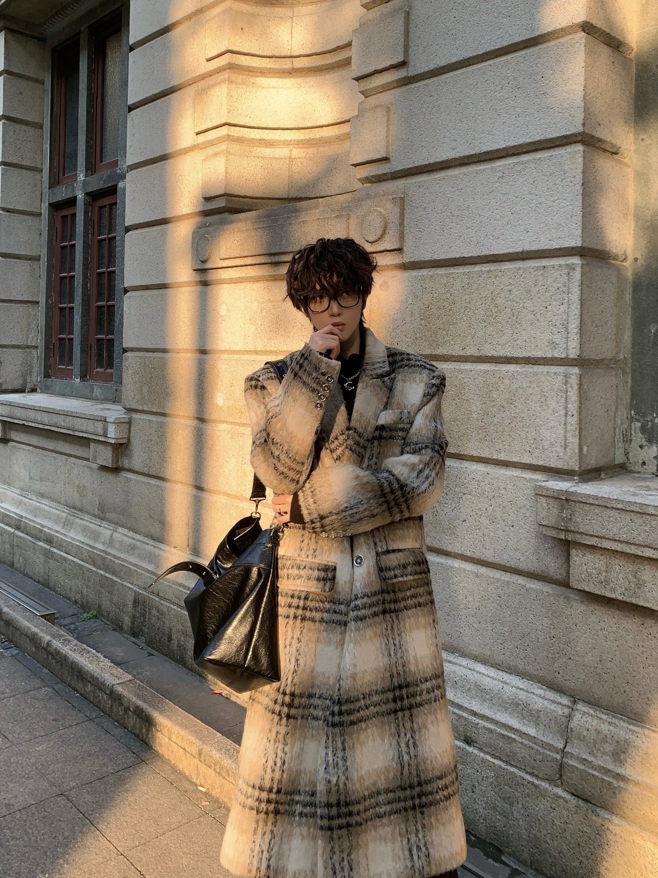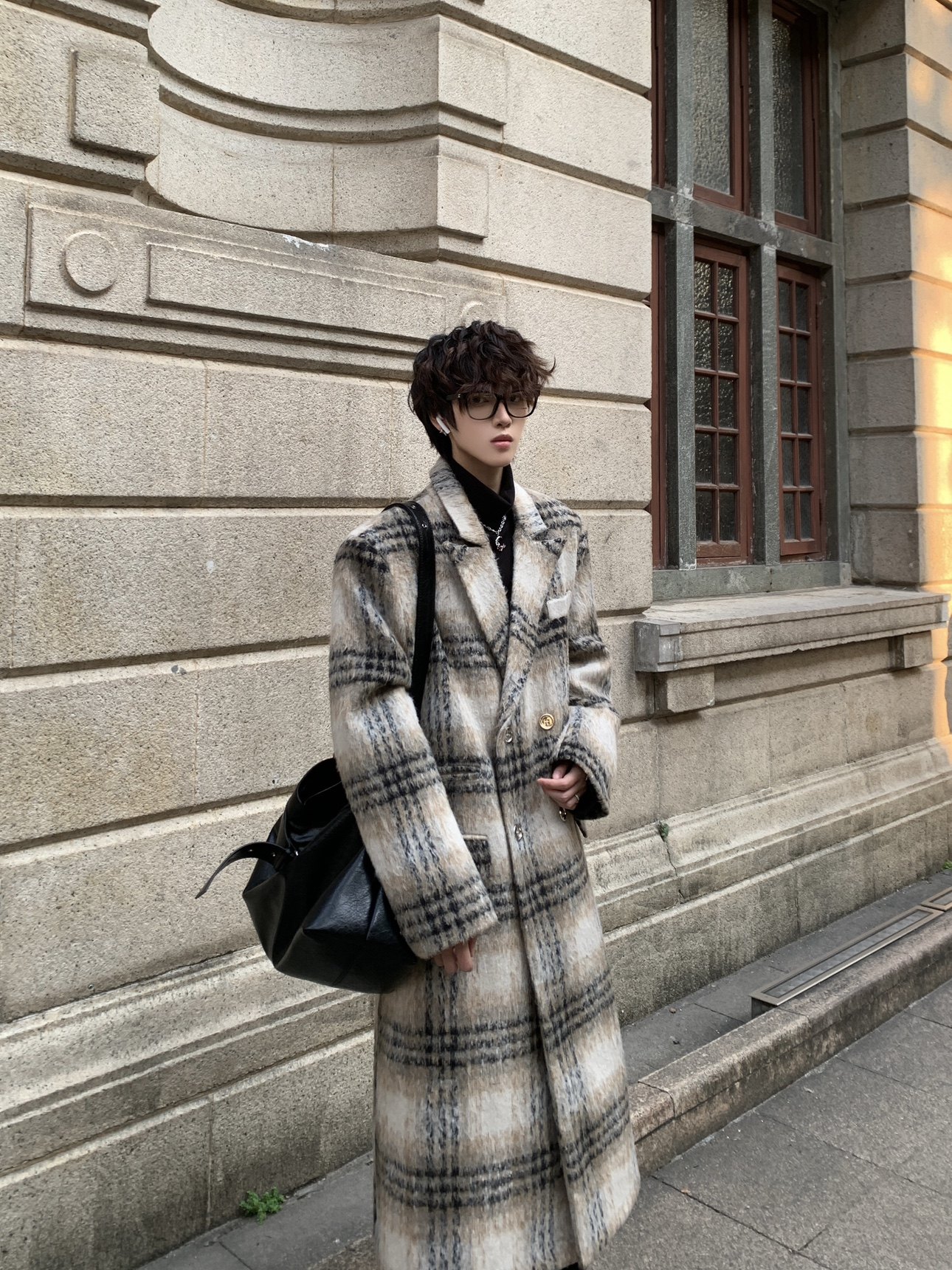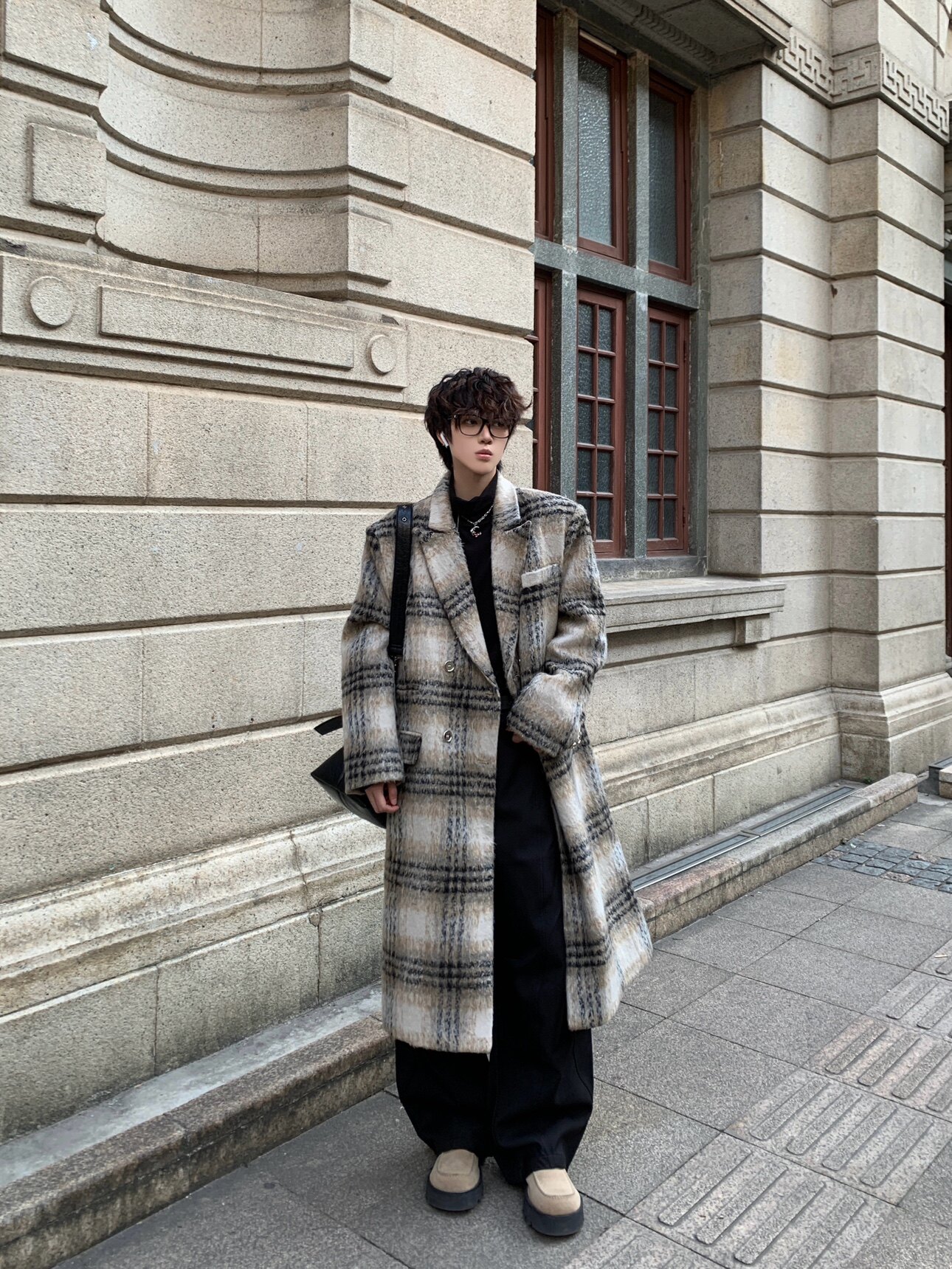 Korean Style Thick Wool Plaid Lapel Coat WN23180