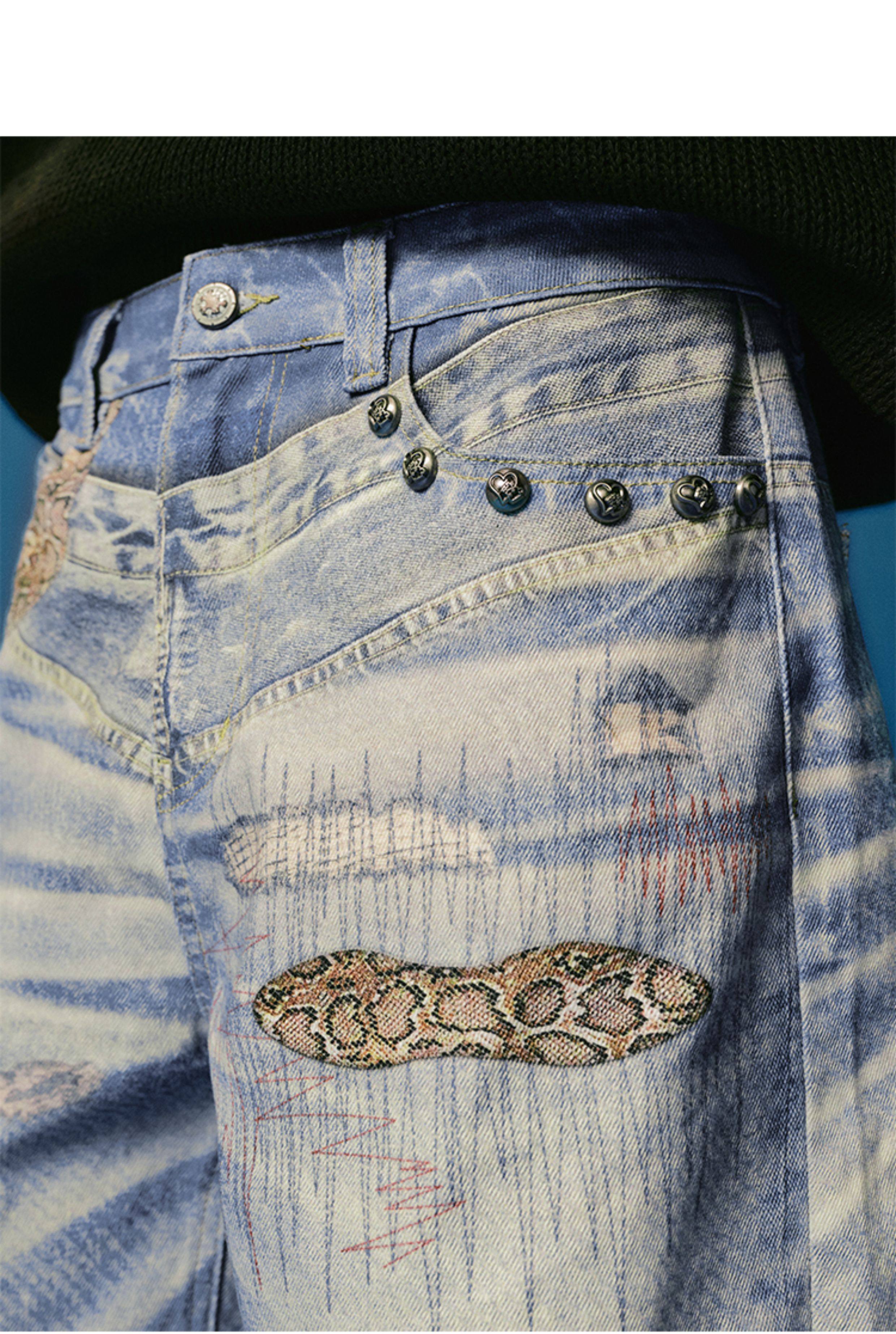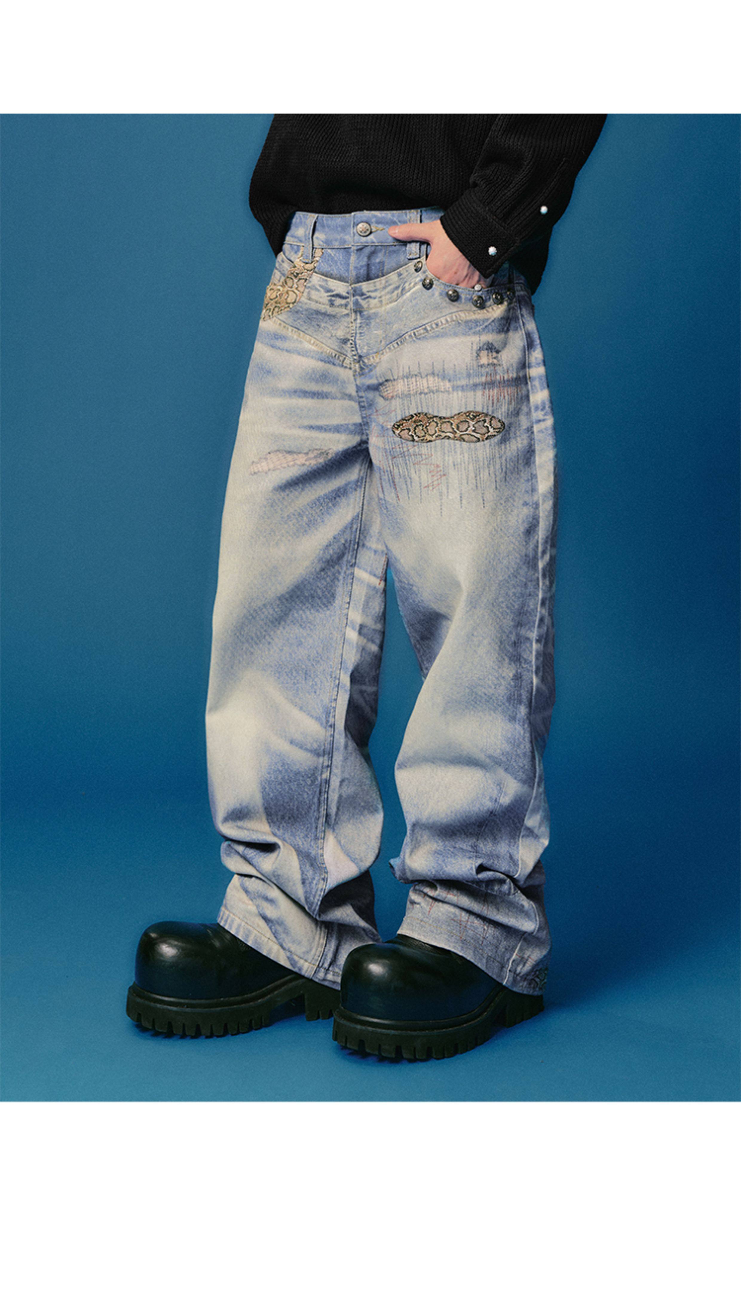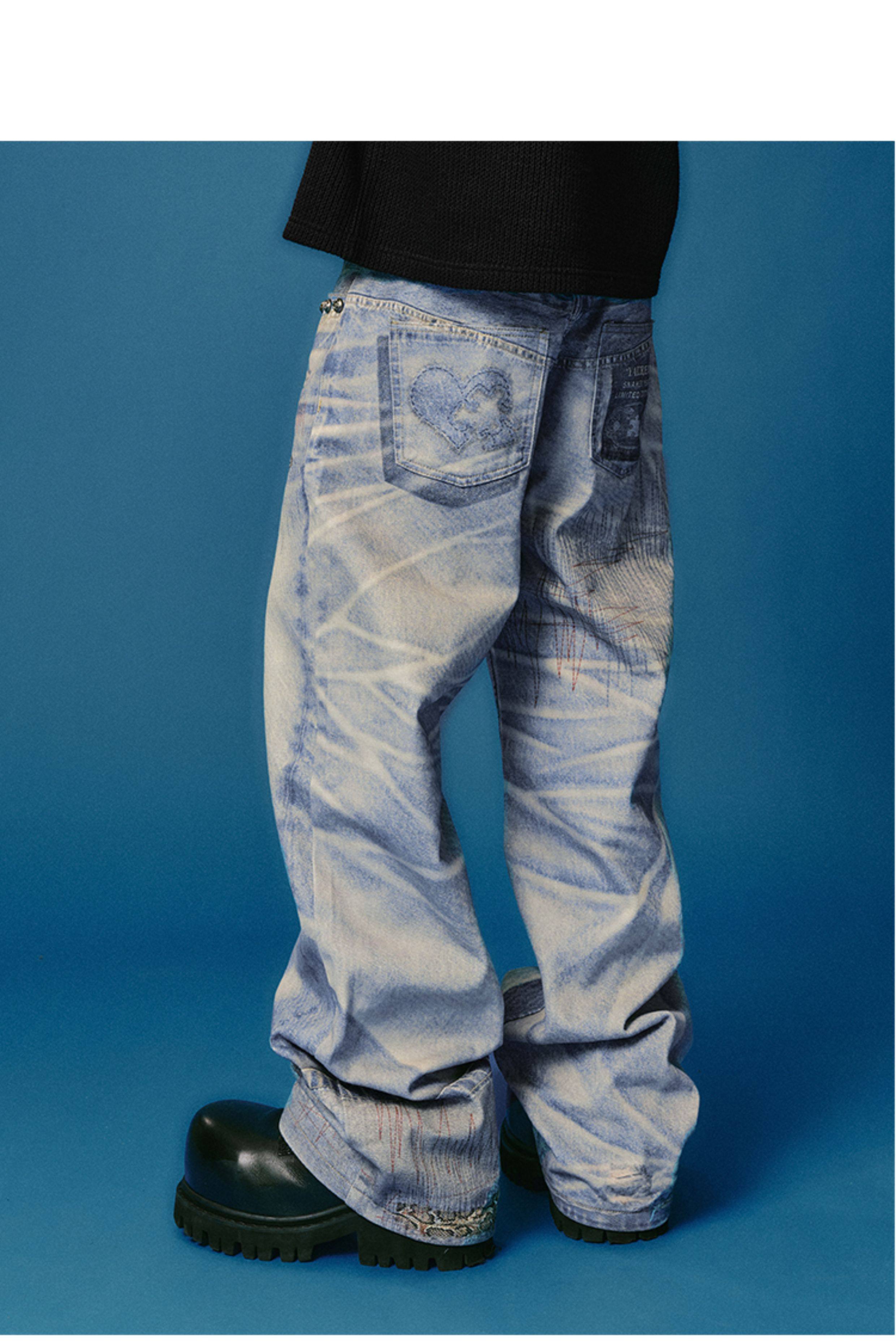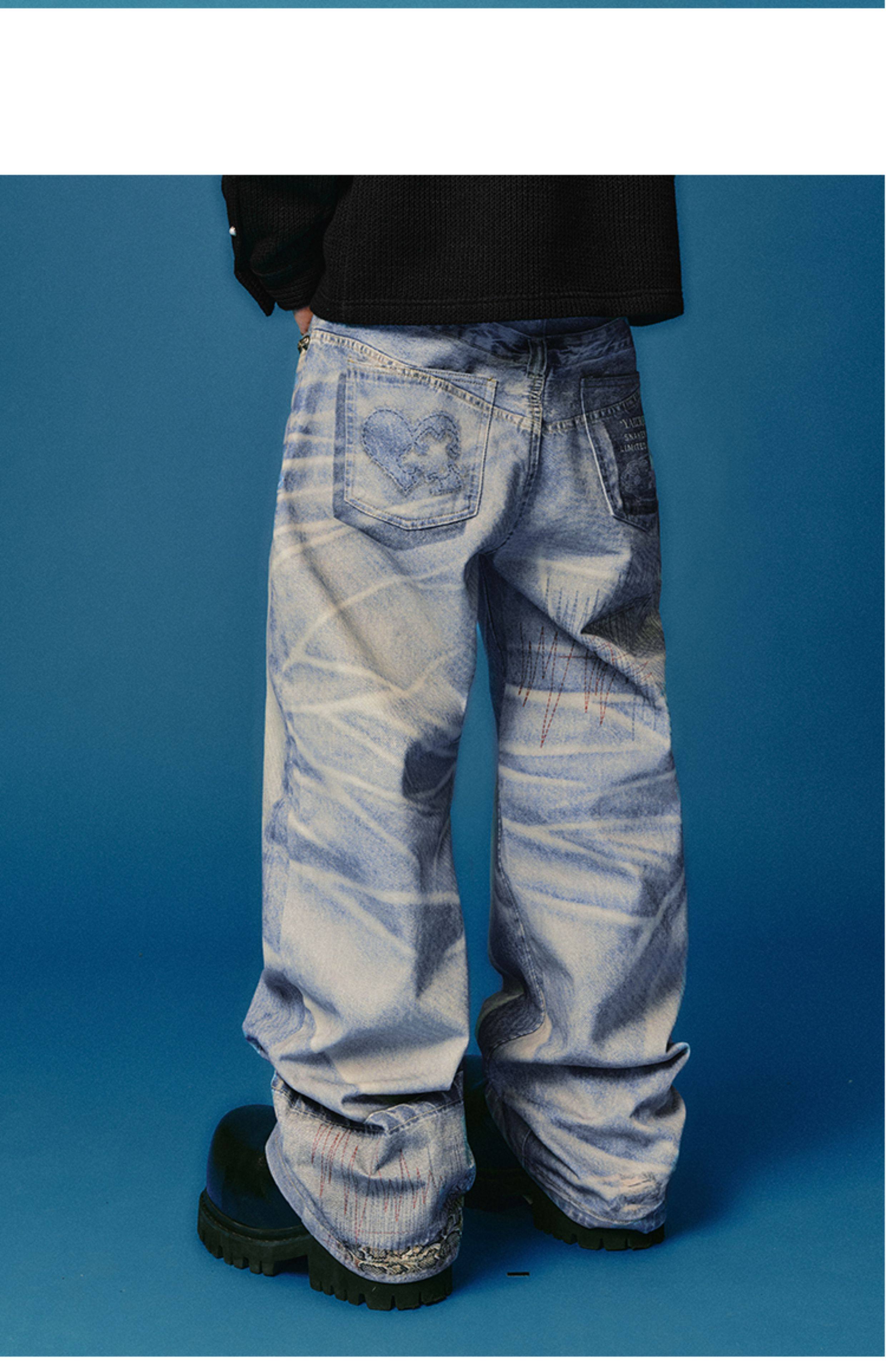 Embroidery Wash Wide Leg Denim Jeans WN23208