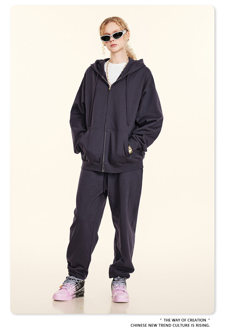 Oversize Heavyweight Pullover Hoodie & Zipper Hoodie & Sweatshirt & Pants Setup WN9930-K