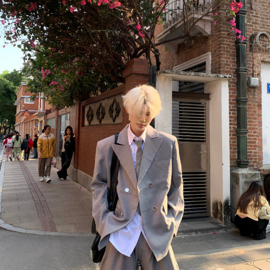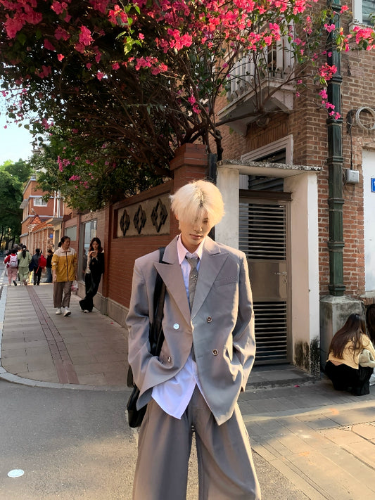 Striped Shoulder-Pad Fake Bloodstain Tailored Jacket & Trousers Setup WN21805